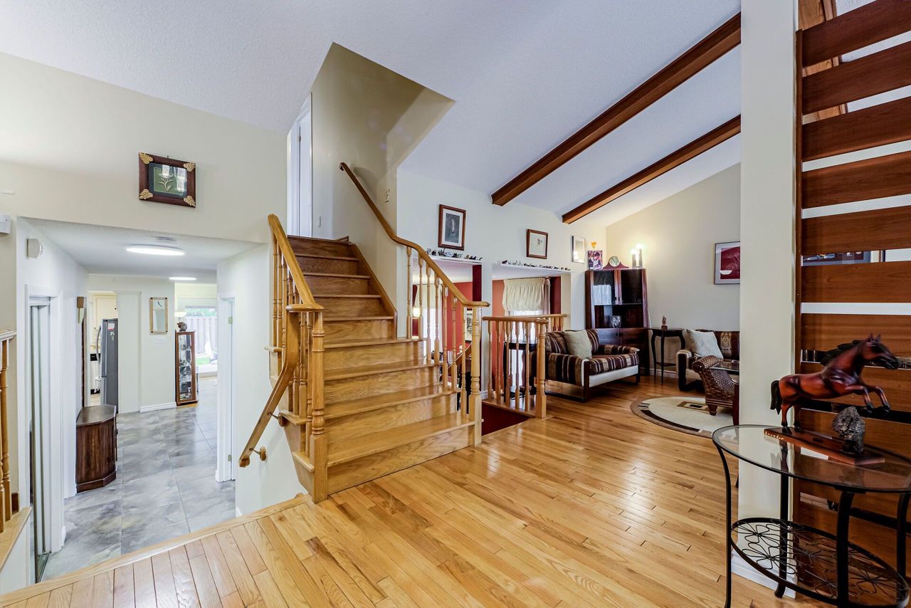 LOVELY LARGE UPDATED 5-LEVEL BACKSPLIT HOME ON A HUGE CORNER LOT WITH DOUBLE CAR GARAGE, LUSH LANDSCAPING AND TWO COVERED PATIOS PERFECT FOR ENTERTAINING. ORIGINAL 4 BEDROOM PLAN MODIFIED INTO A 3 BEDROOM WITH HUGE MASTER BEDROOM. UPDATED 3PC ENSUITE. SPACIOUS LIVING ROOM WITH CATHEDRAL CEILING. UPDATED KITCHEN WITH SS APPLIANCES, FAMILY ROOM WITH WALK OUT TO COVERED PATIO AREA. AN IN-LAW SUITE CAN BE CREATED WITH SOME MINOR WORK.