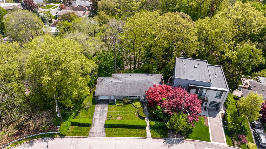 Picturesque Bennington Heights, one of Toronto's most exclusive neighbourhoods, is the setting for this greatly cherished family home at 22 Moorehill Drive. The current owners have enjoyed the peaceful tranquility, winding roads and location on the ravine for over 35 years. 22 Moorehill is perfectly situated on an extra-wide frontage of over 80 feet that widens to 98 feet in the rear, and extends over 120 feet deep backing onto picturesque green space. The sprawling mid-century bungalow features high ceilings and large windows throughout, which maximize the natural light and accentuate the stunning views that span the entire back lot. As you approach the property at the end of Moorehill, it stands out on account of its beautiful curb appeal, lush gardens, and the many opportunities it holds. Adjacent to ravine trails & surrounded by other beautiful homes, the setting is nothing short of magical. 22 Moorehill Drive is a unique opportunity to reimagine a one-of-a-kind property.This home has tremendous potential, whether it's a complete modernizing, while honouring the classic mid-century features, or reimagining it completely by taking advantage of the fabulous lot. The possibilities are endless!