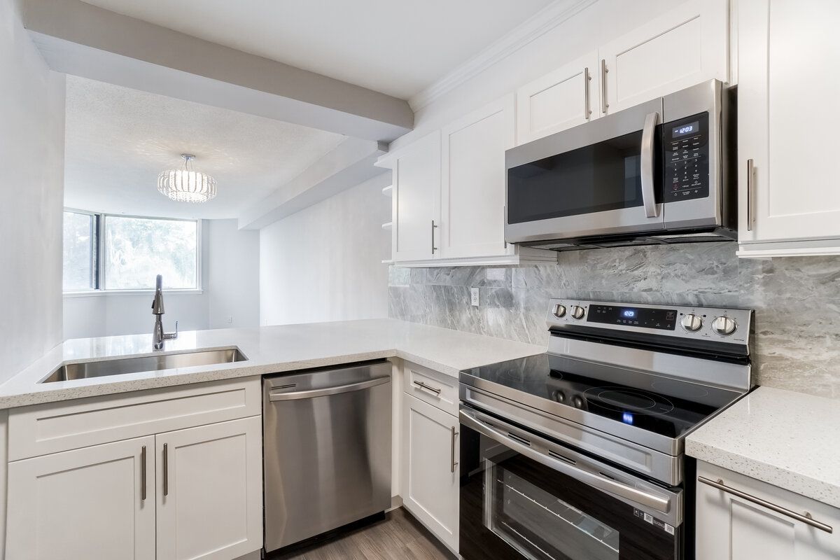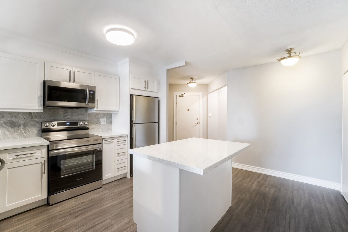 Absolutely Stunning 2 Bedroom One Washroom Completely Renovated Condo. Open Concept Beautiful Laminate Floor Throughout. Wood Custom Kitchen Cabinetry With Quartz Countertop ,Stainless Steel Appliance. Brand New Washroom With High-End Fixtures. Large Balcony View Of Humber/ River/Nature. Ensuite Laundry. All Utilities Included In The Maintenance Fee. Easy Access To Ttc/401/400/427. Near To School/Shopping / Worship/ Don't Miss It Must SeeBrand New Stainless Steel Appliances, Brand New Light Fixtures Fridge, Stove, Microwave, Washer Dryer, Amenities Include An Outdoor Pool, Gym, Sauna, Party Room, Meeting Room, BBQ Allowed .Easy Access To 401 400s 427, Ttc