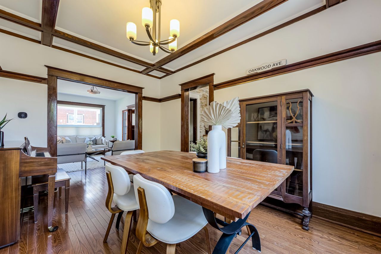 A home with old-world charm and modern updates in Oakwood Village. The main floor features hardwood floors, a fireplace in the living room and an updated kitchen with a walkout to the backyard. Enjoy summer nights in the spacious and private backyard. With three bedrooms, two full bathrooms and a finished basement, this home has plenty of space for a growing household. The mutual drive is wide enough for a car, and the home has two parking spots, including a detached garage.Enjoy all the great amenities of Oakwood Village, including restaurants, coffee shops and groceries, all just a short walk away. Great access to transit, including the St. Clair streetcar, Eglinton LRT and subway.
