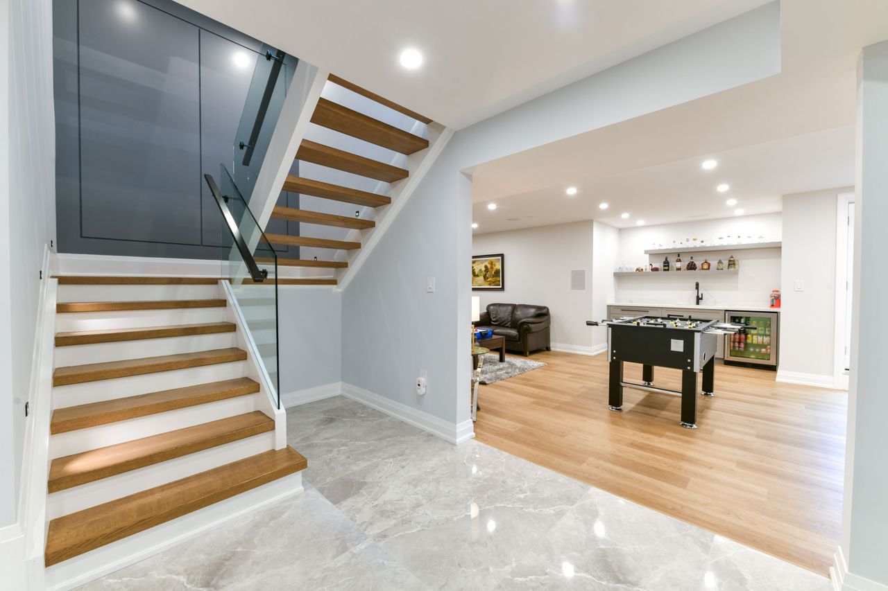 Built-In Speakers Hardwood Floor Illuminated Ceiling