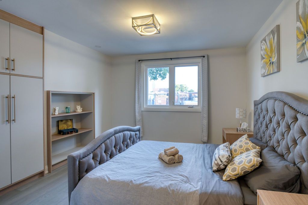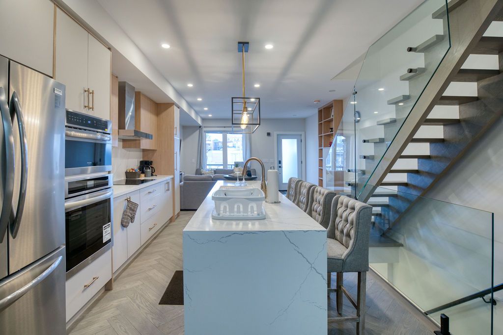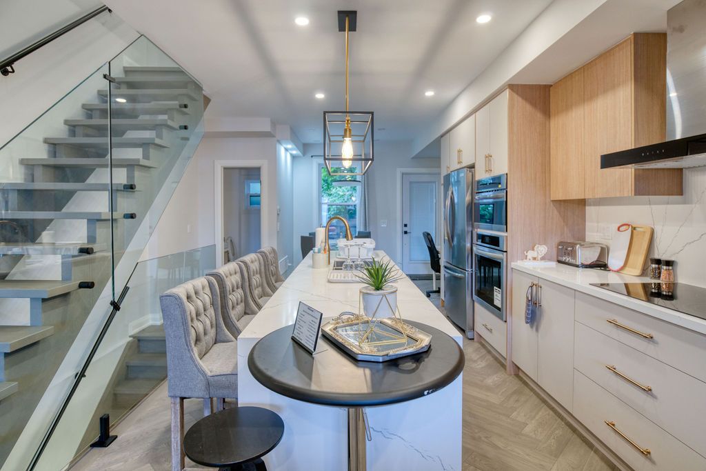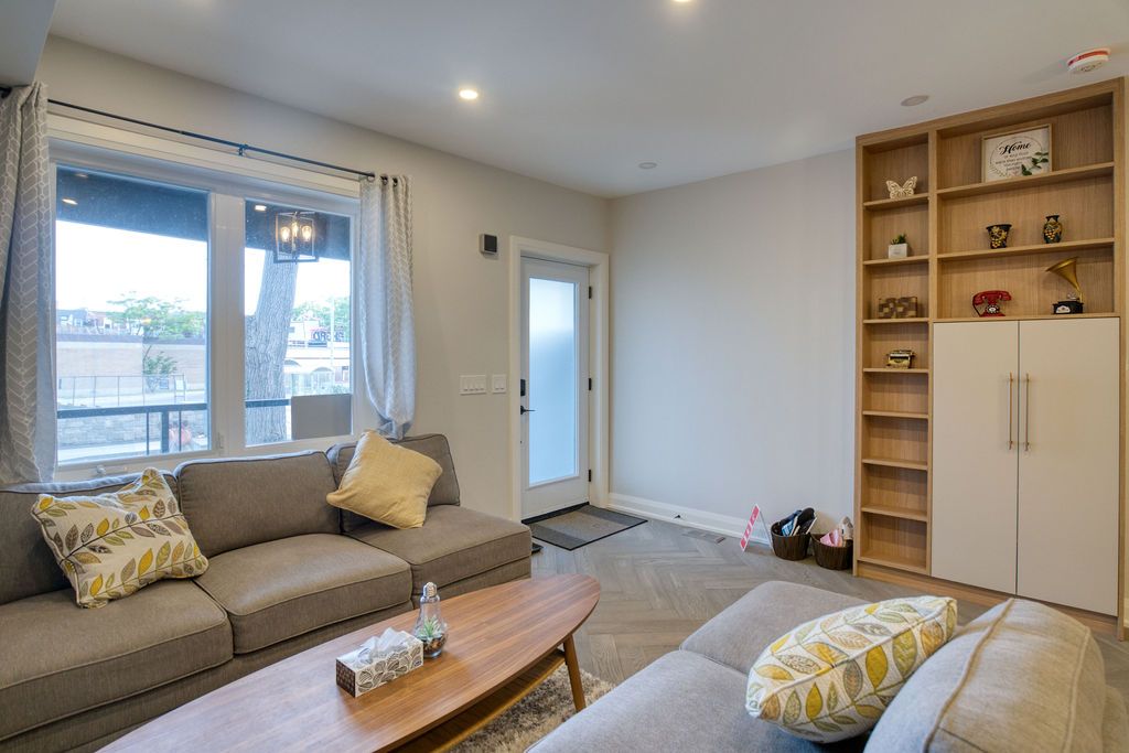This Exquisitely Remodeled (2021), Gorgeous 3Bed, 3Bath Home On Deep 18.17X129Ft Lot. Legal Front Yard Parking. Open Concept Layout W/ Sophisticated, Modern Finishes. Custom, Built-In Shelving, Liv Rm Fireplace, Beautiful Hrdwd Floors & 4"Led Pot Lights. Astounding Chef's Kitchen W/Quartz Counters, Grand Centre Island, French Dr Fridge, Double Oven, Flat Stovetop. Convenient Main Flr Powder Rm. Custom, Built-In Closets In All Bedrooms. Master Ensuite With Rain Shower. Large Basement Rec Room With Separate Entrance. New Interlock & New Deck With Glass Handle. No Detail Was Overlooked!