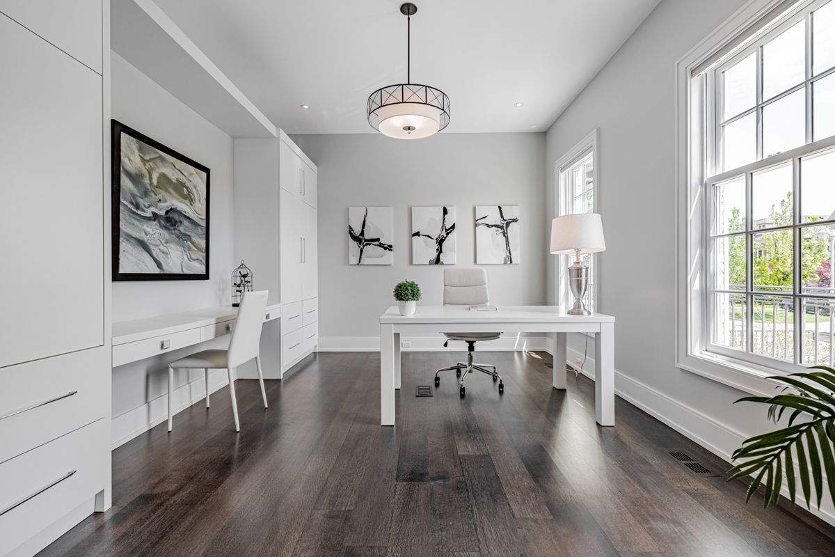 Hardwood Floor B/I Bookcase O/Looks Frontyard