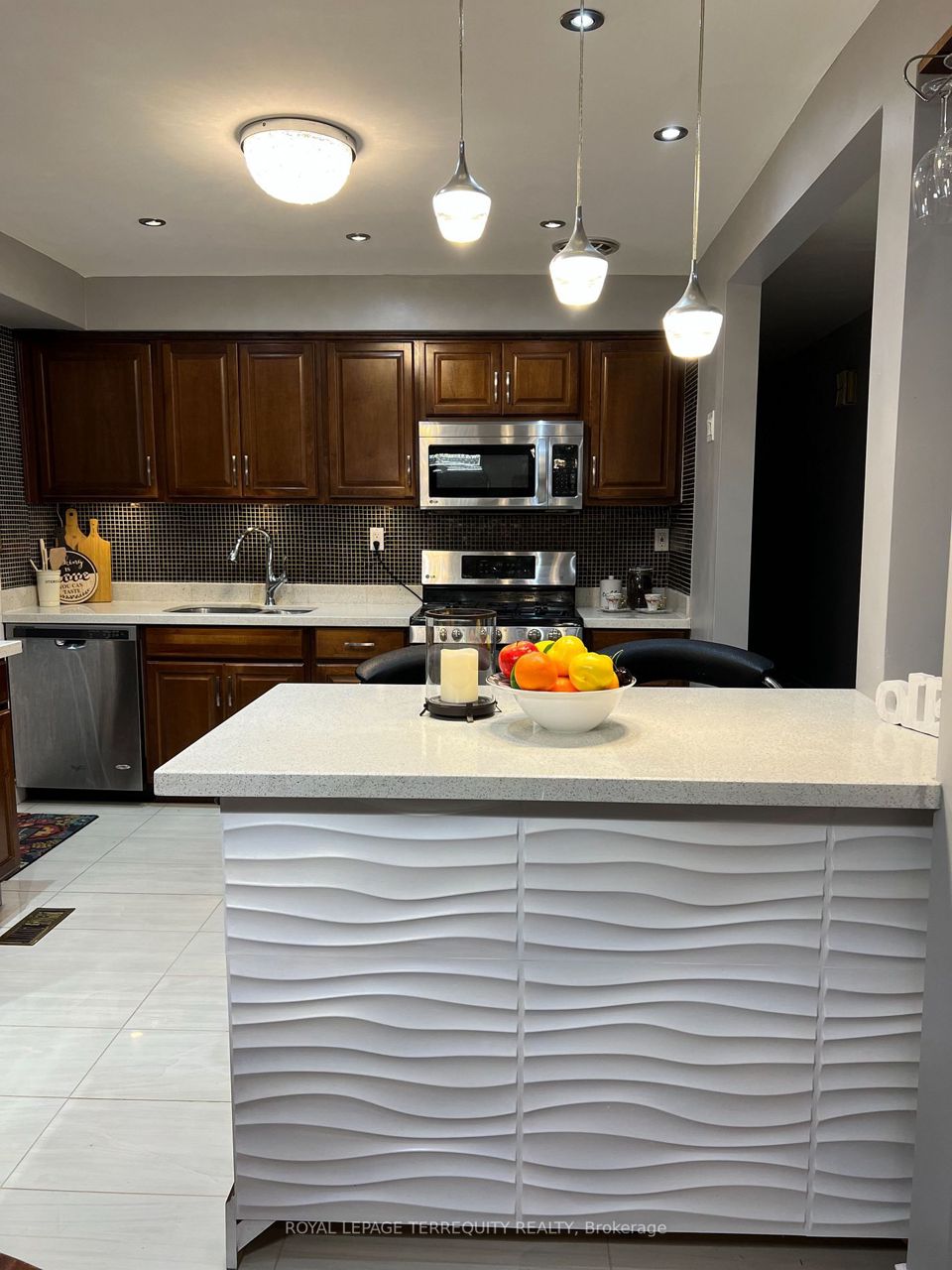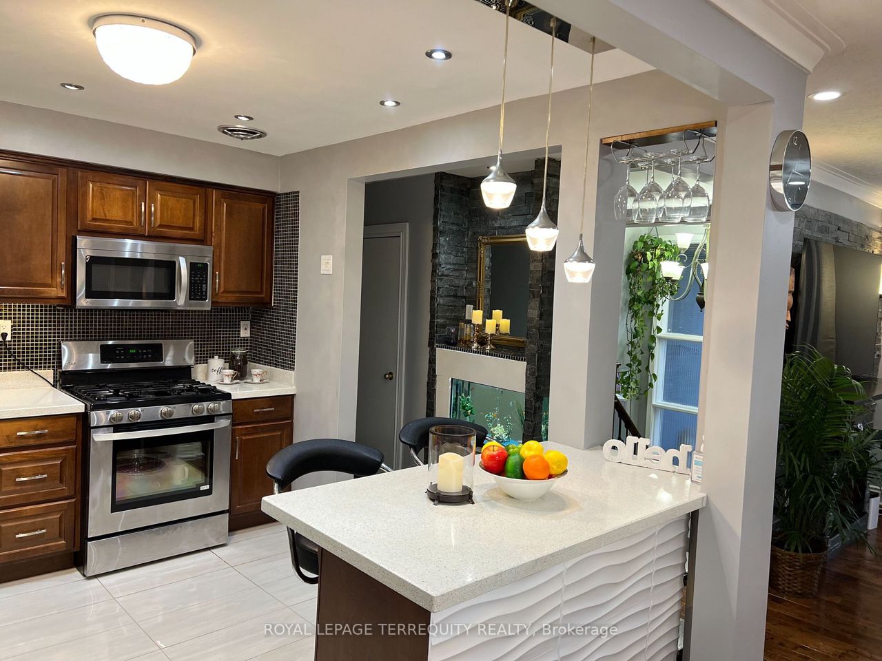 Welcome To This Exquisite Bungalow Nestled Beside The Serene Woodgrove Ravine Park. This 3+2 Bedroom And 2 Full Washroom Home Is Perfect For First-Time Home Buyers Or Astute Downsizers And Upgraders Who Want To Live In The Lap Of Nature. As You Step Inside, An Amazing View Awaits You With Live Fish Aquarium And Greeted By The Exquisite Living & Dining Room, Resplendent With Gleaming Hardwood Floor Throughout. Kitchen Is A Chef's Dream With Quartz Countertop, Porcelain Floor Tiles, Centre Island And Exquisite Lights With A Mini Bar Over The Countertop. The Basement Features Two Bedroom Easily Converted To Three Bedroom With A Full Washroom And Open Concept Kitchen. Enjoy The Summer With Family And Friends On A Beautiful Well Maintained Landscape With Various Spring Flowers And Perennials And Walkout To Deck And Gazebo. Newer Windows and Roof Shingles-20182 Fridges, 2 Stoves, 1 Dishwasher, 2 Microwave Ovens, Washing Machine And Dryer, Freezer In Basement. Fish Aquarium.