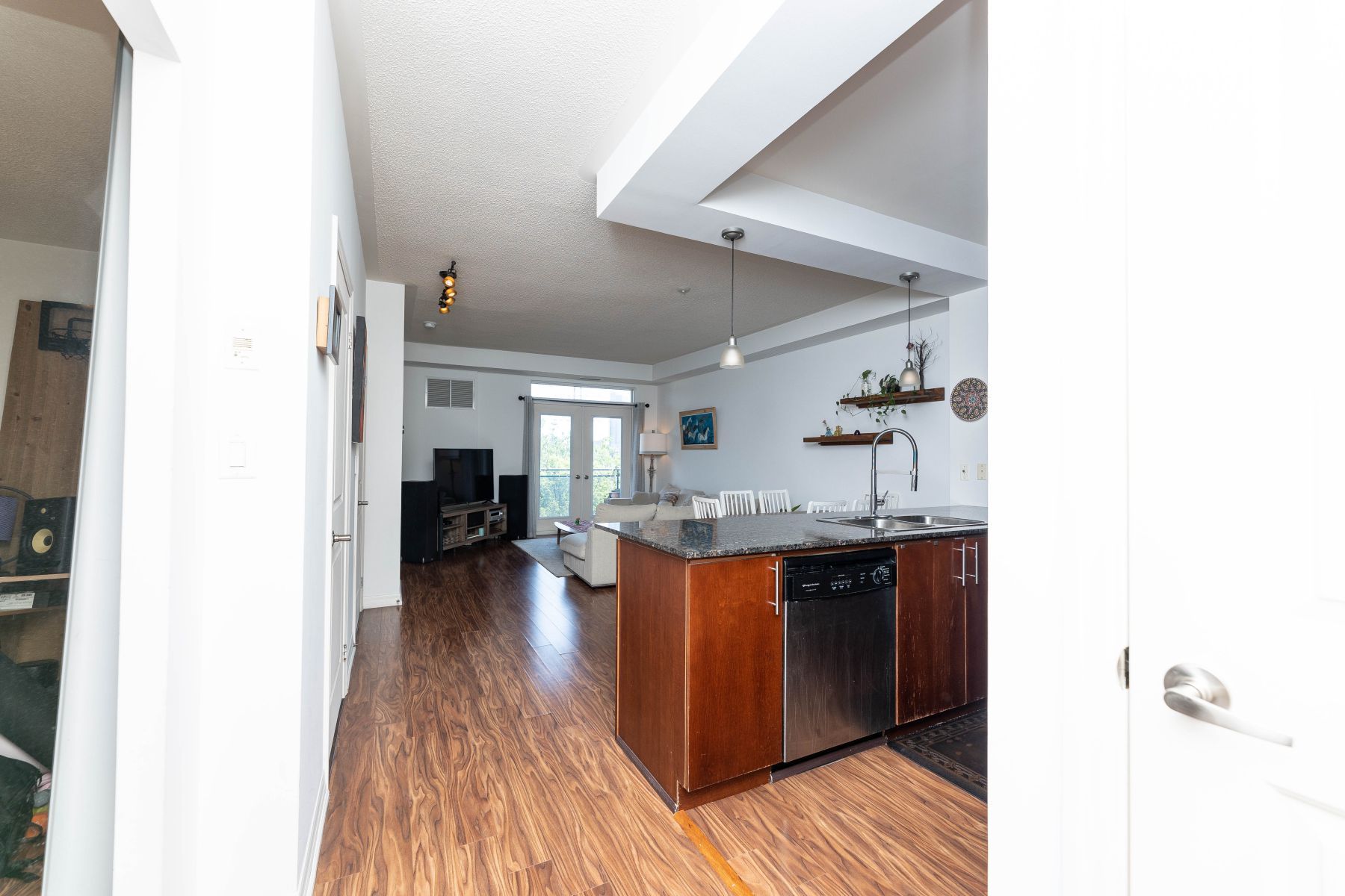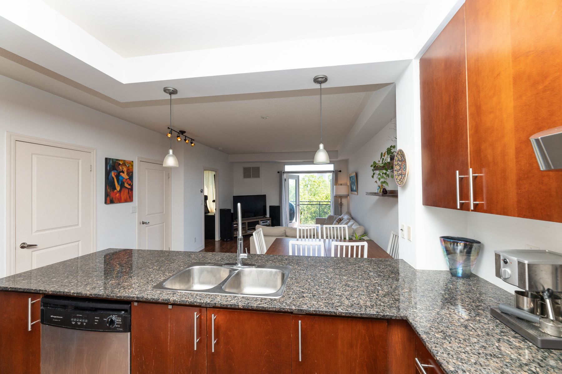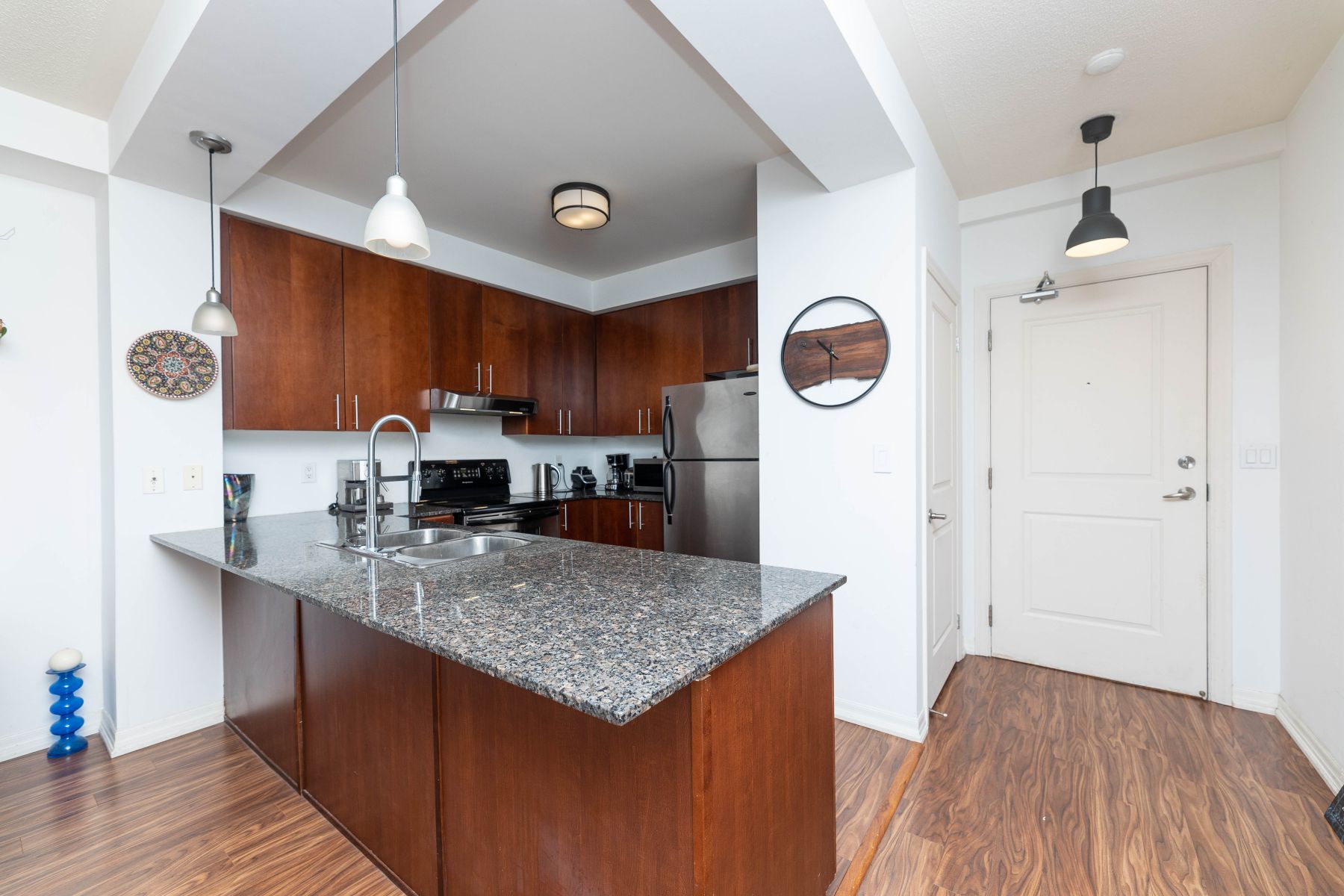STOP SEARCHING! Dont Miss it OUT!!Prestige Boutique-Style condo in a quiet Cul-De-Sac Features Modern Style Living in a Desirable Location waiting for you! Open Concept,Granite Counter with under mount sink, New Faucet, Modern Cabinet doors,Large Living/dinning area, Spacious One Bedroom with large Ensuite-New Flooring & Closet,Lrg Den,can be used as office or 2nd Rm, High Ceilings, New Flooring Throughout, Updated powder rm,Walk Out To Private Balcony,Backing to Green Space, Gas Bbq Hookup. Perfect For Entertaining! Steps To Lake, Transit, Shopping, Hwys & More!So many to list....Make it YOURS!Before it is too LATE!!!