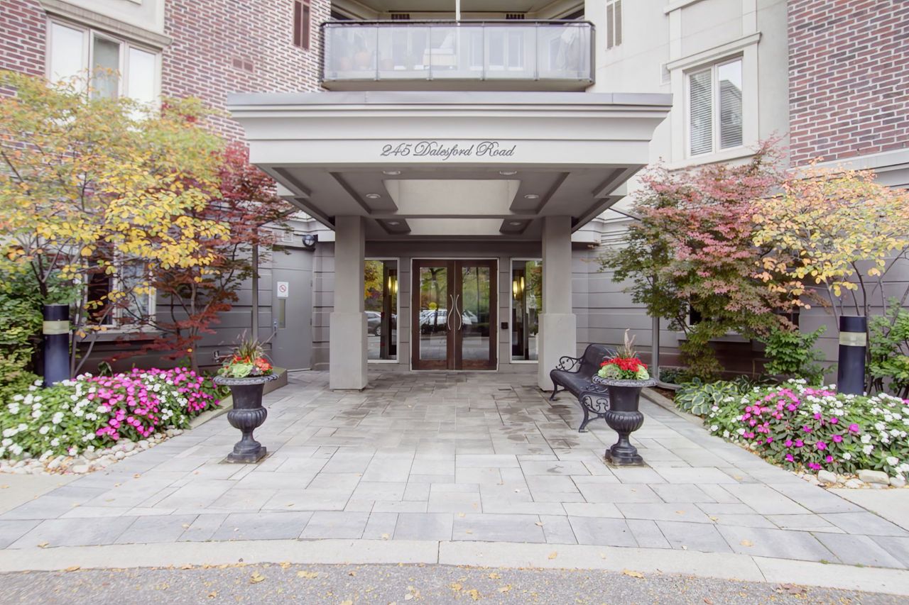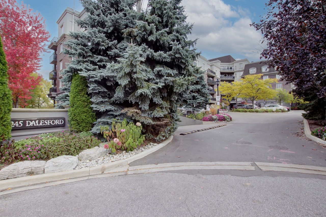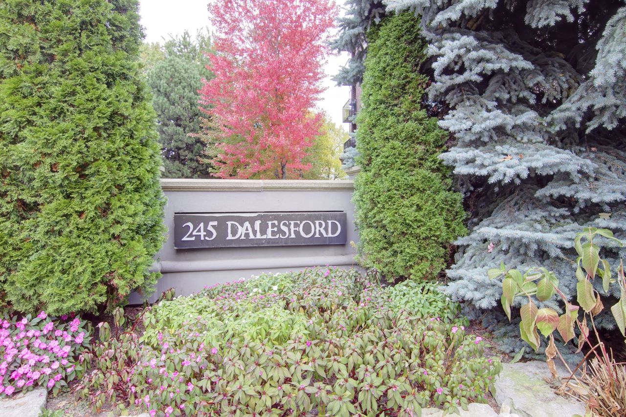 Welcome To The Dalesford! A QUEENSCORP DEVELOPMENT Boutique-Style Condominium Located In A Private Cul-De-Sac Setting and Offers an Impeccably Maintained and Styled 2 Bedroom+ 2 Bathroom Unit. The Wide Footprint Creates Two Sleeping Quarters at Opposite Ends and Living Space in the Center, Providing a Bungalow-Like Experience With No Stairs and All the Perks! Every Detail Has Been Thoughtfully Considered and Created, From 9ft Ceilings With Beautiful Light Fixtures to the Countertops and Porcelain Tiles to the Storage Systems in all the Closets. The Second Bedroom Has Addition Built-Ins, and Extra-Large Entry Closets as well as a Rare Pantry Closet with Access From the Kitchen, So You Will Never Feel That Storage Space is an Issue. The Pièce de Résistance is the Very Private and Picturesque Ravine View From All Windows. Enjoy Your Morning Coffee on the Terrace Overlooking the Joys of a Natural Habitat at Your Disposal. Pack Your Bags, Come and Live. It Truly is a Rare Offering!!Property Was Renovated in 2018 with New Hardwood Floors and Porcelain Tiles. Spectacular Wall Unit In Second Bedroom! Suite Comes With One Parking and Close To Highways, Transit, Shops, Restaurant, And Cafes.