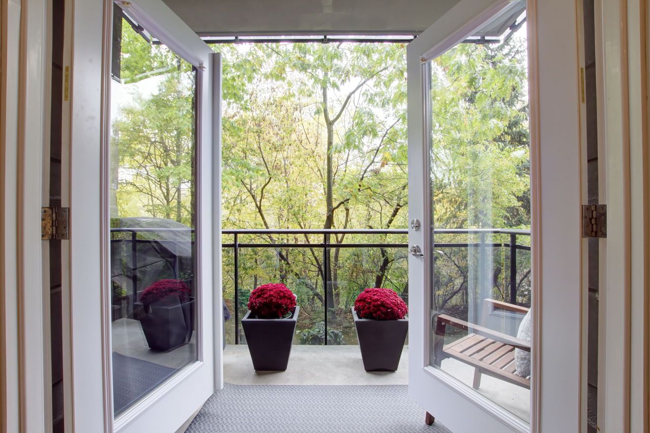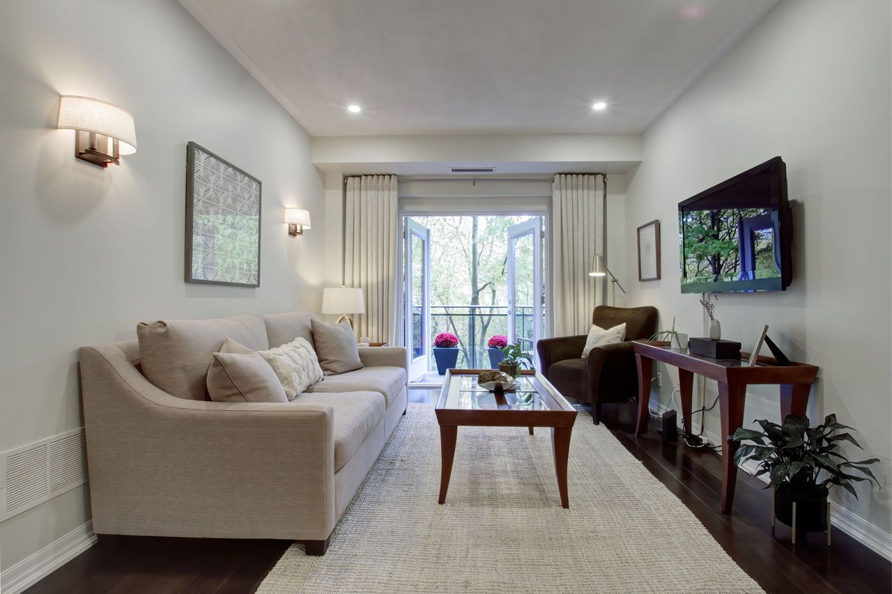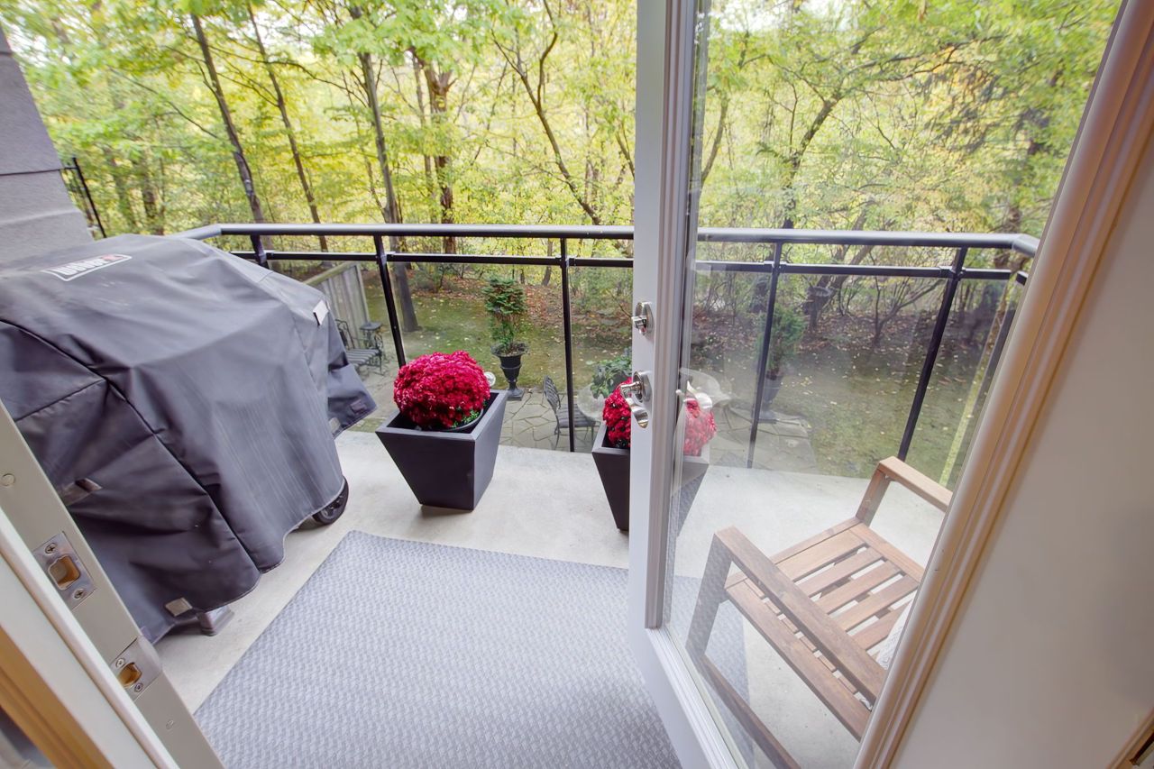 Welcome To The Dalesford! A QUEENSCORP DEVELOPMENT Boutique-Style Condominium Located In A Private Cul-De-Sac Setting and Offers an Impeccably Maintained and Styled 2 Bedroom+ 2 Bathroom Unit. The Wide Footprint Creates Two Sleeping Quarters at Opposite Ends and Living Space in the Center, Providing a Bungalow-Like Experience With No Stairs and All the Perks! Every Detail Has Been Thoughtfully Considered and Created, From 9ft Ceilings With Beautiful Light Fixtures to the Countertops and Porcelain Tiles to the Storage Systems in all the Closets. The Second Bedroom Has Addition Built-Ins, and Extra-Large Entry Closets as well as a Rare Pantry Closet with Access From the Kitchen, So You Will Never Feel That Storage Space is an Issue. The Pièce de Résistance is the Very Private and Picturesque Ravine View From All Windows. Enjoy Your Morning Coffee on the Terrace Overlooking the Joys of a Natural Habitat at Your Disposal. Pack Your Bags, Come and Live. It Truly is a Rare Offering!!Property Was Renovated in 2018 with New Hardwood Floors and Porcelain Tiles. Spectacular Wall Unit In Second Bedroom! Suite Comes With One Parking and Close To Highways, Transit, Shops, Restaurant, And Cafes.