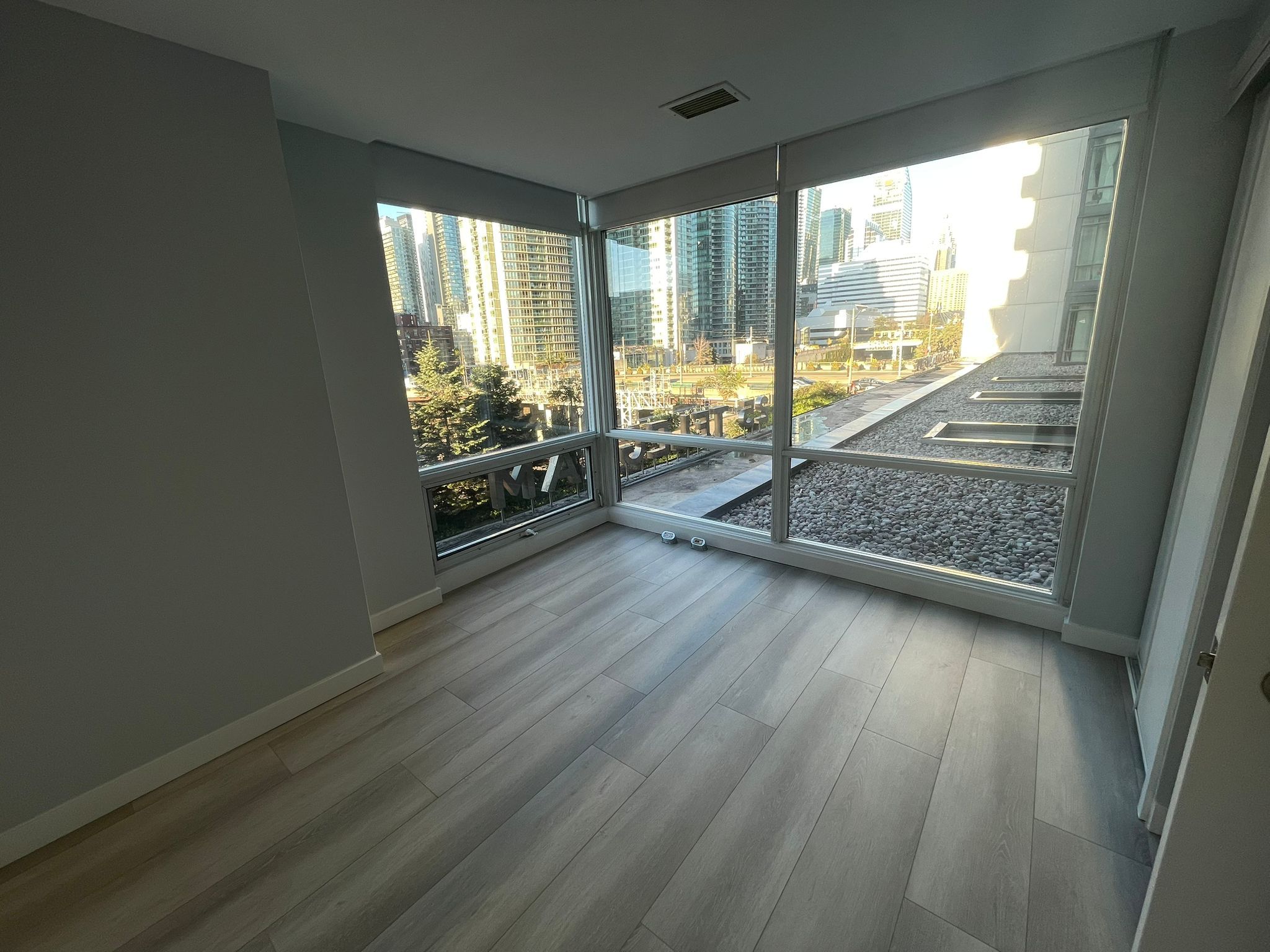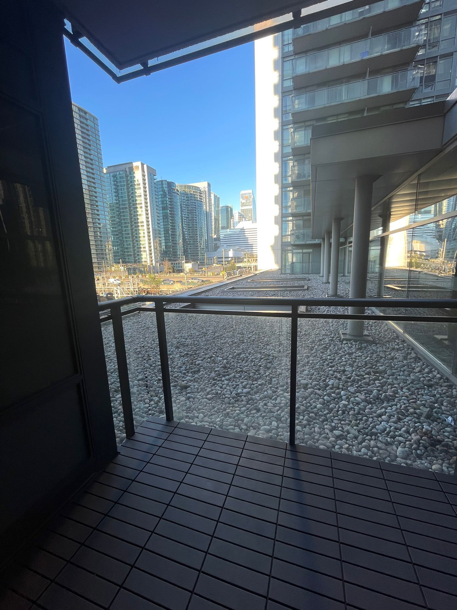 Experience urban living at its best in this newly renovated 1 Bedroom + Den condo, ideally situated in downtown Toronto! This modern 575 sqft unit + 38 sqft terrace offers a total of 613 sqft with stunning CN Tower views. Prime Location. Just a 5-minute walk to the Rogers Centre, with restaurants, cafes, and transit steps away for ultimate convenience. Move-In Ready. Completely renovated with new waterproof flooring, fixtures, window coverings, appliances, and freshly painted walls, this unit is in pristine, brand-new condition. Unbeatable ValueLow maintenance fees in this high-demand area make this condo a standout. Plus, the condo's common areas are getting a fresh new look, ready in the next 2-3 weeks. Dont miss out on this hot downtown listing perfect for professionals, couples, or investors!All existing appliances, window coverings.