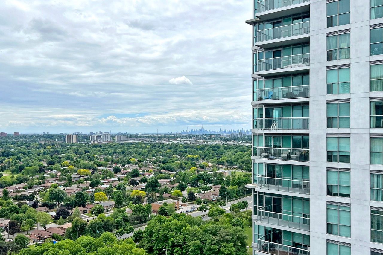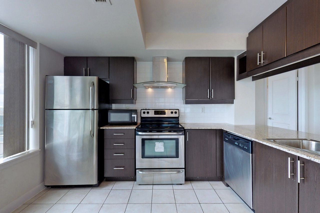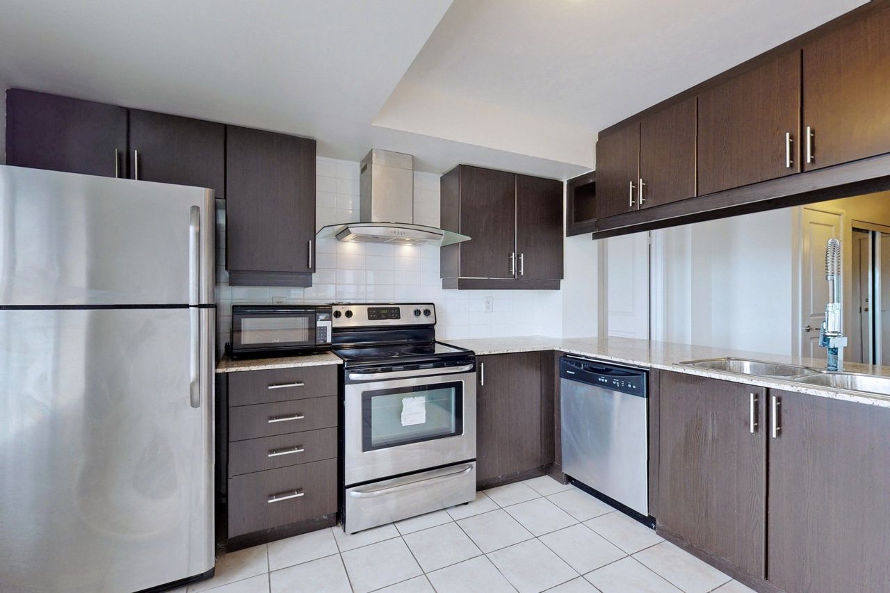 This Stunning Lower Penthouse 2 Bedroom + Den Corner Unit Offers An Unobstructed Gorgeous View Very Bright & Spacious, Apprx 1108 Sf., Fully Upgraded From The Builder, Modern Kitchen W/Open Concept Design And W/O To A Spectacular 316 Sqft Wrap Around Terrace Ideal For Outdoor Entertaining. With 24Hr Concierge, Live Luxuriously While Maintaining The Comfort And Lifestyle You Deserve. Transit At Your Door. Close To Ttc, Yrt/Go, 401, Shopping & Restaurants.S/S Fridge, Stove, D/W, Range Hood, Wine Fridge, White Stackable Washer & Dryer, Window Coverings And All Elf's. Upgrades Include Laminate Throughout, Granite Countertops.