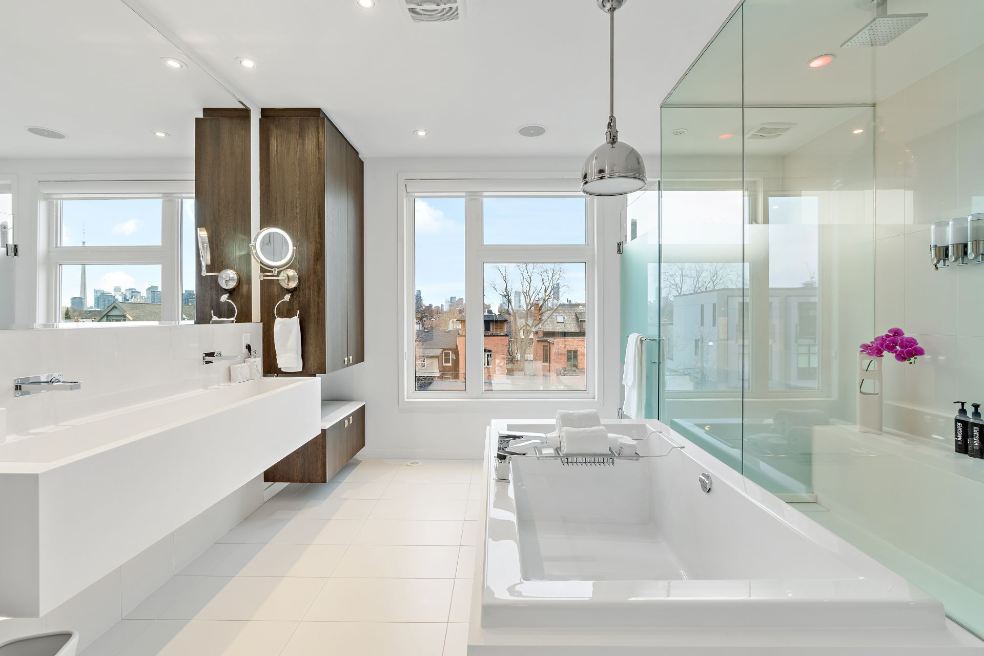 Welcome to 253 Roxton Rd, an executive freehold townhouse located in the vibrant Little Italy neighborhood. This stunning home features 3 spacious bdrms & 5 modern baths, providing ample space for you and your family to relax and unwind. As you step inside, you'll be immediately impressed by the open-concept living area with 9 feet ceiling. A gourmet kitchen, with high-end appliances, ample counter space, and plenty of room to entertain guests. The primary bdrm is on the 3rd floor, offering a private & serene retreat from the rest of the home, spacious + bright, with large windows that offer stunning views. Additional features include ensuite baths for all bdrms, plenty of storage, landscaped backyard retreat perfect for outdoor entertaining, and just under 3,000 sqft of living space. The bsmt is a legal, fully separated apartment, providing additional income or a separate living space for guests. This home offers easy access to some of the city's best restaurants, cafes, and shops.Bsmt apartment easily converted back to be part of the house! stairs to bsmt are still in places. IndividualThermostat for each flr. Bsmt Apartment With Its Owned A/C, Heated Floors And Laundry. Full House & outdoor Built In Jbl sound systm