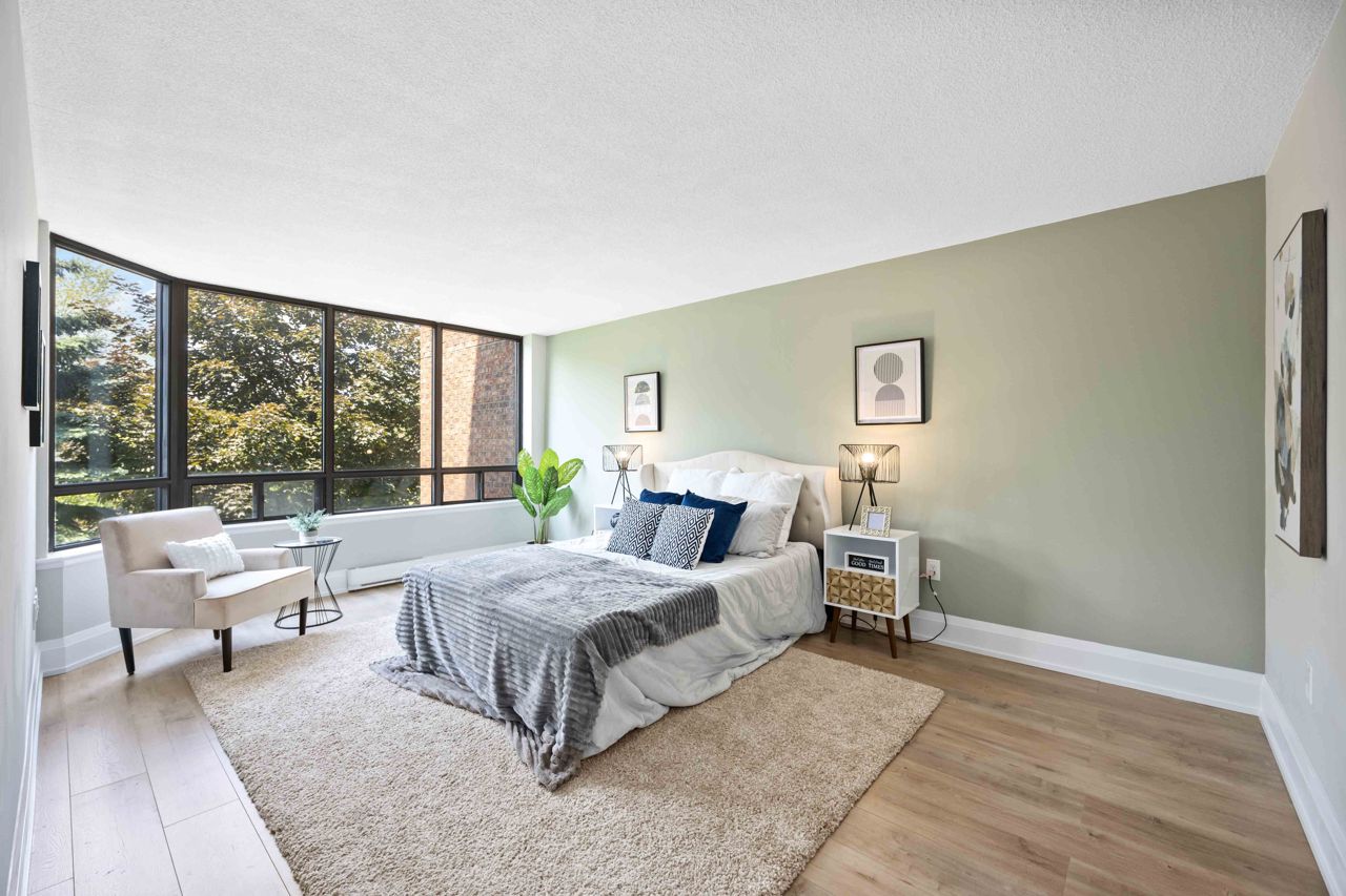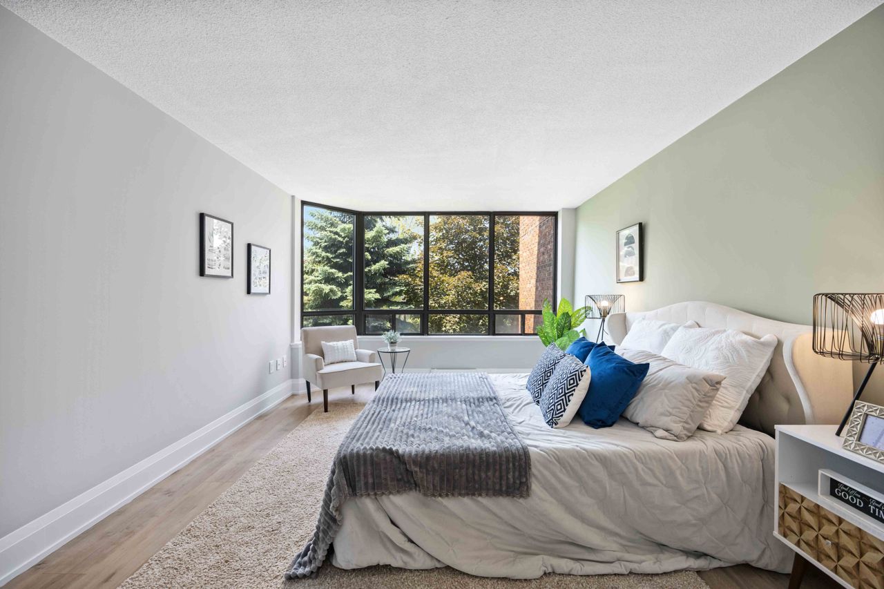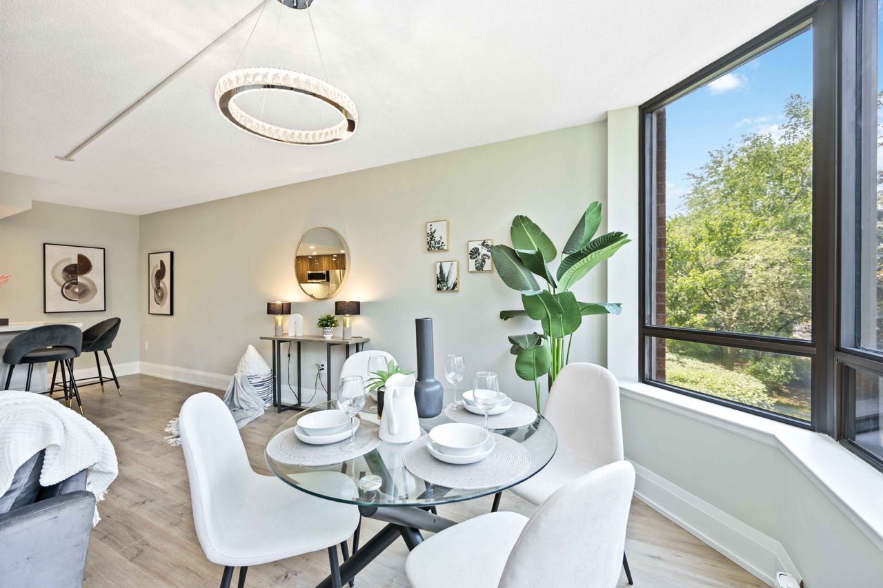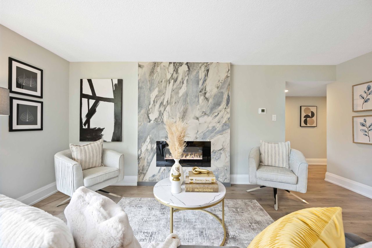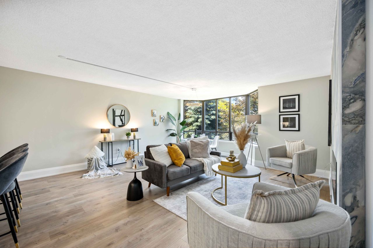 A true gem in the heart of The Don Mills Community & the sought- after Village Mews, This Large 1232 sf 2 bed 2 bath condo could be your luxurious new home & Oasis! This condo is renovated top to bottom, Inside and out, ready for your immediate enjoyment. Featuring a gorgeously remodelled open concept kitchen and breakfast bar, bright & spacious living & dining area with bay window & new fireplace, oversized primary suite w/huge walk-in closet, elegant vanity area & ensuite bath, brand new stainless steel appliances, wood floor, light fixtures and plumbing throughout, it is just steps from the excitement of Shops at Don Mills, as well as the tranquillity of parks and walking trails all at your finger tips! A must see!A meticulously maintained condo complex with a $5 Mil reserve fund. Beautifully manicured grounds, breathtaking gardens, fountains & courtyard. Rogers high speed internet and VIP television included in the maintenance fees.