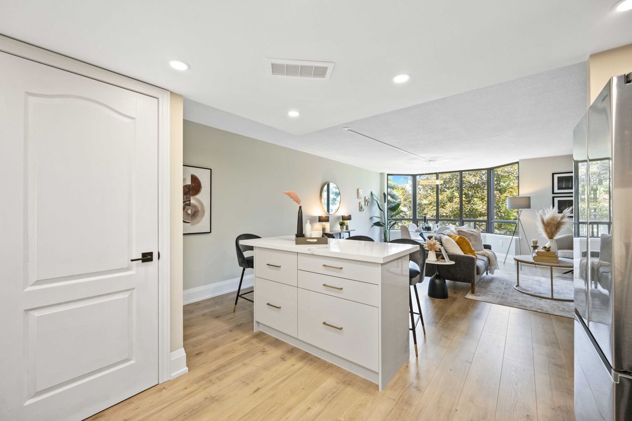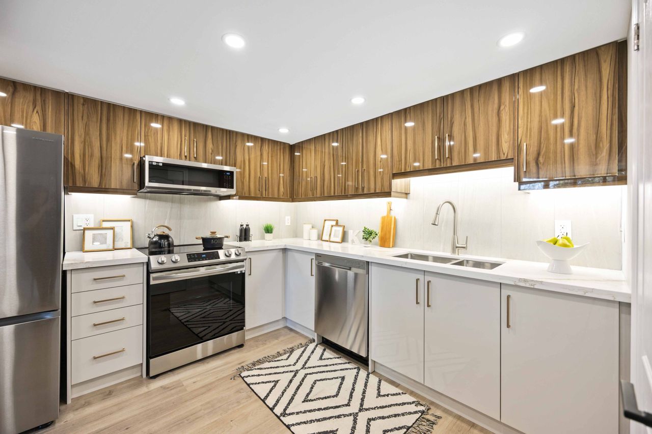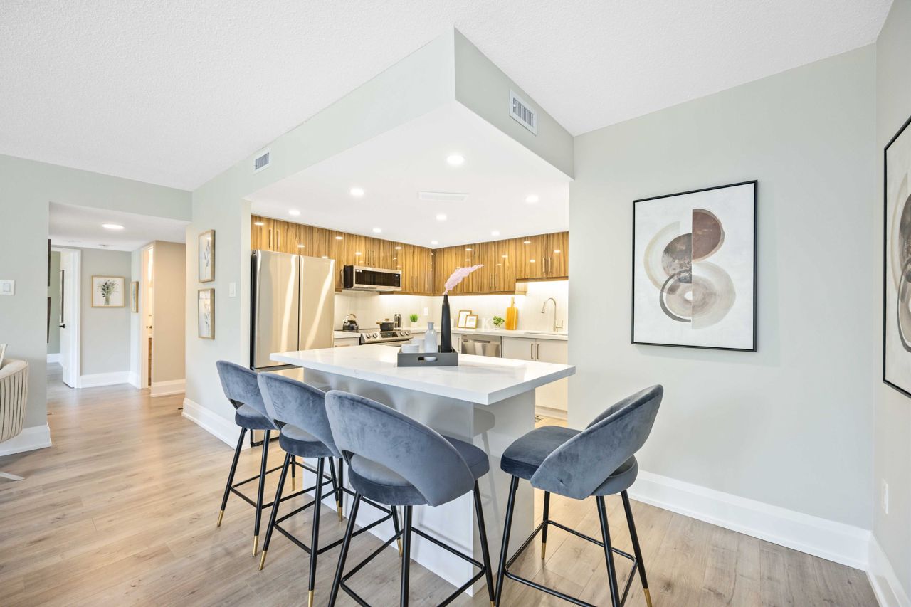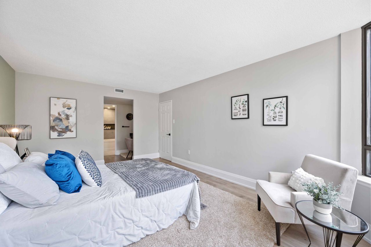 A true gem in the heart of The Don Mills Community & the sought- after Village Mews, This Large 1232 sf 2 bed 2 bath condo could be your luxurious new home & Oasis! This condo is renovated top to bottom, Inside and out, ready for your immediate enjoyment. Featuring a gorgeously remodelled open concept kitchen and breakfast bar, bright & spacious living & dining area with bay window & new fireplace, oversized primary suite w/huge walk-in closet, elegant vanity area & ensuite bath, brand new stainless steel appliances, wood floor, light fixtures and plumbing throughout, it is just steps from the excitement of Shops at Don Mills, as well as the tranquillity of parks and walking trails all at your finger tips! A must see!A meticulously maintained condo complex with a $5 Mil reserve fund. Beautifully manicured grounds, breathtaking gardens, fountains & courtyard. Rogers high speed internet and VIP television included in the maintenance fees.