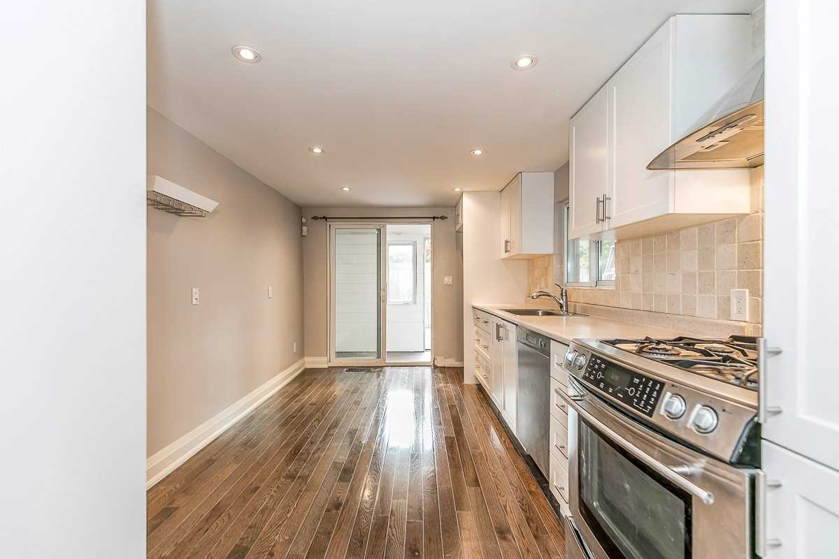 New Hardwood Floors Sweep Through This Thoughtfully Laid Out Open Concept Main Floor. Large Living & Dining Rooms Open To Eat In Kitchen With Custom Backsplash. Walk Out To The Charming Sunroom, Newly Renovated To Include Shiplap & Pot Lights. From There Step Out Onto Your Spacious Deck & Get Ready To Host Bbqs. Upstairs The Pampering Begins In The Expanded Bathroom With Large Tub And Custom Vanity, Then Rest In A Generous Master Bedroom With Bow Windows. 2nd Bed For Guests Or Little Ones, & A Den To Get Work Done From Home. Freshly Painted. New Stainless Steel Fridge Ordered, Gas Stove, Built In Dishwasher & Frontload Washer & Dryer In Laundry Included. Virtually Staged. 1Pc Washroom Bsmt