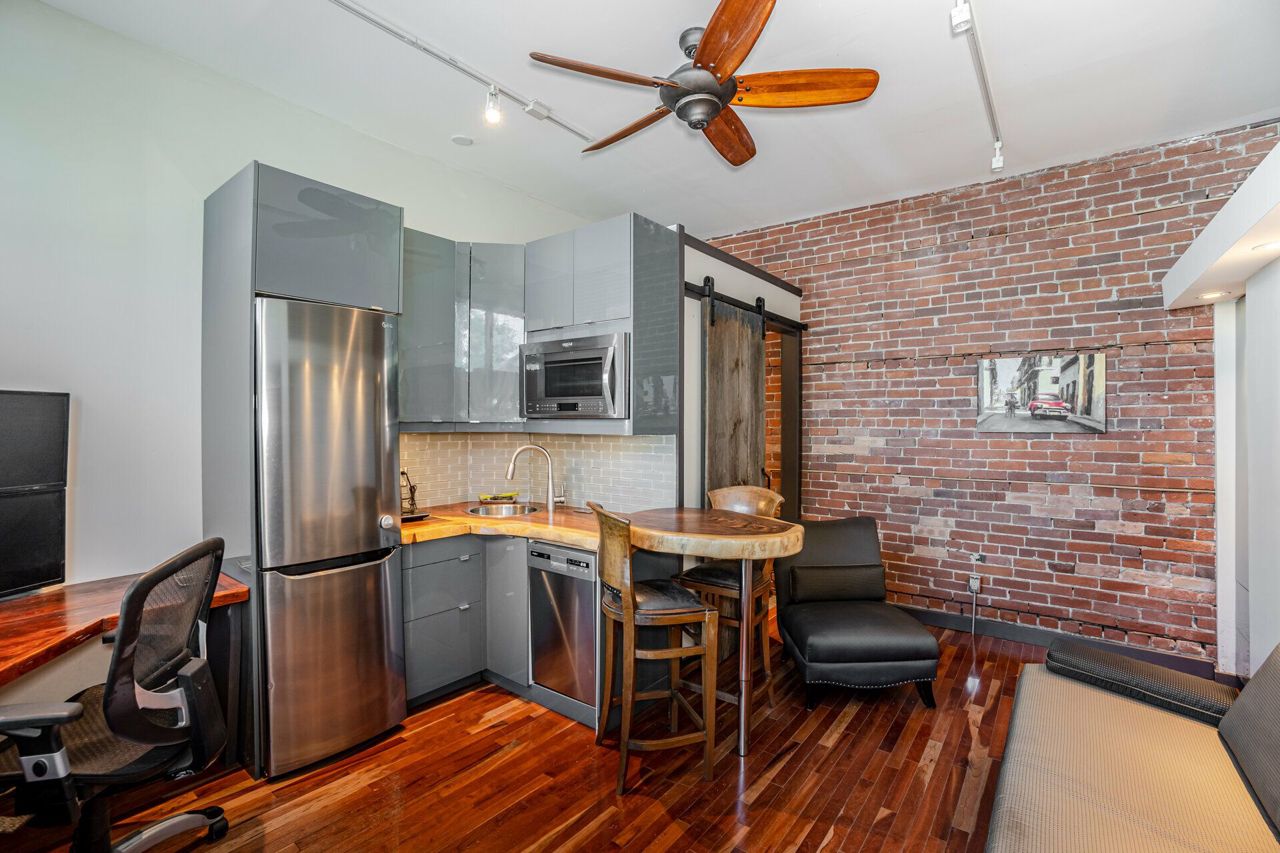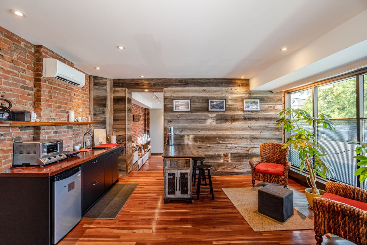 A beautiful corner building and ideal live/work combination, with an urban chic design; well suited for professionals looking for a nice office or savvy entrepreneurs wanting a trendy home where they can also grow a business. This property has been fully updated and is versatile. It is currently a warm, comfortable, commercial environment with a separate residence. It is ideally situated in a quiet mature neighbourhood and a short walk to the restaurant and shops in the junction, Roncesvalles, High Park and Bloor west village, as well as the subway, GO and Airport Express. The blend of exposed brick and reclaimed barnboard walls, real hardwood flooring, full height tinted windows, high-ceilings, radiant heat and added insulation makes for a place that is warm, enchanting and energy efficient. With modern kitchens, updated utilities, 200+ am electrical service, security fully wired, enhanced lighting, and more, this property is move-in ready! There is parking on-site**INTERBOARD LISTING: OAKVILLE, MILTON & DISTRICT R. E. ASSOC**There is a small back unit that could be used or rented. The basement is partially finished, with clean and tidy storage. Continuity throughout the building makes it easy to c