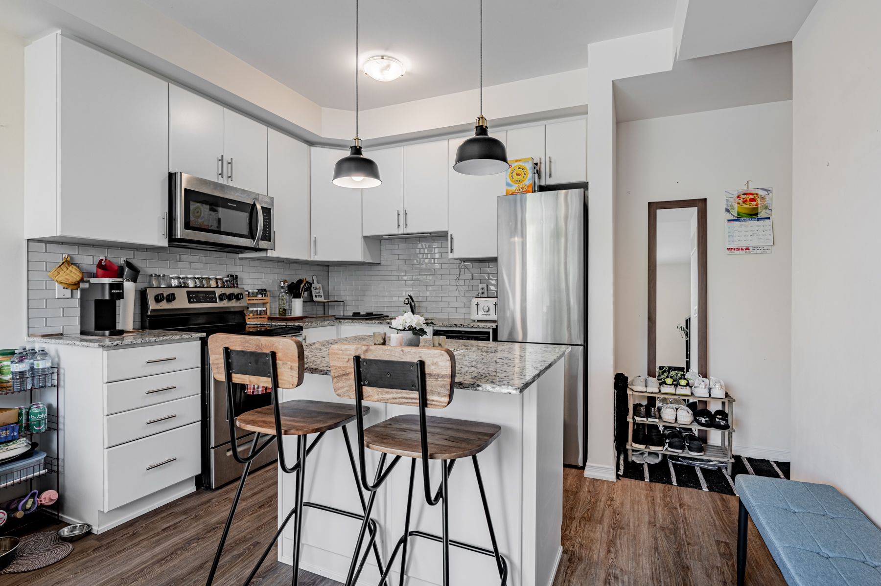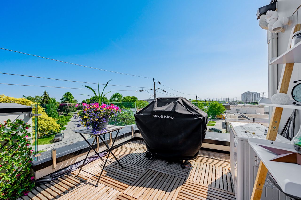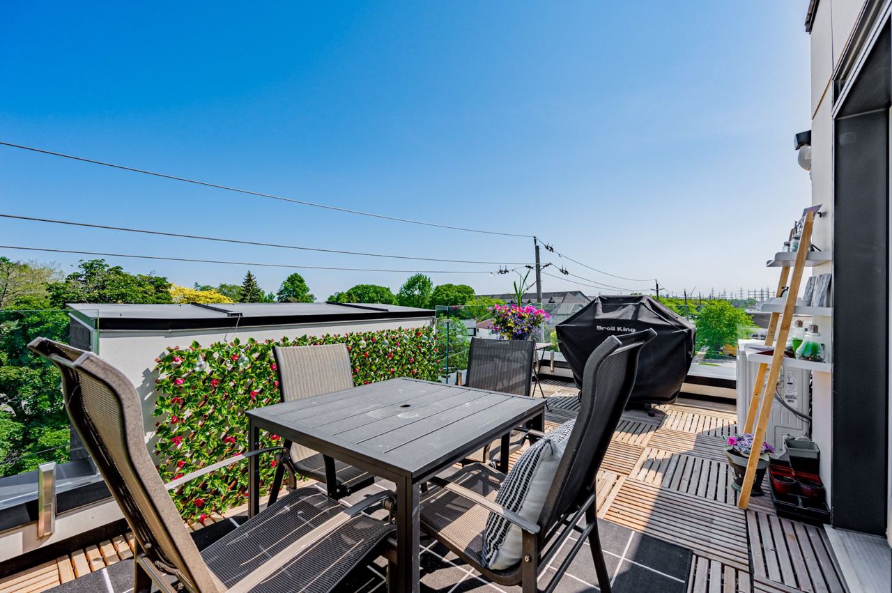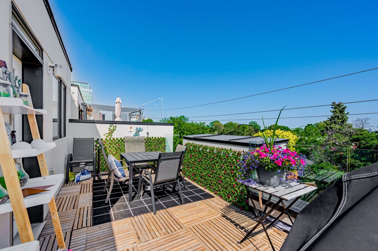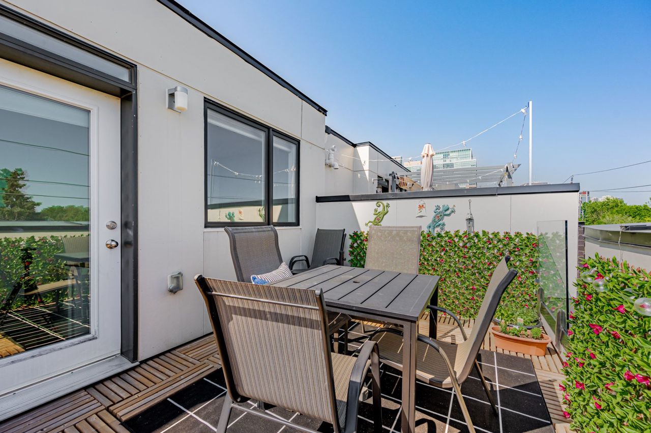 This stunning corner unit condo townhouse boasts three stories of spacious living with an inviting feel of a home. Flooded with natural light throughout, this unit features an eat-in kitchen, two spacious bedrooms, two bathrooms and two outdoor spaces. Step outside to the private breathtaking rooftop terrace, BBQ with your friends or just relax with unobstructed views of the residential neighourhood. With over 900 sq feet of living space and an additional 180 sq foot terrace, this property is sure to impress and is perfect for those seeking both beauty and convenience.Underground parking is only steps away from your front door for ultimate convenience.