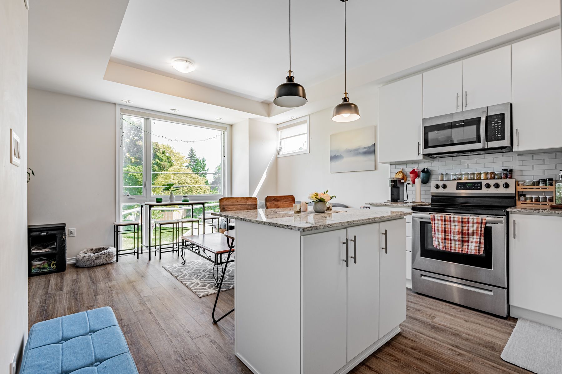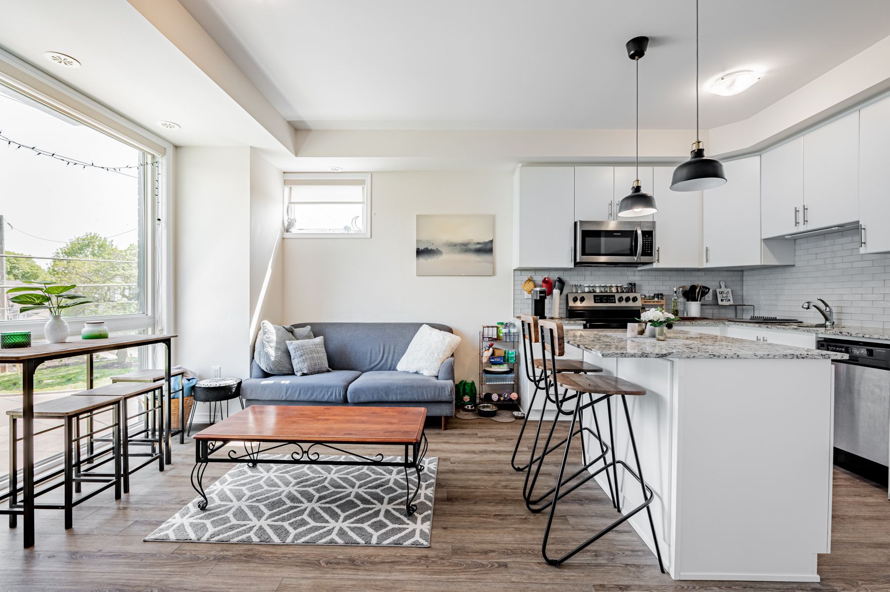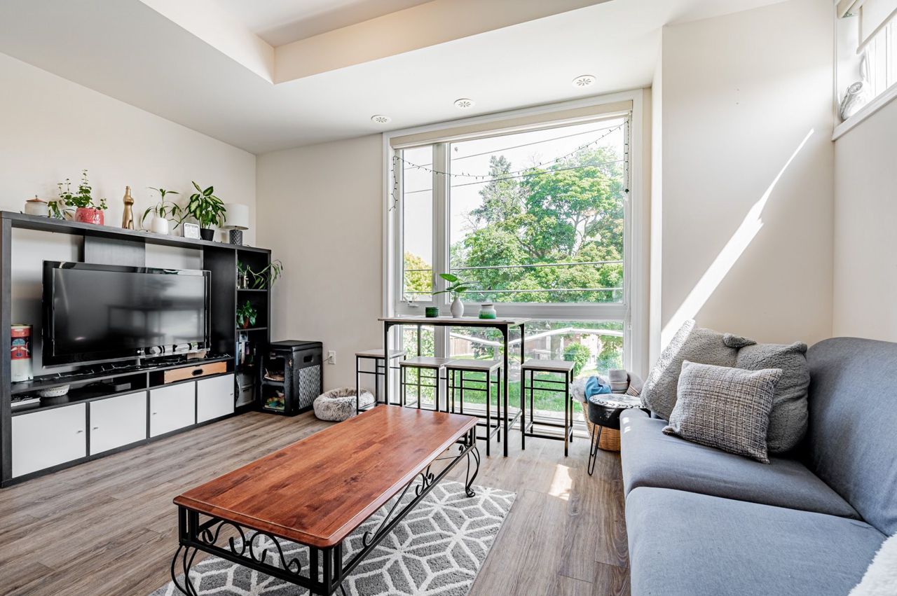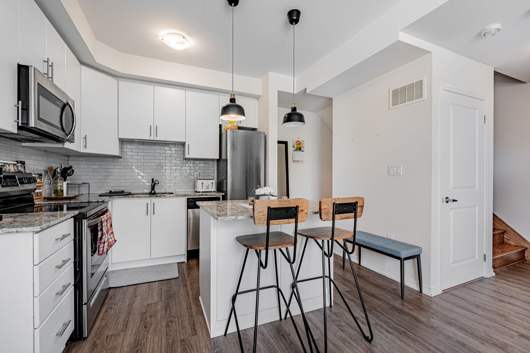 This stunning corner unit condo townhouse boasts three stories of spacious living with an inviting feel of a home. Flooded with natural light throughout, this unit features an eat-in kitchen, two spacious bedrooms, two bathrooms and two outdoor spaces. Step outside to the private breathtaking rooftop terrace, BBQ with your friends or just relax with unobstructed views of the residential neighourhood. With over 900 sq feet of living space and an additional 180 sq foot terrace, this property is sure to impress and is perfect for those seeking both beauty and convenience.Underground parking is only steps away from your front door for ultimate convenience.