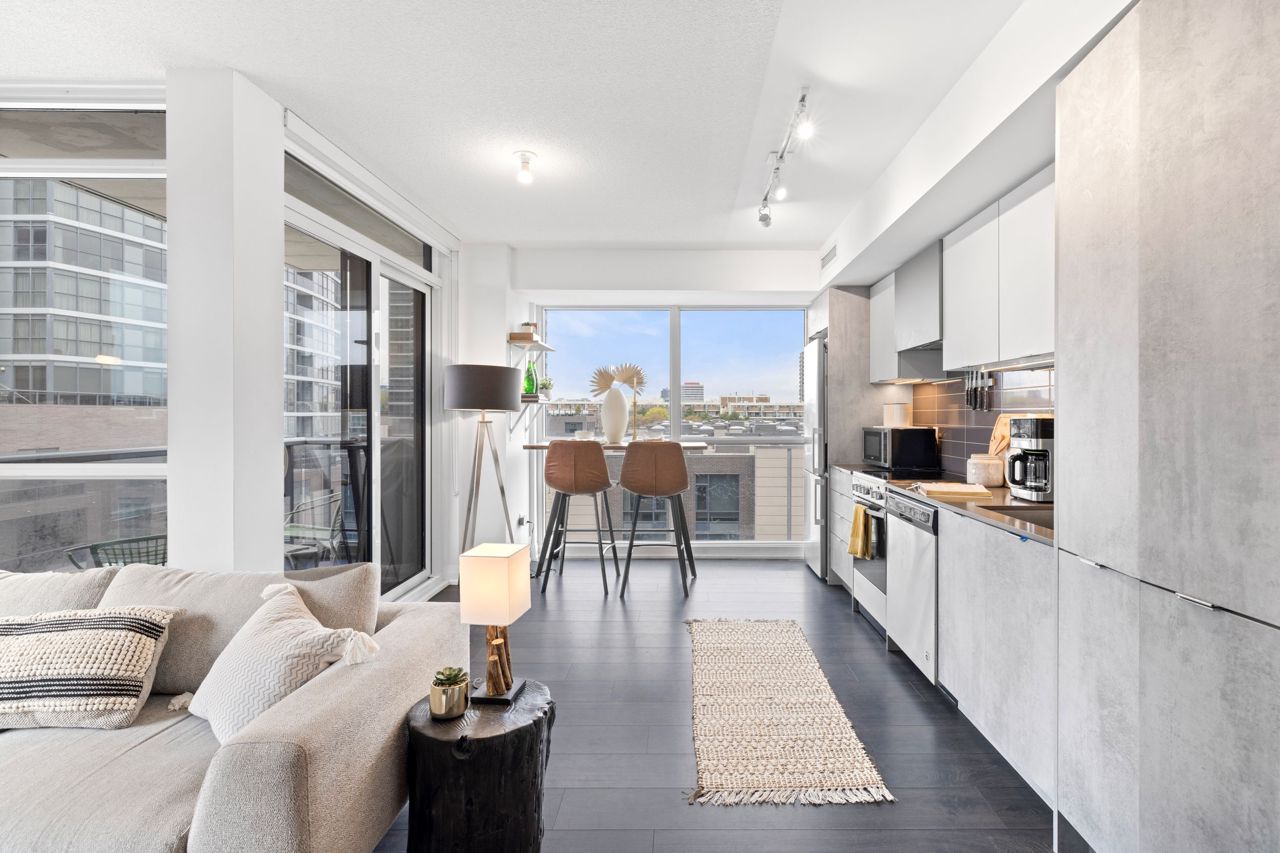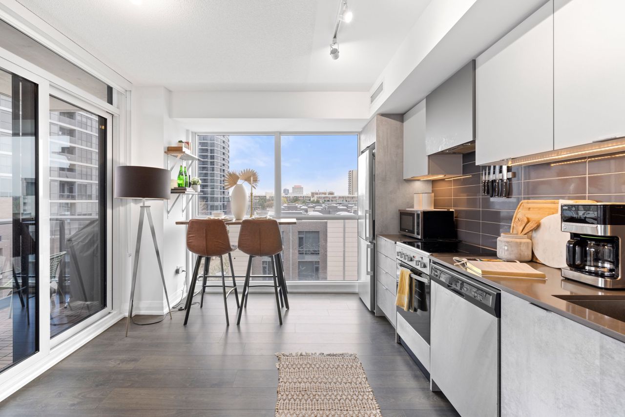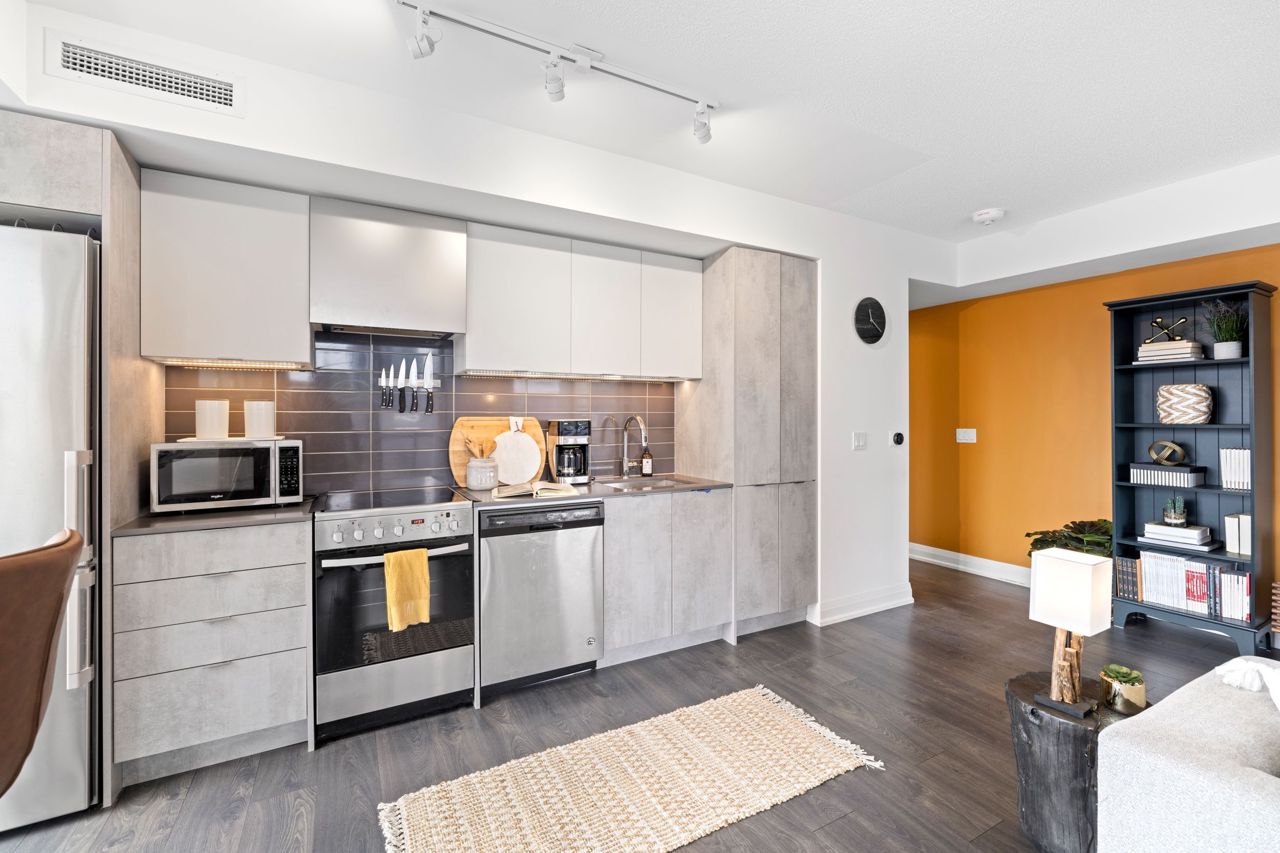 A beautiful 888 Sq Ft 2 Bed + Den condo situated in the heart of Etobicoke, Prim Bdrm features Walk In Closet, Open Concept Kitchen, Quartz Countertops, walking distance to Cloverdale Mall, Loblaws, Restaurants, Parks. A Desirable Low Rise Building With Many Luxurious Amenities, Outdoor Pool, Gym, Party Room, Media Room, Barbecue Terrace, Sauna, Library, Children's Playground. Quick Access To Highway 427, 401, Qew. Shuttle Bus To Kipling Subway/ Sherway Gardens Mall.Ss Fridge, Stove, Dishwasher, Microwave,Washer, Dryer. Bright And Spacious over 885 Sq of Living Space Including 50 Sq Ft Balcony. 9' Ft Ceilings, Ensuite Laundry, Walk In Closet in Primary Bdrm, 1 Underground Parking, Internet Included