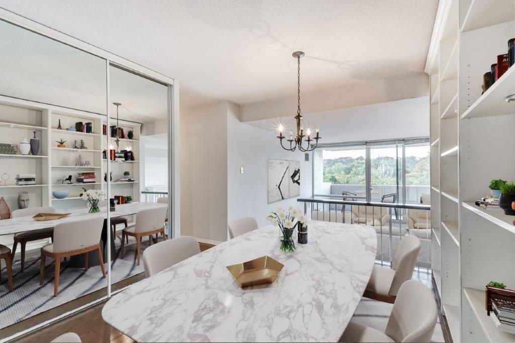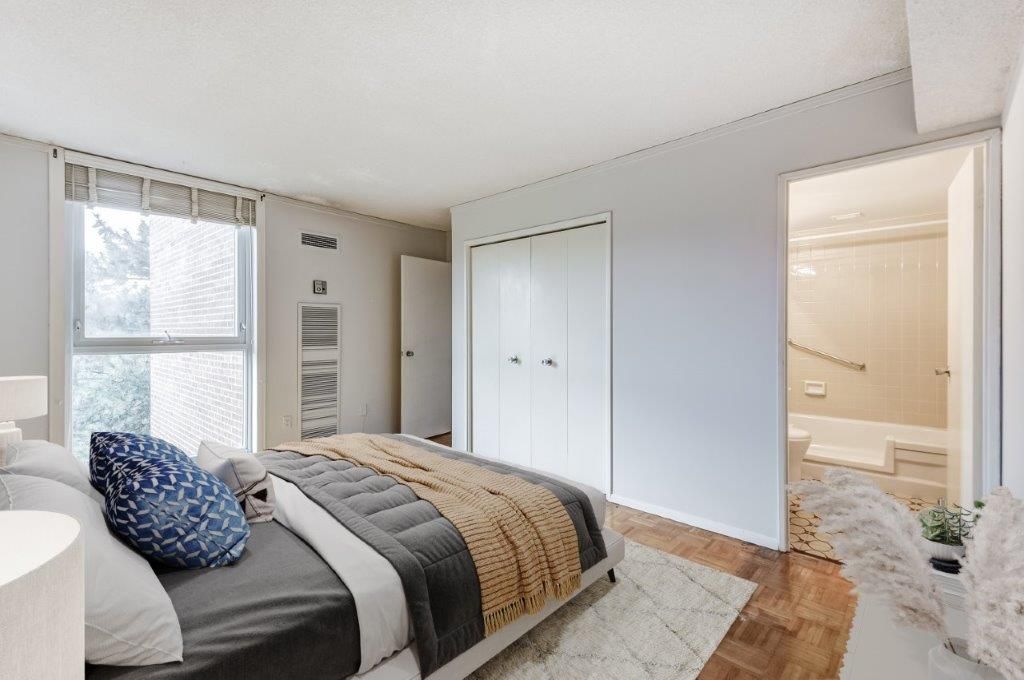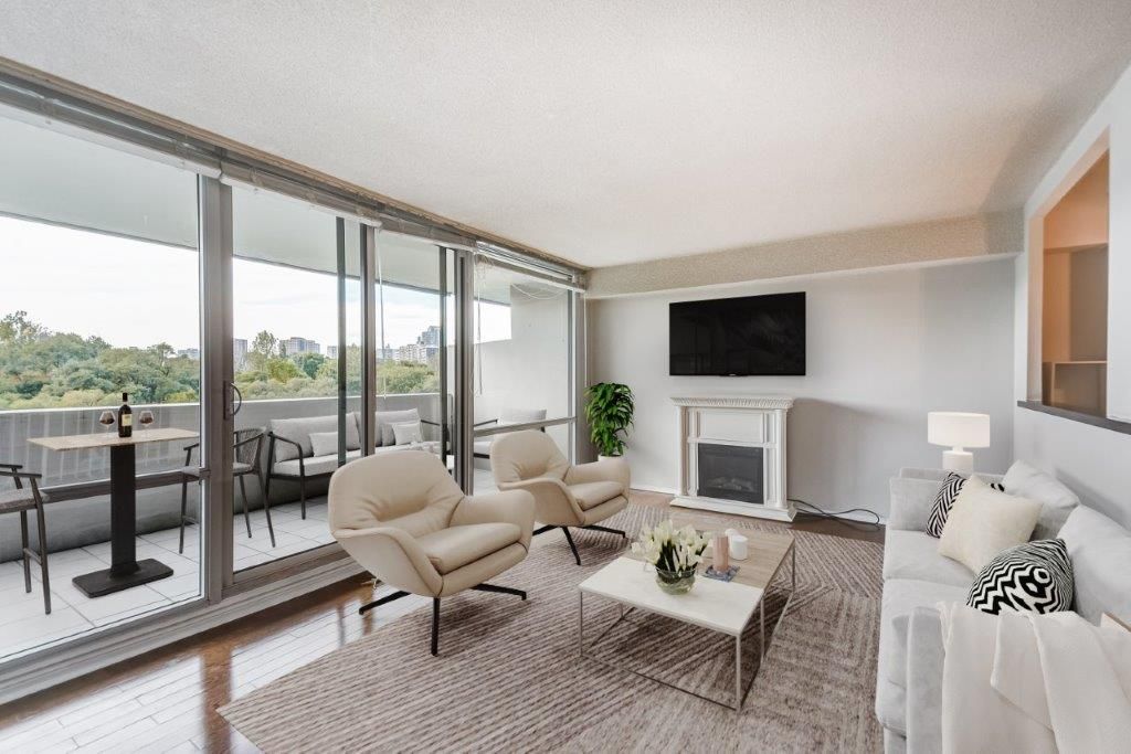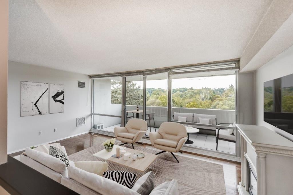 Enjoy breathtaking views of the Humber River from this highly coveted corner suite at Lambton Square! This unit features a large eat-in kitchen, separate dining room with built-in shelves & a sunken living room with walk-out to an oversized balcony. Rarely available 3 spacious bedrooms, two full bathrooms and an ensuite laundry room with storage. Professionally painted in a neutral designer palette throughout. Fabulous building amenities include outdoor pool, gym, sauna, party room and visitor parking. Monthly maintenance fee covers all utilities including cable, 1 underground parking space & 1 locker. Conveniently located within close proximity to transit, shopping, schools, both airports & renowned golfing!
