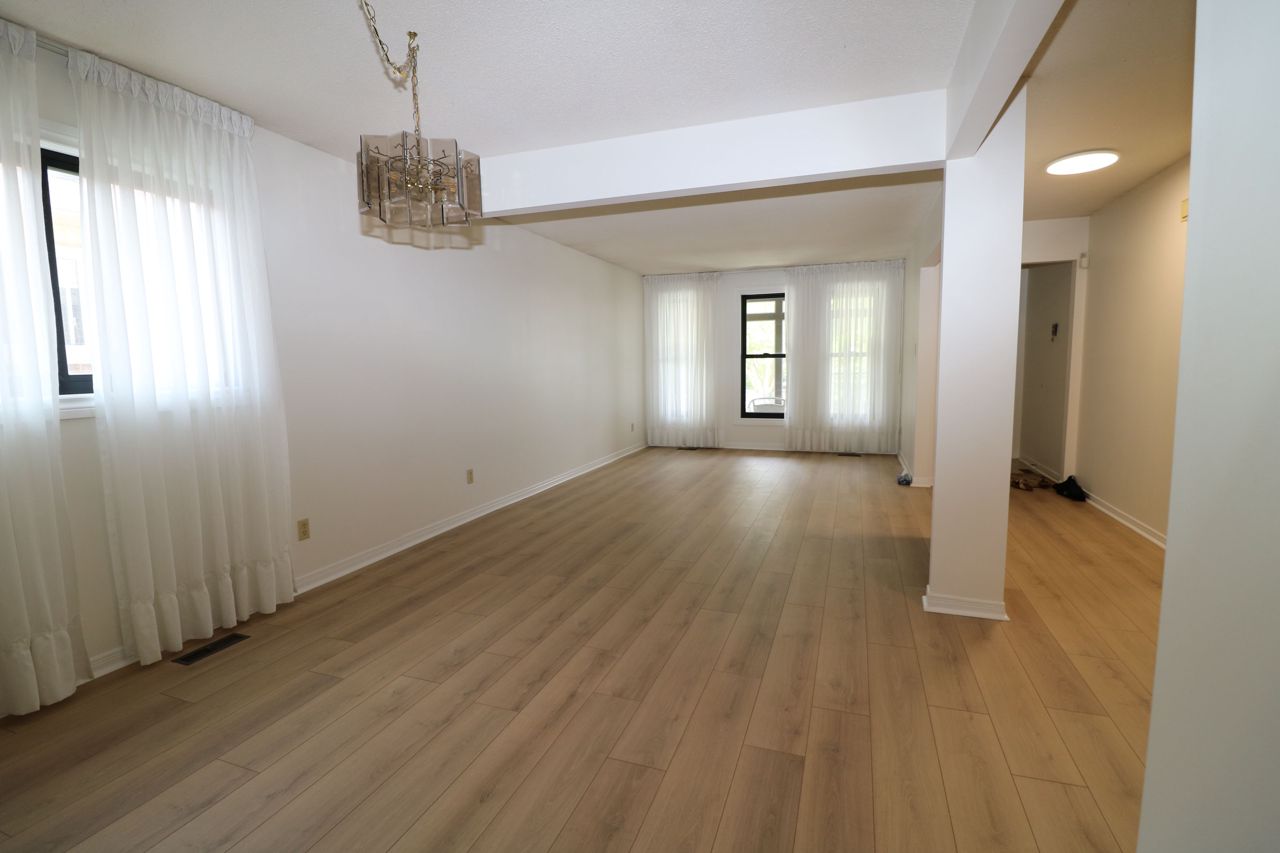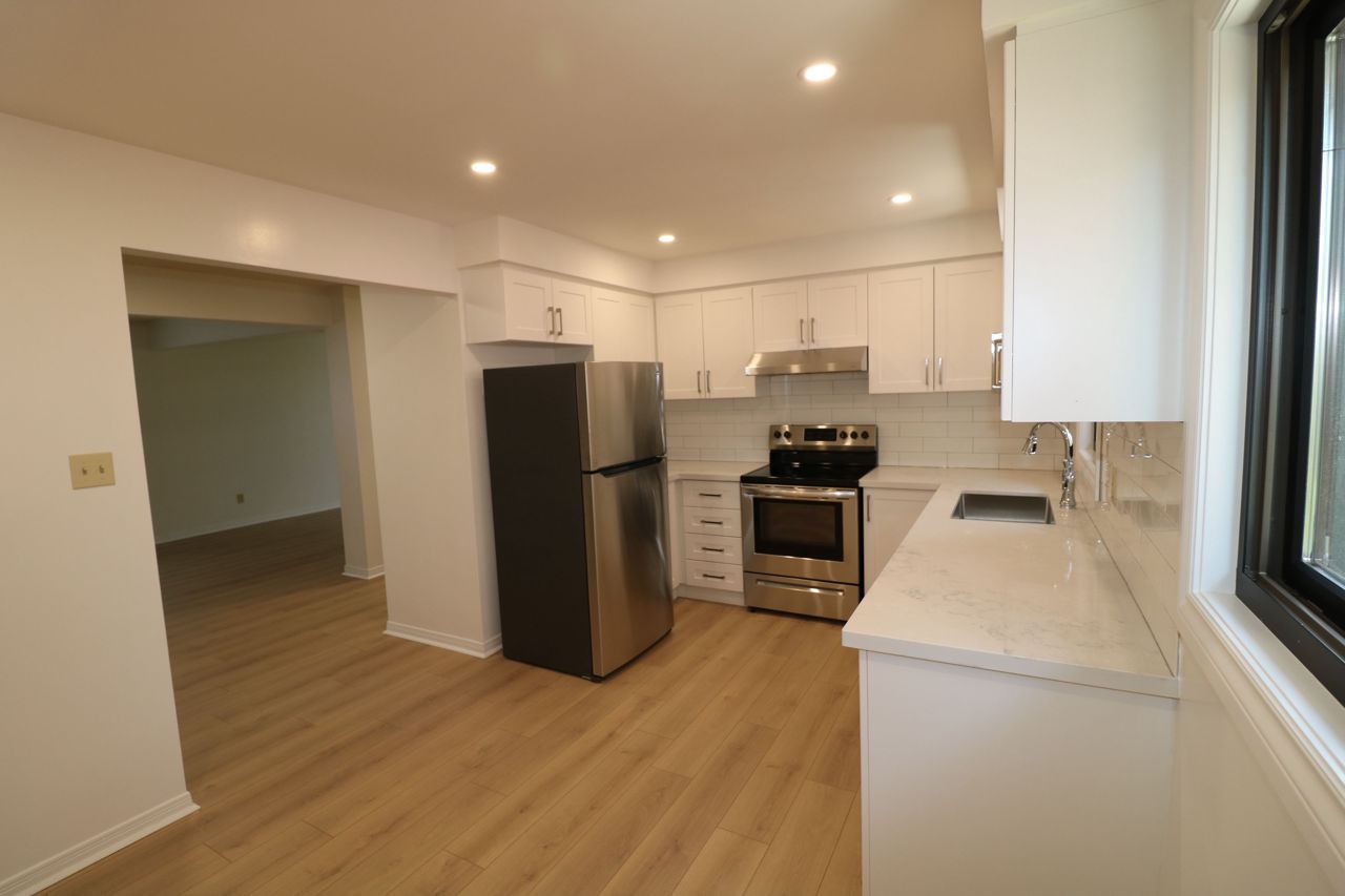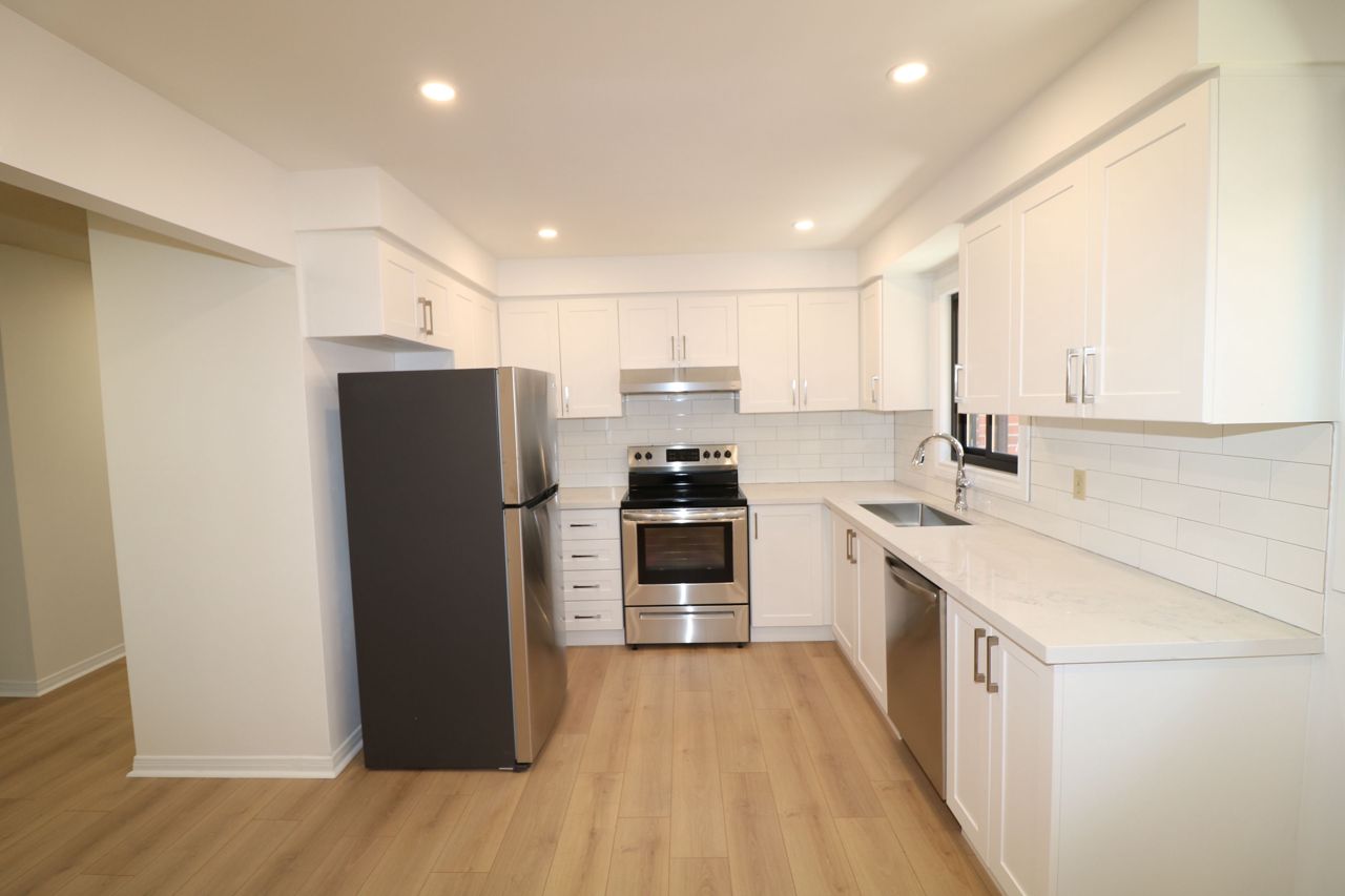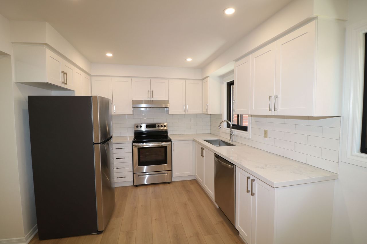 Immaculate professionally remodeled large unit. Freshly painted. Oversized large rooms. Wide plank laminate thru-out. Modern kitchen with brand new s/s apps, new cabinets and quartz counters. Primary w ensuite bath. Bright, many windows. Family toom w/o to patio. Exclusive use of fenced backyard. New interlock and landscaping. Plenty of space for the whole family. Steps to Milliken distruct park, public transit 2 doors away, grocery shopping.Brand new fridge, stove, dishwasher, washer, dryer, all window coverings, all electric light fixtures. Tenant responsible for 50% of utilities. Obtain tenant insurance. 1 parking in driveway + 1 in garage in exchange for snow removal.
