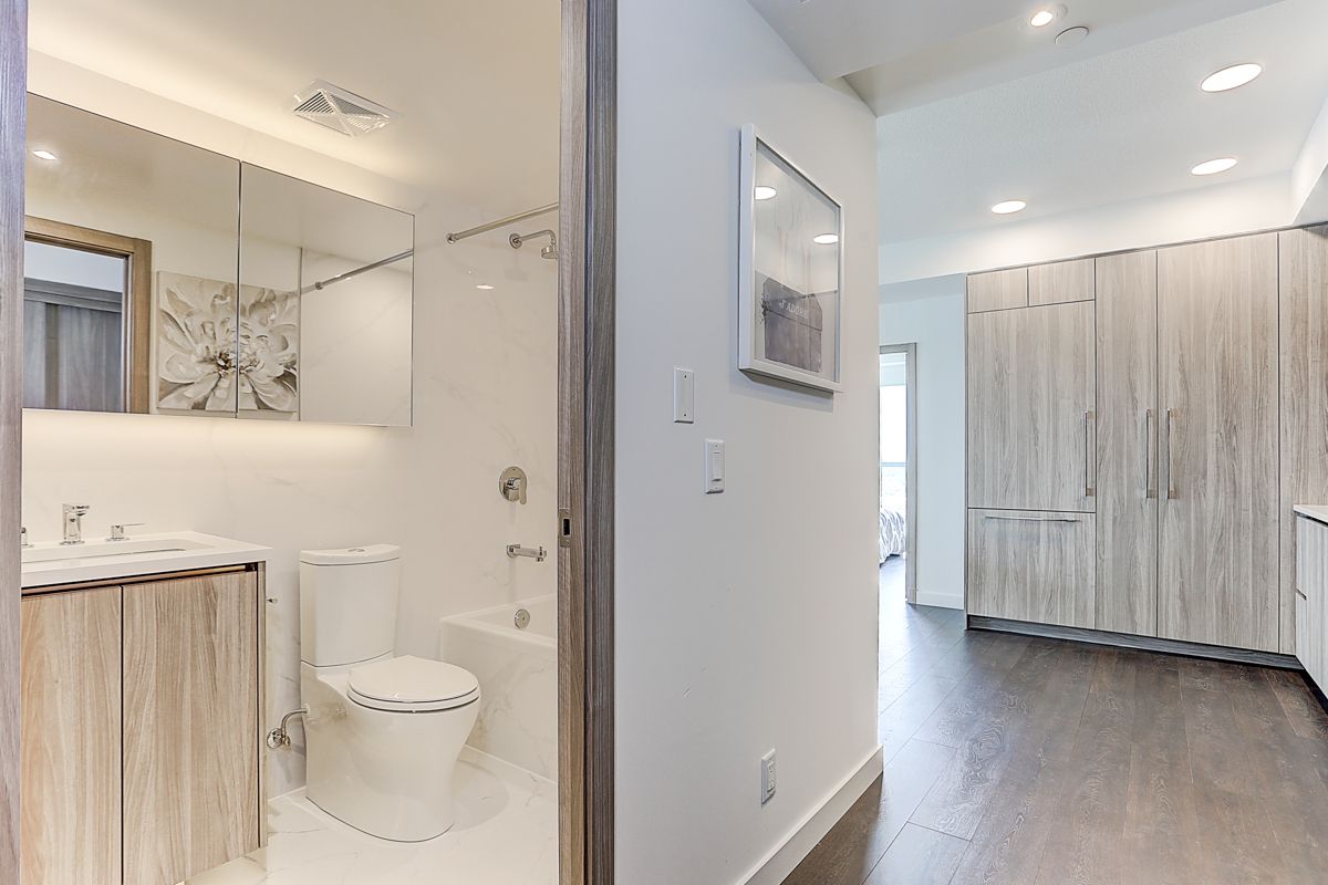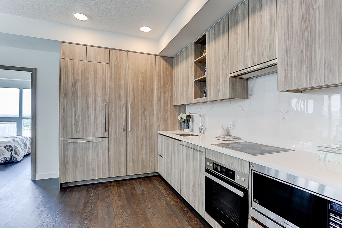 Brand New, Never Lived In! Luxurious 2 Br 2 Ba Corner Unit in Prestigious Bayview Village Community. Spacious Layout with 9 Feet Ceiling, Large Balcony features Radiant ceiling heaters, Balcony lights, Wood-grain soffit ceiling treatment and Composite wood decking. Modern Kitchen With Engineered quartz stone countertop, Large-format porcelain Calacatta tile backsplash and Custom wood-grain laminate cabinetry, Drawer organizers and Under-cabinet lighting. Luxurious Miele Appliances. Walking Distance to Subway, Go Train Station, North York General Hospital, IKEA, Canadian Tire, Newly Completed Ethennonnhawahstihnen' Community Recreation Centre and Library, etc. Minutes to HWY 401/404/DVP. 1 Parking & 1 Locker Included! Parking is right beside the Elevator!Miele refrigerator, Miele hood fan, Miele dishwasher, Miele electric cook-top, Mieleboven, Miele stackable front load washer and dryer, Panasonic microwave .
