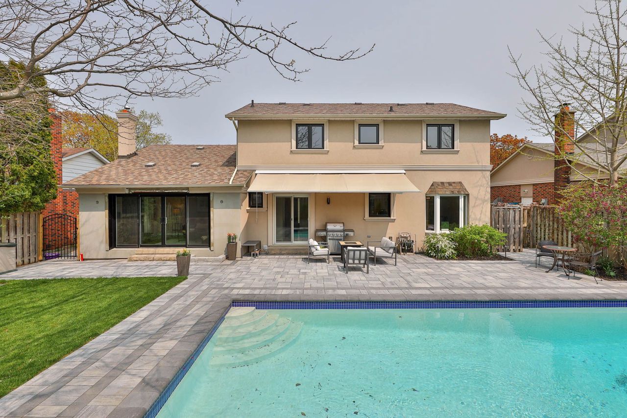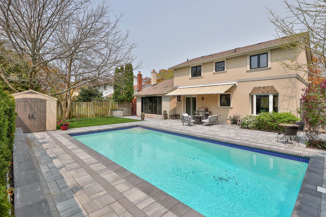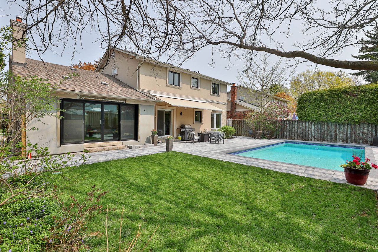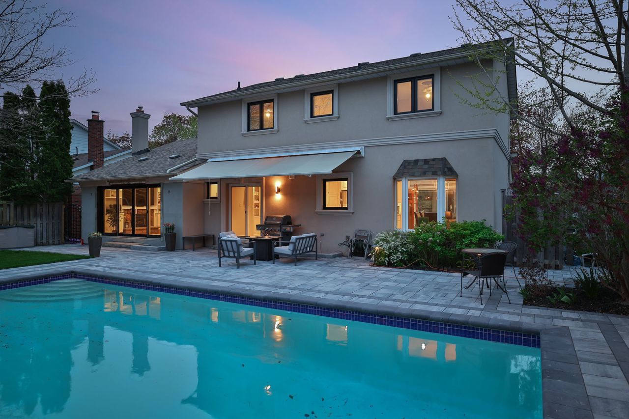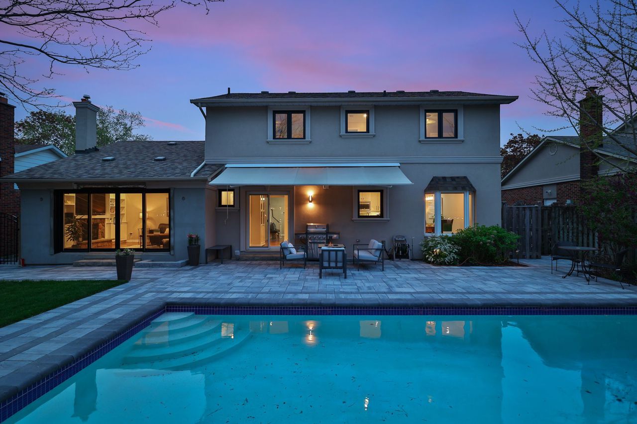 Prestige, Pool, Privacy! Exquisitely renovated, 4+1 bedroom, two-storey, cheerful, south-facing family home with main floor family room, custom kitchen, large covered front patio, double car garage, finished lower level and professionally landscaped, fenced-in, resort-like backyard with extensive patio space and inviting pool, on a much sought-after crescent. Over 3,000 sq ft (total living space) of luxury. Ideal for entertaining. Near public, Catholic, French Immersion and private schools, lower, middle and high schools. Walk to community centre. Steps to ravines, parks, nature trails, grocery stores and TTC. Minutes to Shops at Don Mills and other malls and plazas. Easy access to DVP/404 and 401.S/s: LG d/d fr, LG gas stv, LG b/i mw, Broan hd, Whirlpool FL dryer, Whirlpool Gold d/d fr, KitchenAid b/I dw, wine fr. wshr, win covs, b/ins, elf's, 150 Amp svc, hi-eff furn, hi-eff cac, hum, agdo+2 rems, pool e&a, shed, u/g sprinkler sys.