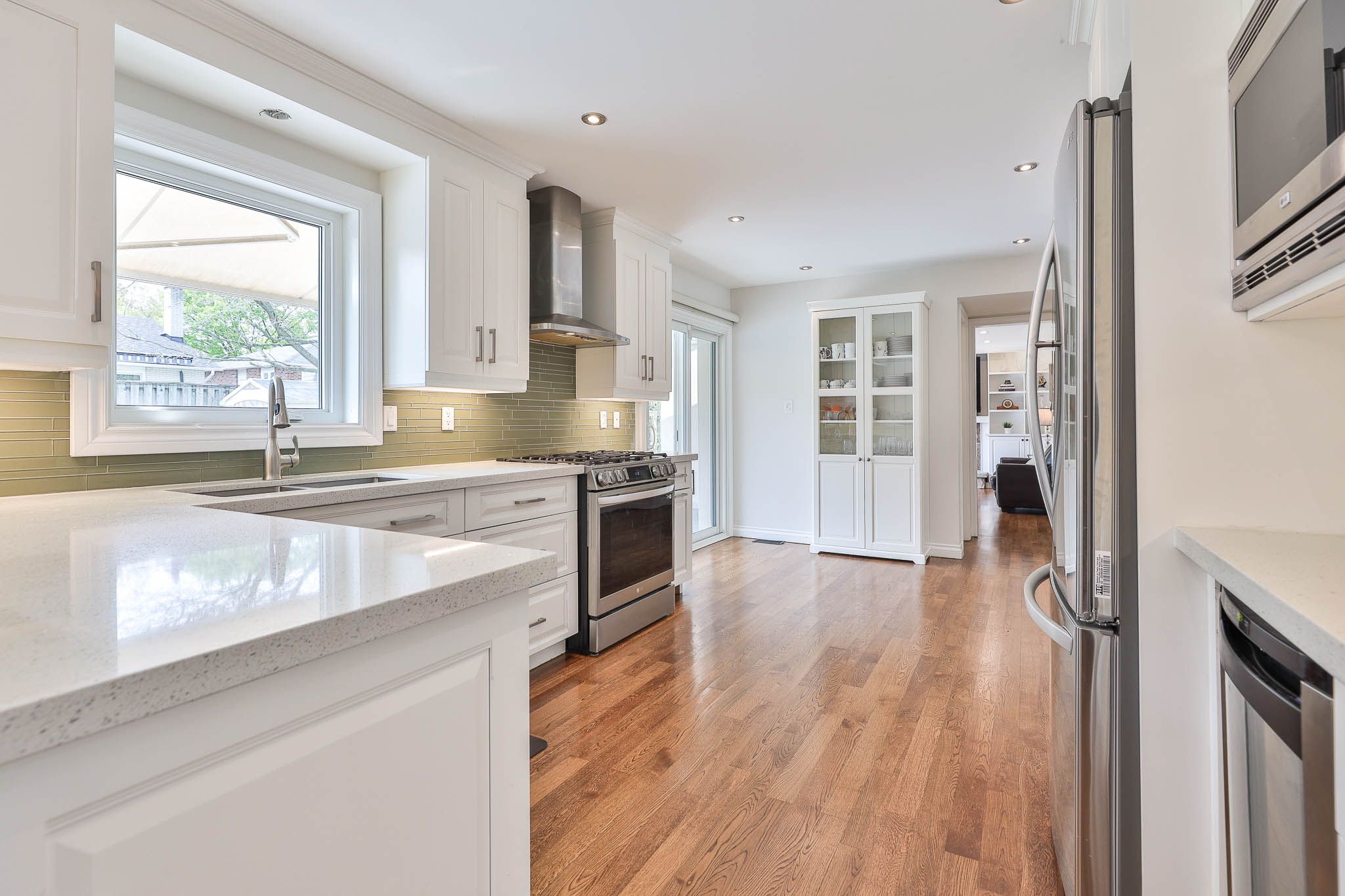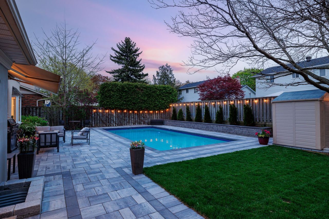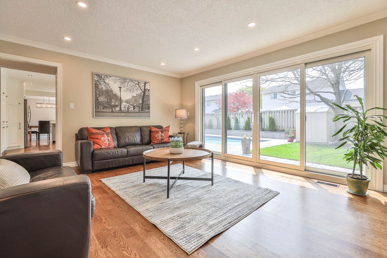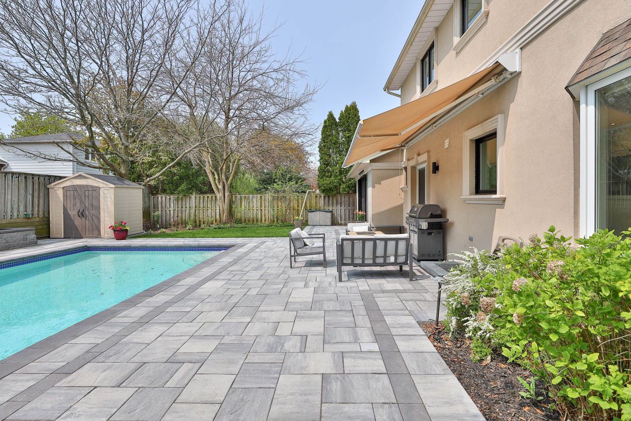Prestige, Pool, Privacy! Exquisitely renovated, 4+1 bedroom, two-storey, cheerful, south-facing family home with main floor family room, custom kitchen, large covered front patio, double car garage, finished lower level and professionally landscaped, fenced-in, resort-like backyard with extensive patio space and inviting pool, on a much sought-after crescent. Over 3,000 sq ft (total living space) of luxury. Ideal for entertaining. Near public, Catholic, French Immersion and private schools, lower, middle and high schools. Walk to community centre. Steps to ravines, parks, nature trails, grocery stores and TTC. Minutes to Shops at Don Mills and other malls and plazas. Easy access to DVP/404 and 401.S/s: LG d/d fr, LG gas stv, LG b/i mw, Broan hd, Whirlpool FL dryer, Whirlpool Gold d/d fr, KitchenAid b/I dw, wine fr. wshr, win covs, b/ins, elf's, 150 Amp svc, hi-eff furn, hi-eff cac, hum, agdo+2 rems, pool e&a, shed, u/g sprinkler sys.