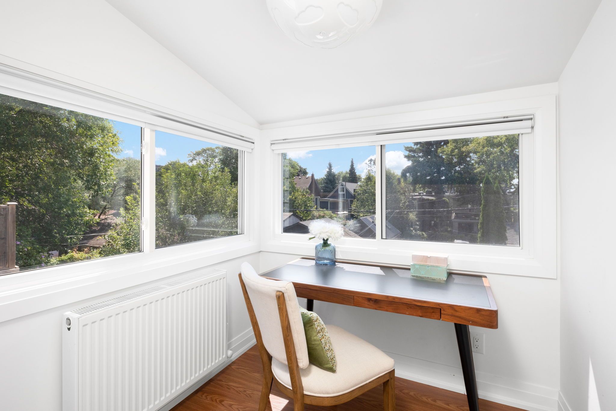 Prime Roncesvalles. Beautiful and quiet tree-lined street and just a short stroll to trendy coffee shops, bakeries and boutiques. Public transit, Toronto's best parks and excellent schools nearby. This location is a 10 !!!!! Yes parking and garage are part of this amazing package. The pretty garden has a sunny south exposure that it perfect for gardening, a children's play area and socials. The pretty covered front porch is the perfect place to enjoy your morning coffee. The main floor renovation saw walls removed to create a bright and spacious cpen concept that is perfect for entertaining family and friends. The custom designed Chef's kitchen has a gas stove and quartz counters. The upstairs washroom was totally renovated. More Upgrades: 2017: New electrical installed throughout entire house. New high-efficiency pot lights and lighting fixtures installed throughout house. New plumbing installed Including lead pipe replacement. . Under stairs closet created with double doors to maximize space, create usable storage. Heat Recovery Ventilation (HRV) unit installed (owned). New radiant heating installed throughout house including high-efficiency slim profile radiators. . High-efficiency ductless air conditioning installed on main floor and second floor (owned). New second floor bathroom including designer fixtures and tile throughout. Added master bedroom closet system. Eavestrough replaced. BASEMENT 2018: Replaced back entrance stairs with custom oak stairs, treated and stained. Waterproofing exterior and interior including sump pump installation and back water valve. New flooring, doors, light fixtures. New kitchen cabinets & appliances. New bathroom fixtures. GARAGE 2022-23: Roof replaced. New eavestroughs, soffit and fascia. Exterior painted. OTHER REPAIRS: New shingles installed front facing roof 2022. Landscaping throughout front and backyard including new cherry tree, rose and peony plants 2018-2022. New front walkway 2019. Painted front porch 2024.Separate bsmt entrance. Plumbing/electrical for potential main floor washer/dryer use. Laneway is wide and concrete block garage has a wide opening and is oversize providing plenty of room to get your car in and out with extra storage room.