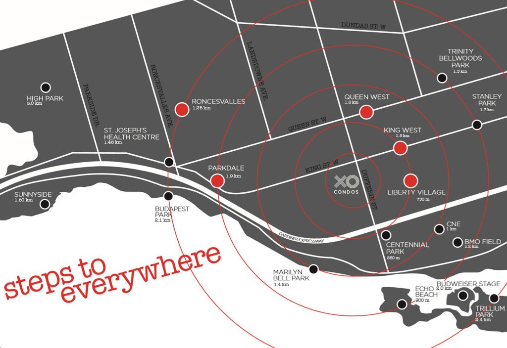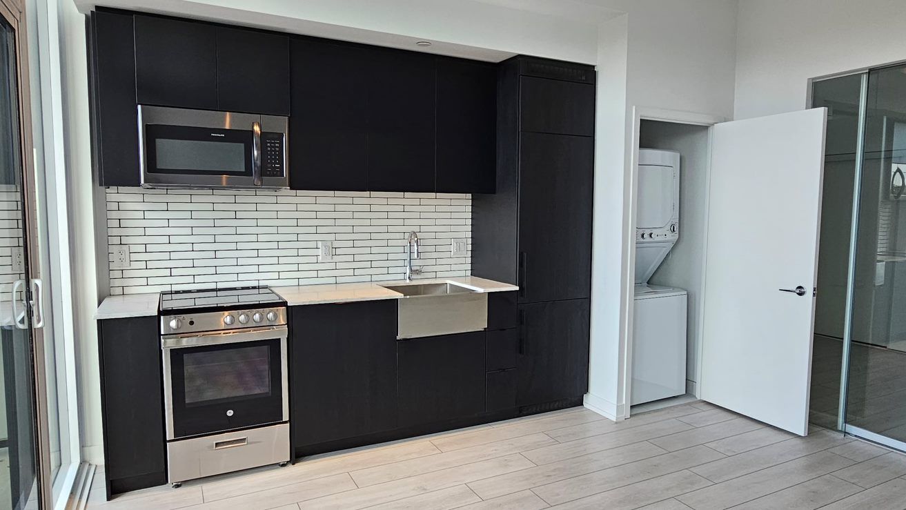 Welcome to the XO Condos! This open concept and spacious 1 Bedroom, 1 Bath unit is ideally located at King St W & Dufferin with TTC at your door step. This unit features a functional layout seamlessly connected to a full balcony, providing a serene outdoor retreat. Great and Open floor plan with floor-to-ceiling windows and built in modern kitchen appliances. Enjoy the convenience of being steps away from King & Queen Streetcar, Waterfront, Restaurants and Shops, Bars, the Gardiner Expressway, CNE, and much much more. Perfect for young professionals -you don't want to miss this opportunity!Built in fridge, dishwasher, stove, cooktop, hood fan, stacked Full Sized washer/dryer, and all electrical light fixtures. Brand new blinds already installed.