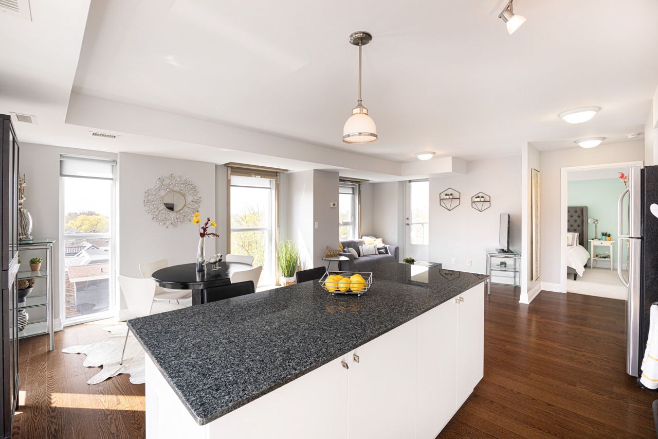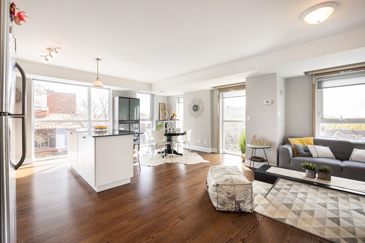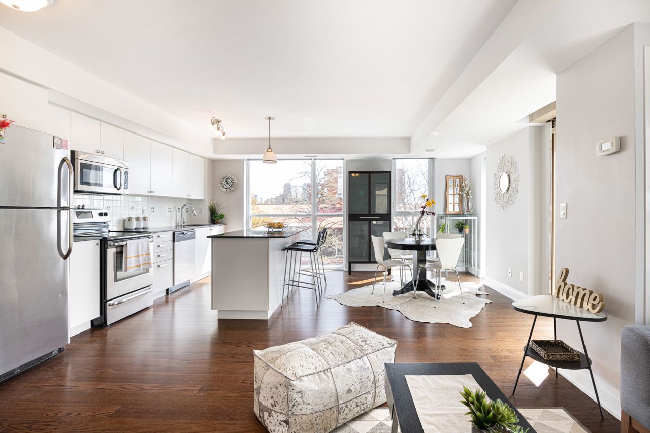 Beautiful Custom Floor Plan Corner-suite in trendy Wychwood! 1 bedroom + Den converted to very spacious 1 Bedroom Unit - A perfect layout! This Bright and Sunny, South-East Facing corner unit has an abundance of Floor-to-Ceiling Windows boasting tons of natural light and great city views! Excellent location - Steps from TTC, Great Restaurants, Wychwood Barns, Parks, and shopping! A true gem!Stainless Steel Fridge, Ceramic Cooktop Stove, OTR Microwave, B/I Dishwasher, stacked washer/dryer, All ELF's, Custom Blinds, Locker and Bike Storage!
