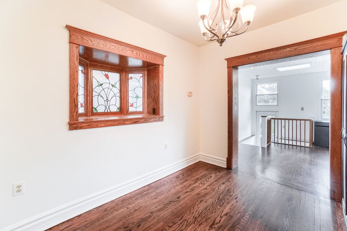 Bay Window Stained Glass Hardwood Floor