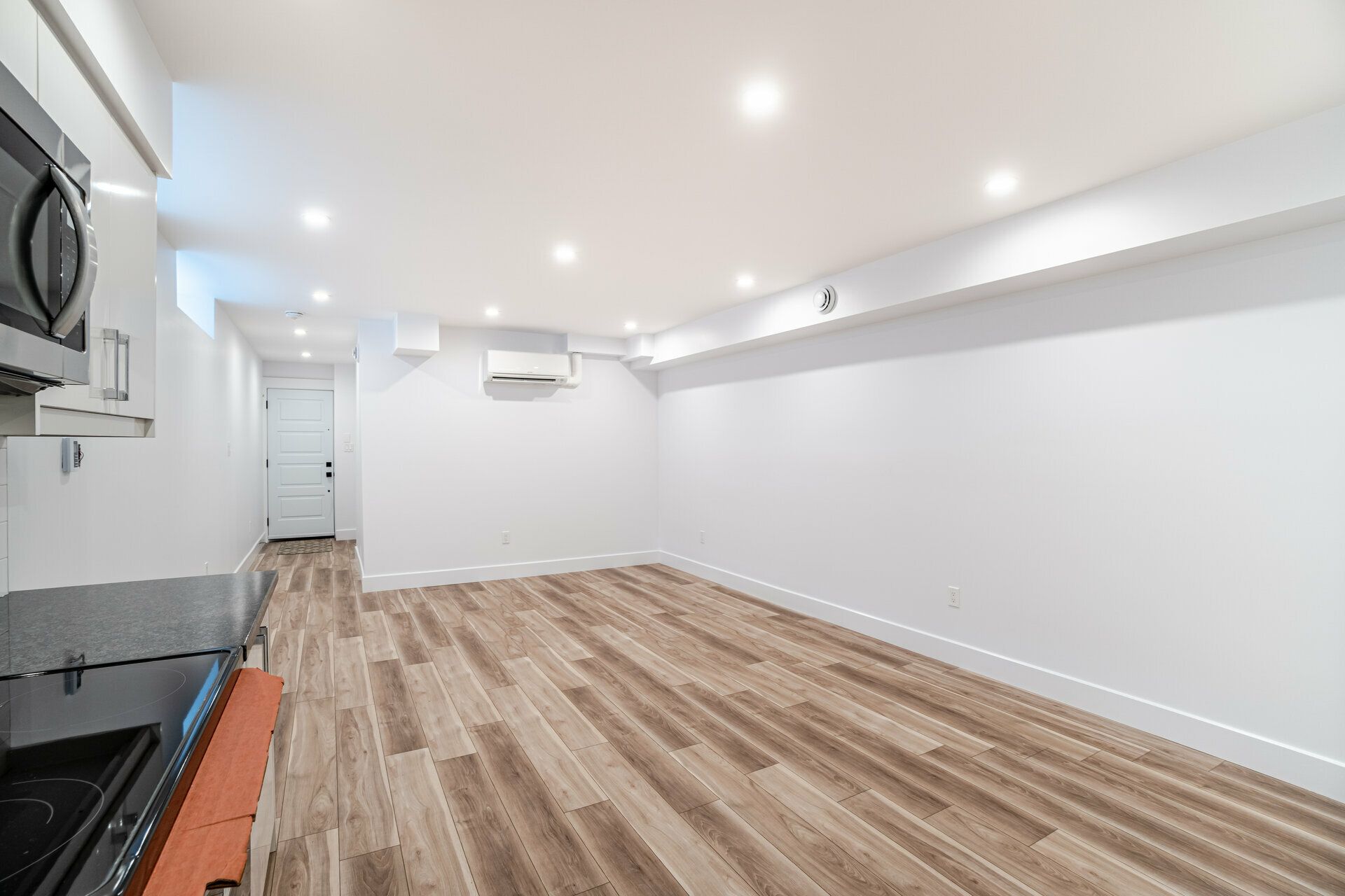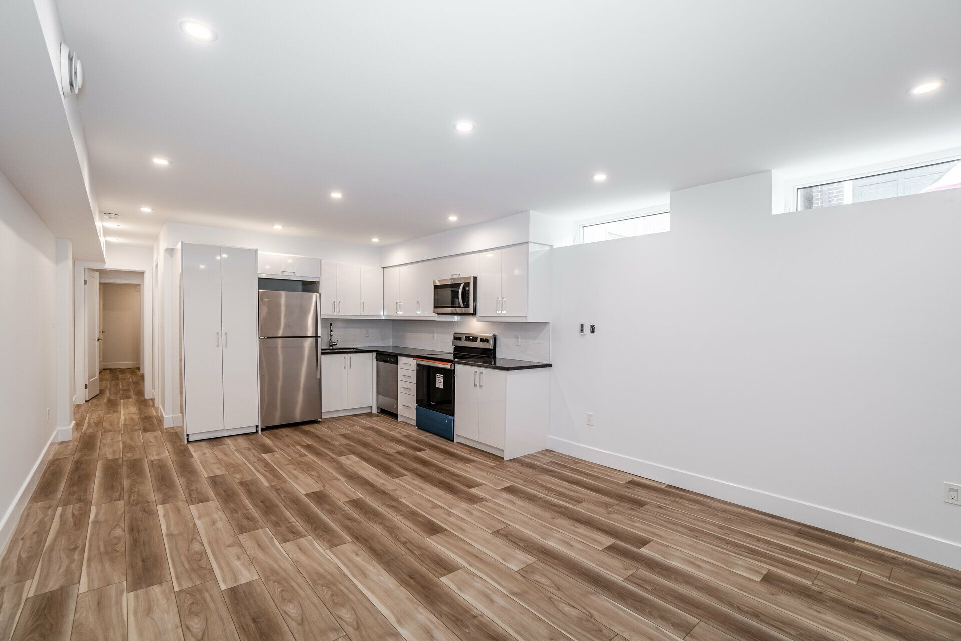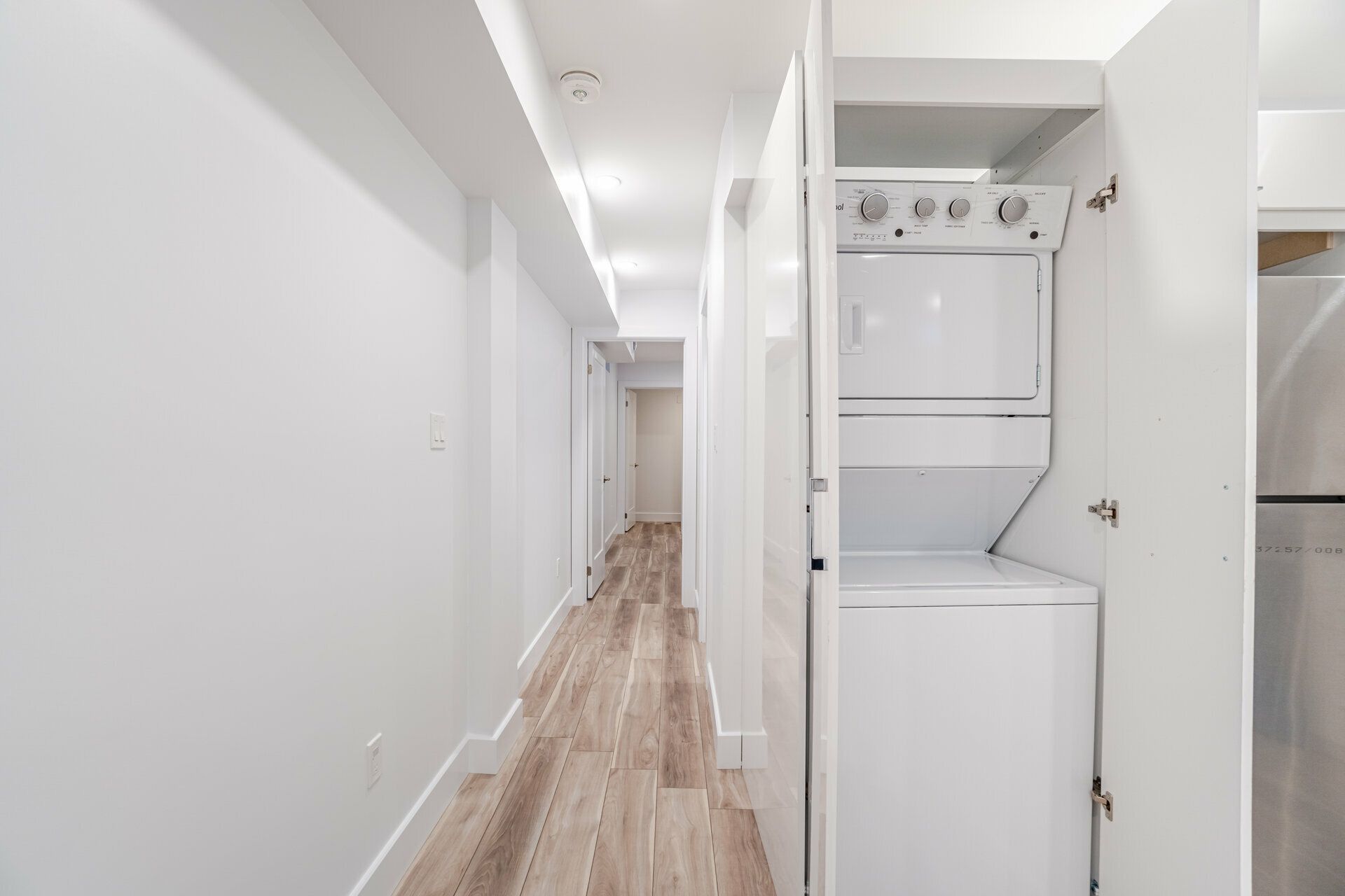 Completely renovated never lived-in Luxury Lower 1 Bedroom + large storage unit with separated entrance, large modern kitchen w/ brand new appliances including dishwasher, high ceilings, and ensuite stacked laundry, high end finishes. Large bedroom filled with sunlight throughout. Stunningly renovated spa-like bathroom. Built in air conditioning units. Heated floors throughout entire unit. Storage area measures approximately 4.45 ft wide x 9 ft long. Fully separated ventilation system from upstairs. Separate climate control. Close to schools, transit and all amenities. Street parking available inexpensively by permit. Walk to all Corso Italia has to offer.