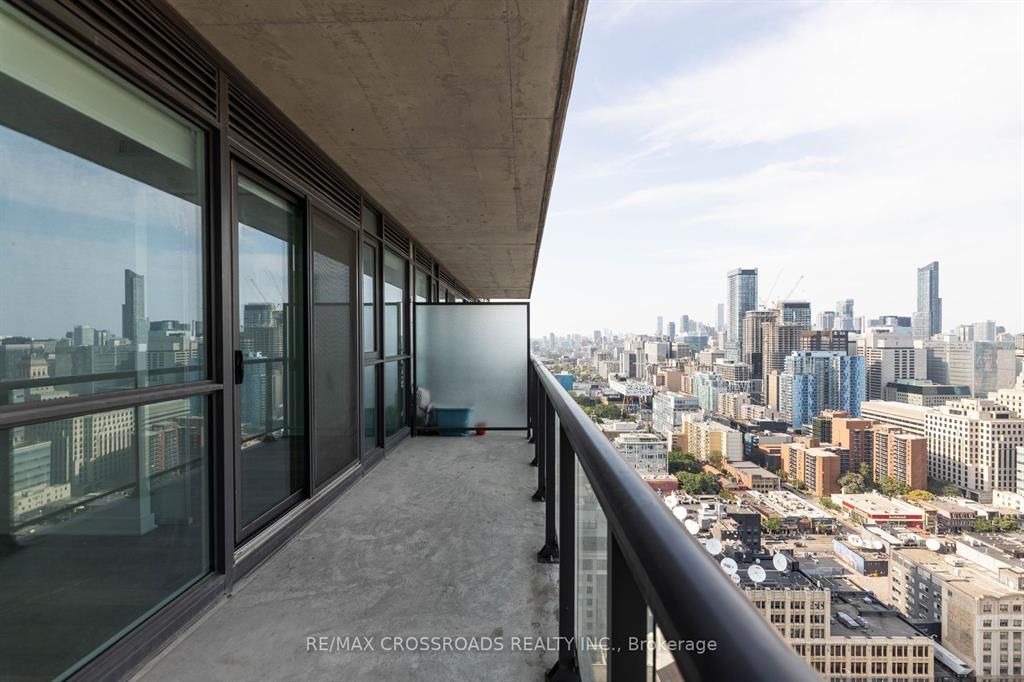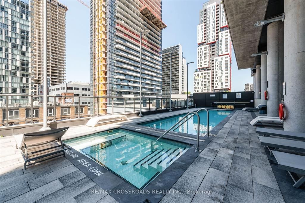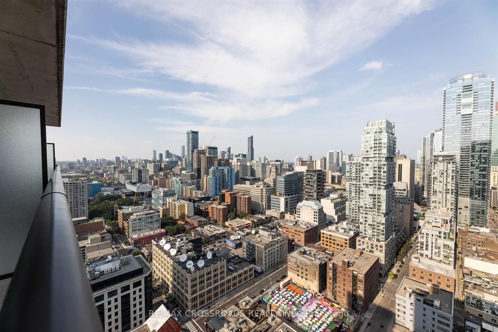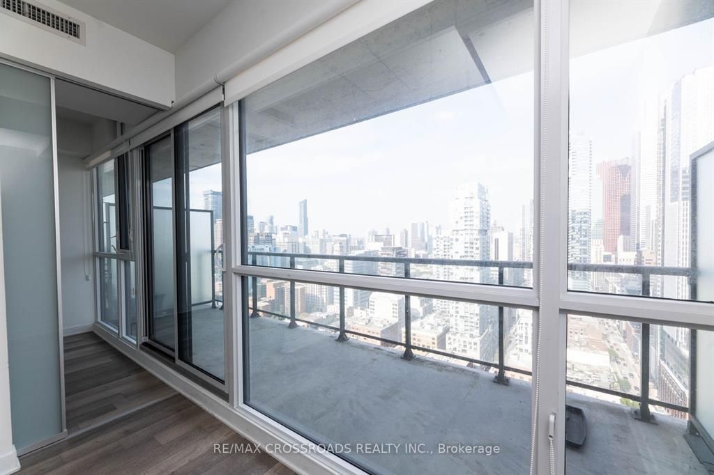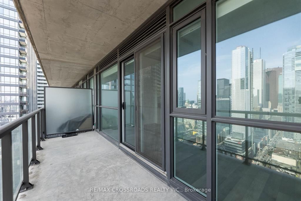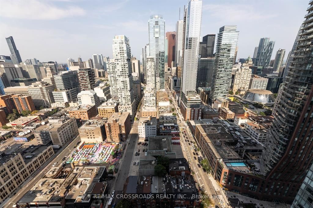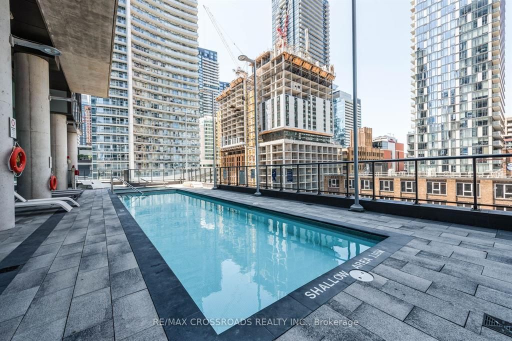 Location ! Location ! Location ! Spacious & Practical 1+Den on a High Floor In The Heart Of Toronto Entertainment District....Floor to Ceiling Windows and a Walk Out to a Long Balcony that Spans the Width of the Unit.... Offering Breathtaking Clear & Panoramic Unobstructed East Views....Short walk to financial district. Steps to restaurants, bars, cafes, subway stations, PATH, Roy Thompson Hall, Theatres. Separate den -perfect home office.Excellent building amenities: gym, outdoor pool, sauna, rooftop deck & hot tub, virtual golf, billiard, lounge, party room.