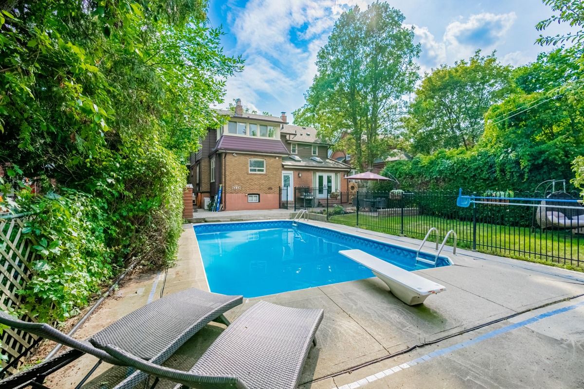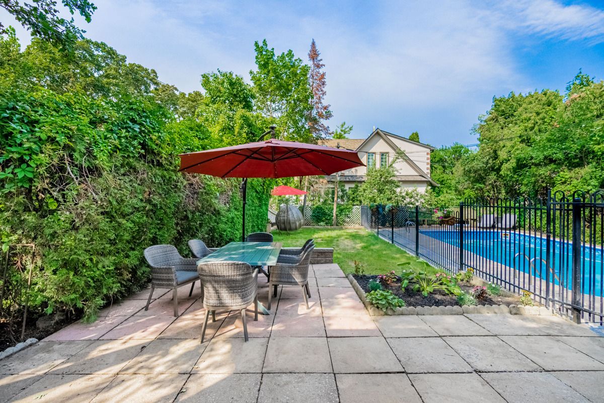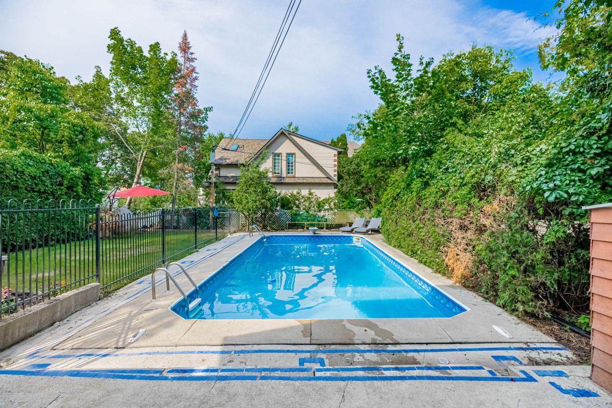 with its heated pool,BBQ area, and numerous relaxation zones await outdoors.The property also boasts a fnished two-bed basement with a