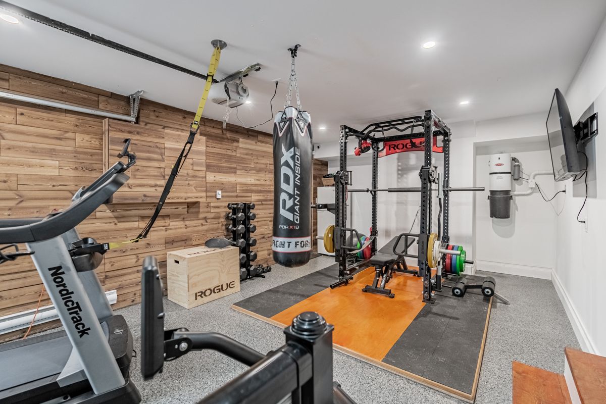 functional gym! Upstairs, spacious cozy bedrooms, large home ofce space and a full attic for storage a future kids playroom. This home simply