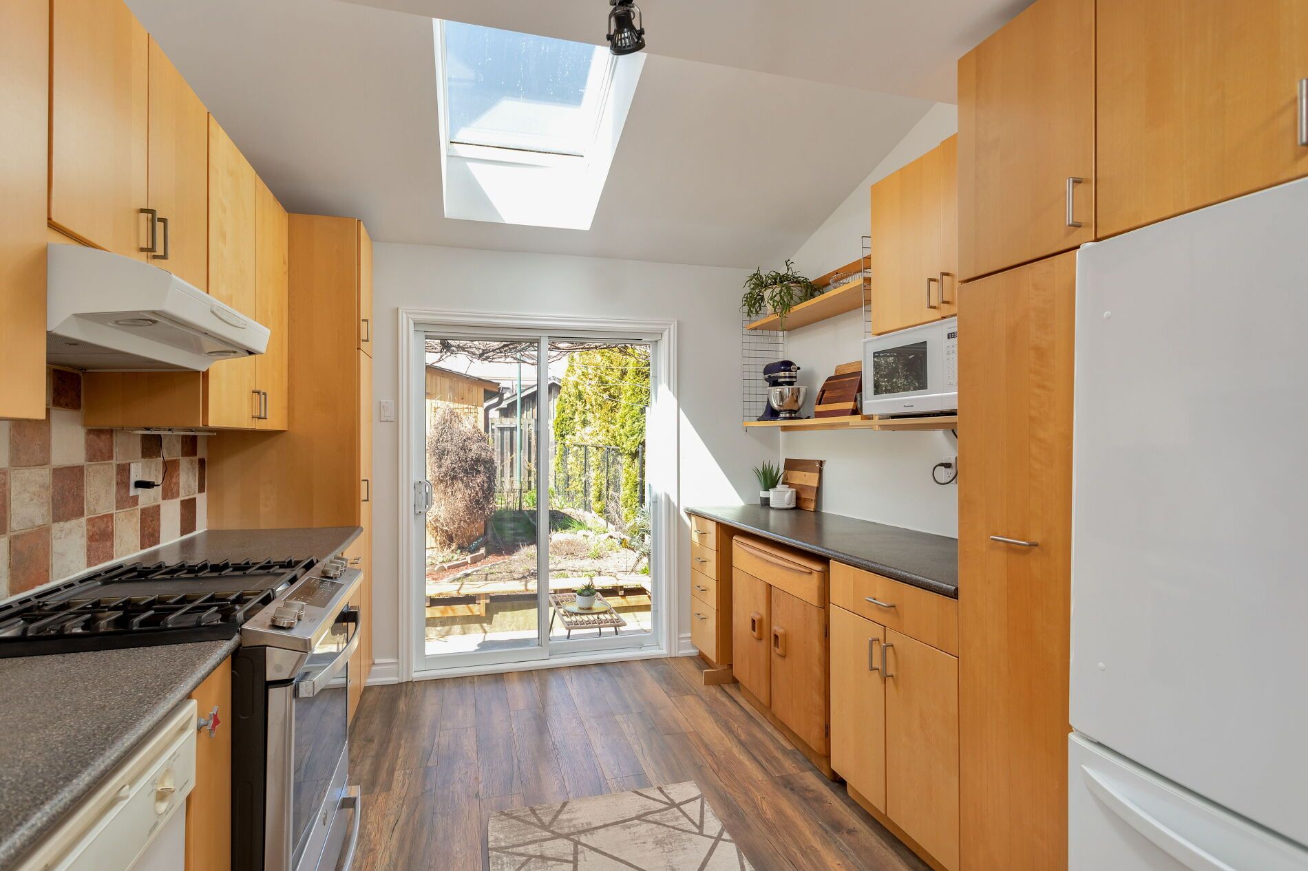 Welcome home! 30 Alameda greets you with a smile and places you smack dab in the middle of Oakwood village, a close knit community of quiet one way streets, where neighbours still say hello and ask how you're doing. Your new coffee hangout is sure to become Hunter Coffee (4.9 stars), and for quick bites you've got the legendary Randy's Patties. Nearby Cedarvale Park is a gem for residents and connects you to the broader ravine network. Arrive home to a classic front porch that entices you to slow down and linger for a while. Step inside to a free flowing interior that has its proportions just right. First to the kitchen, a generous space overlooking the back garden and illuminated by a skylight. There's plenty of room here to cook to your heart's content - no more meal prep collisions with significant others! Sit down to relaxed family meals in a dining area that comfortably accommodates your regular crew plus a few friends. The living room offers up good privacy, with views of the mature front garden and the playing field beyond. Walkout to a newly built deck and a cheerful backyard with a variety of perennials, vegetable plants, and a sizable shed. Upstairs you'll find a well proportioned principal bedroom alongside two additional versatile bedrooms and a nicely updated bathroom. The basement has good ceiling height and a full additional bathroom for guests or family. With no neighbours across the street - there's a big open field - street parking is a breeze and the sightlines are clear. Both Leo Baeck and JR Wilcox are an easy walk along quiet neighbourhood streets. Biking and transit are both a breeze, with dedicated bike routes taking you all the way downtown. The Line 1 subway - Eglinton West station - is also a pleasant walk in under 15 minutes. Freshly painted and well maintained, 30 Alameda offers up all the best of urban Toronto living with a true family friendly community and an abundance of local shops and hangouts to discover.