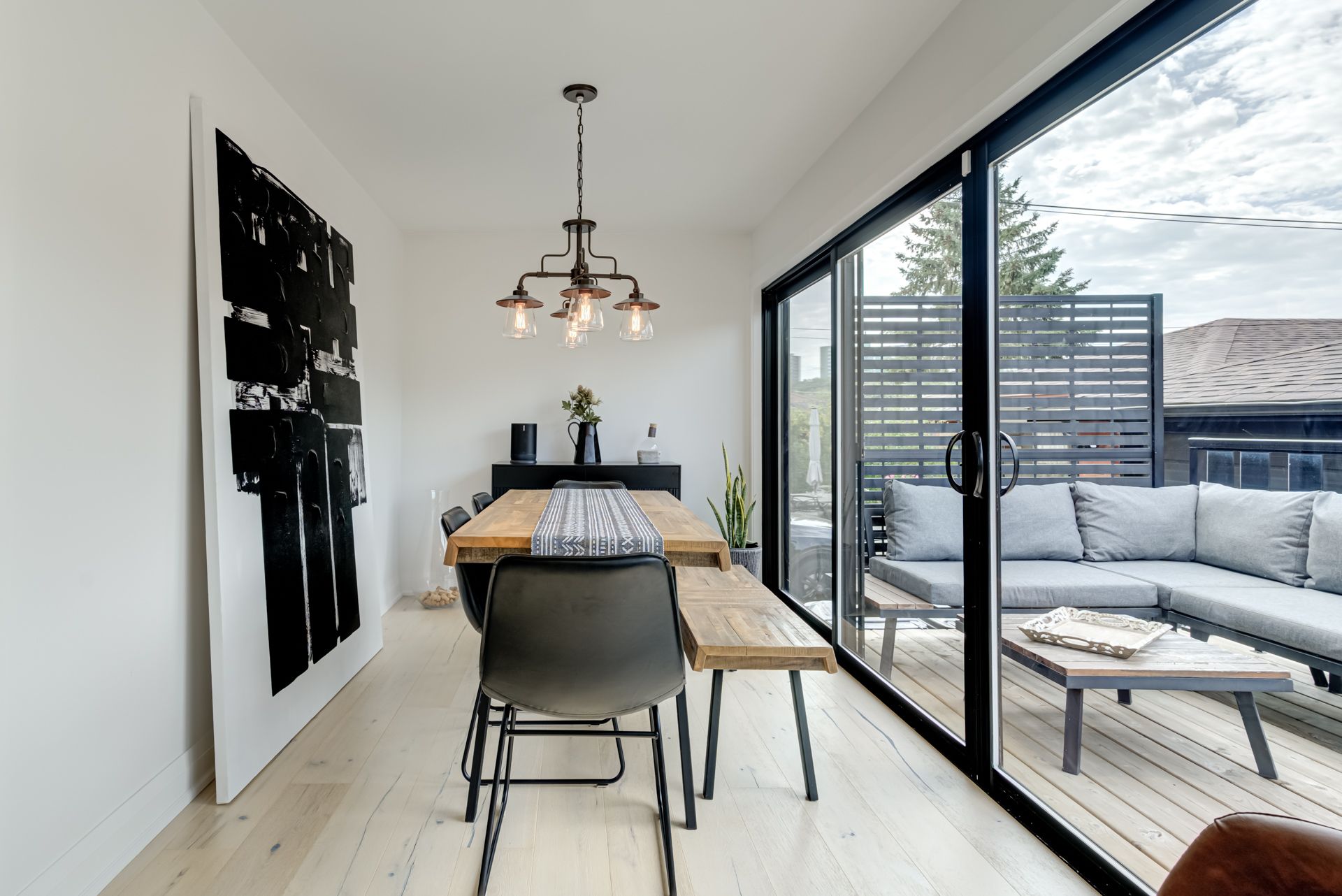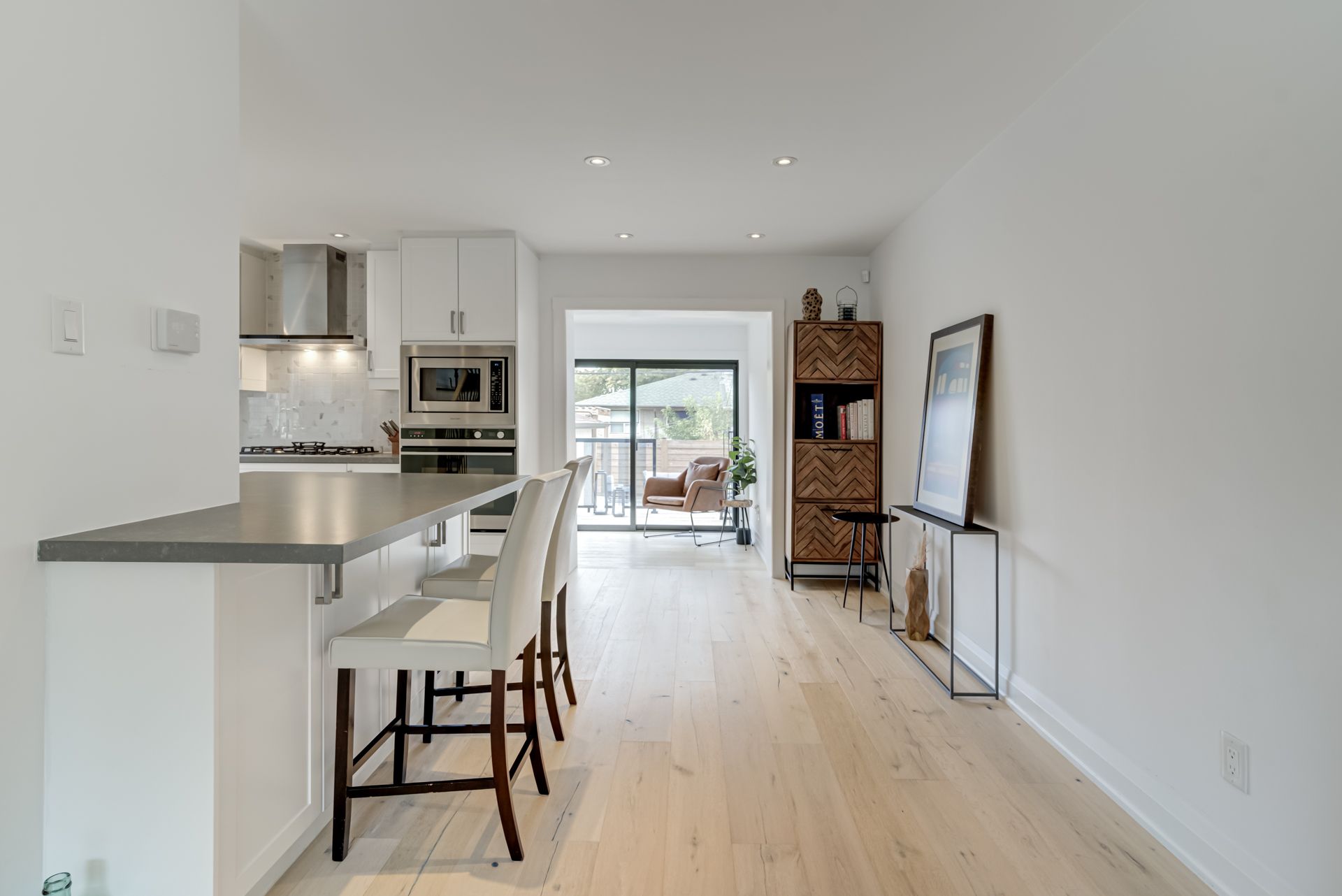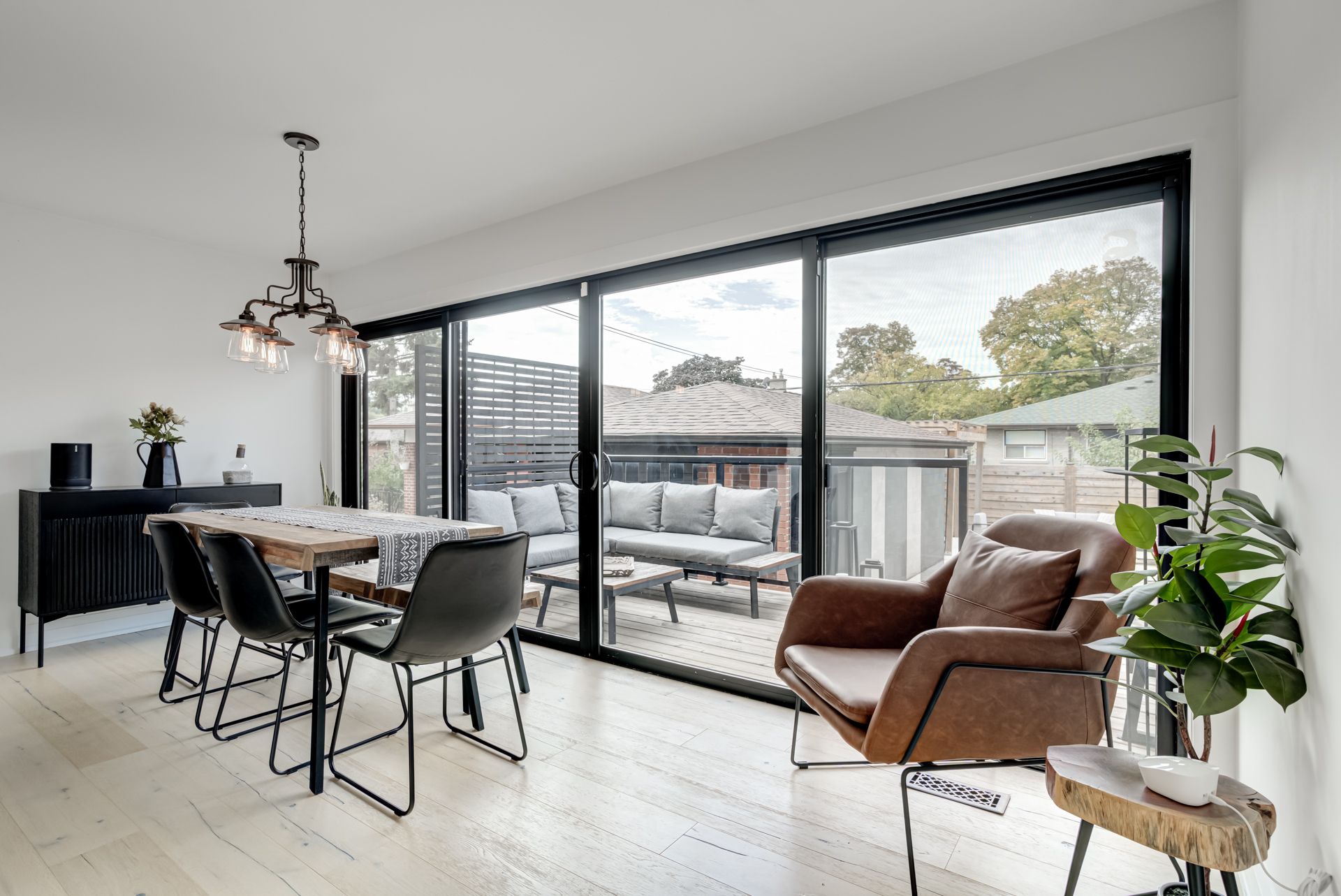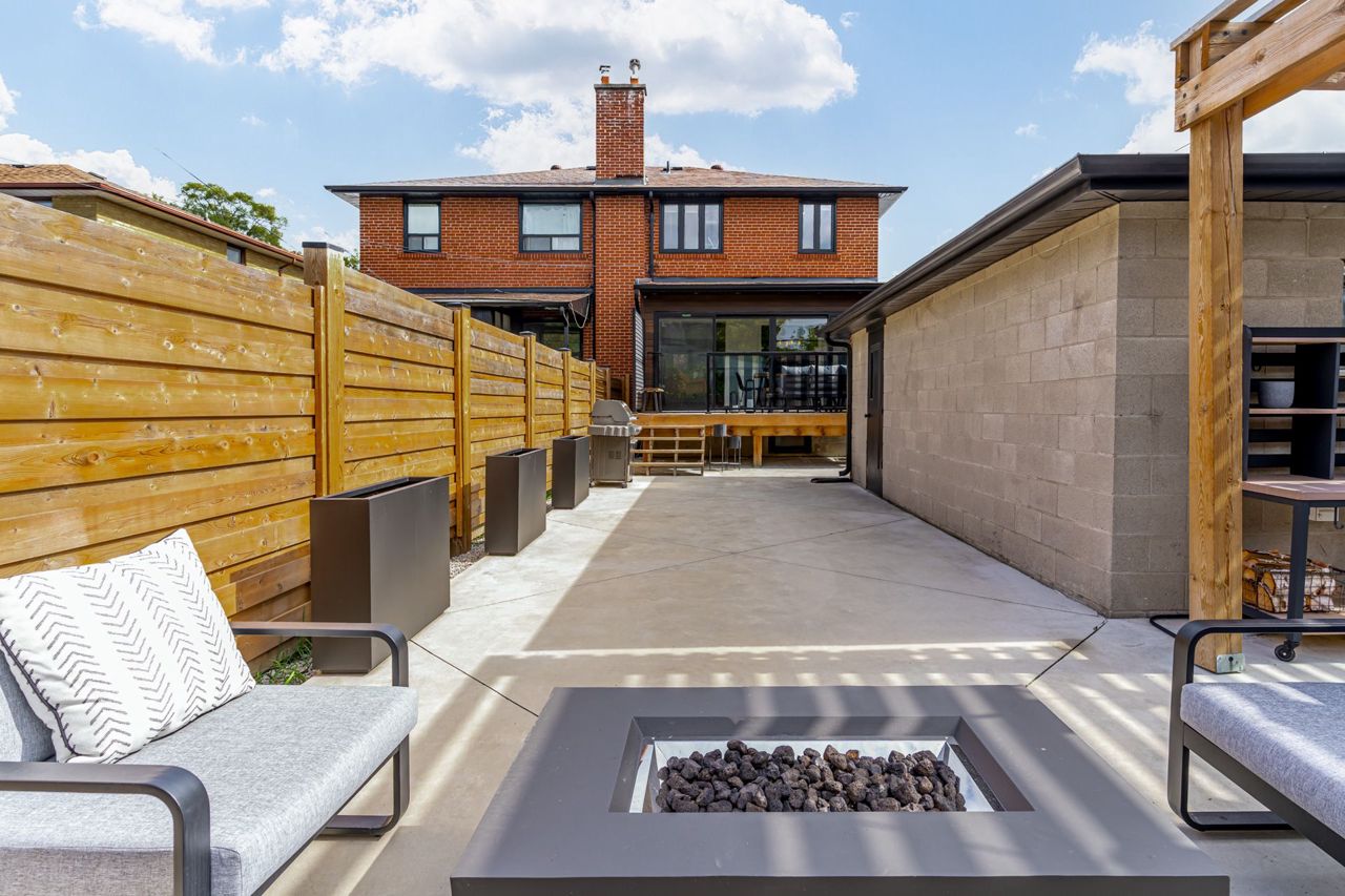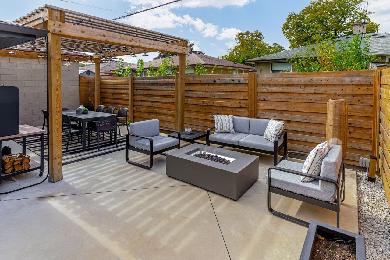 Gatherings Under a Pergola. Beautiful Modern Hardwood Flooring On Main, Pot lights Throughout,