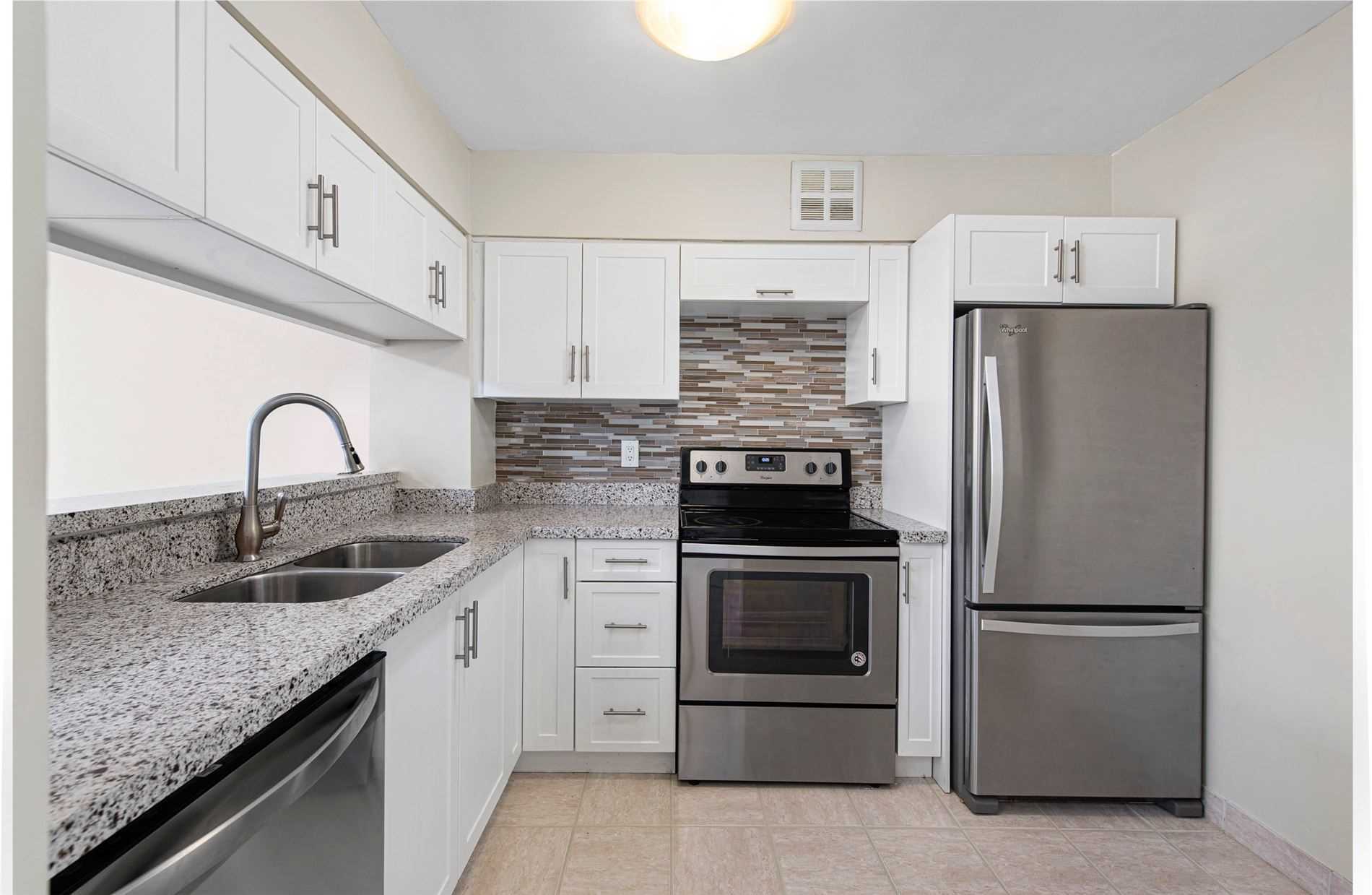 Porcelain Floor Stainless Steel Appl Granite Counter