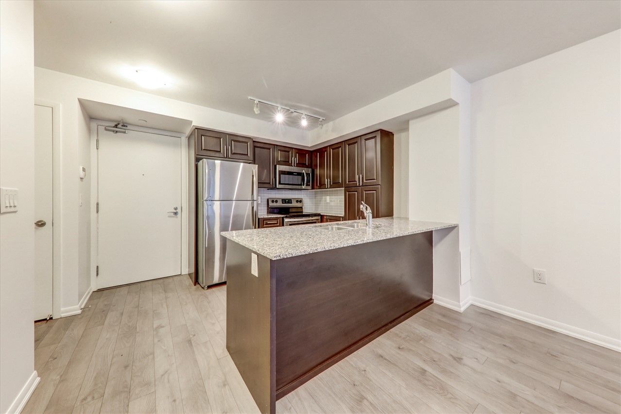 Welcome to the bright & spacious unit with the open concept design kitchen, large balcony to walk in to enjoy the view. The unit features one bed + den, full bath, ensuite laundry, laminate floor throughout, large windows to look out. Minutes from park, shopping mall, Yorkdale mall, transit, school.