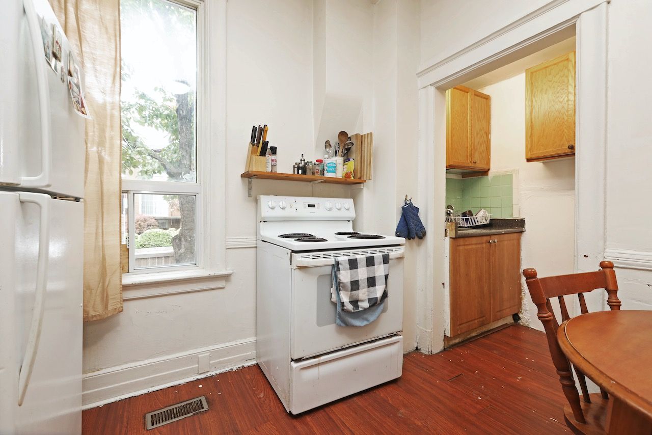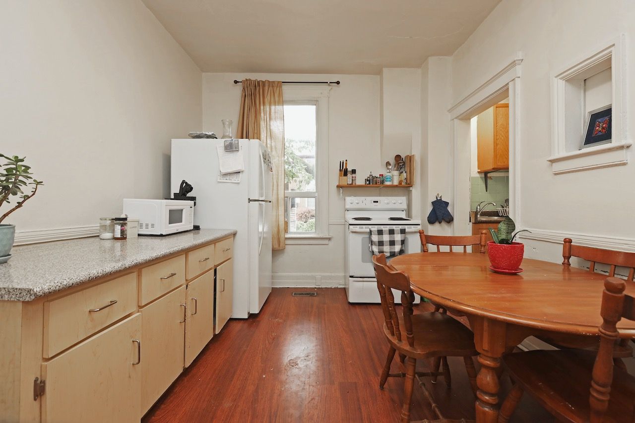 conversion with a second front entrance and second staircase to the upstairs to convert to a duplex! Street parking permits available.