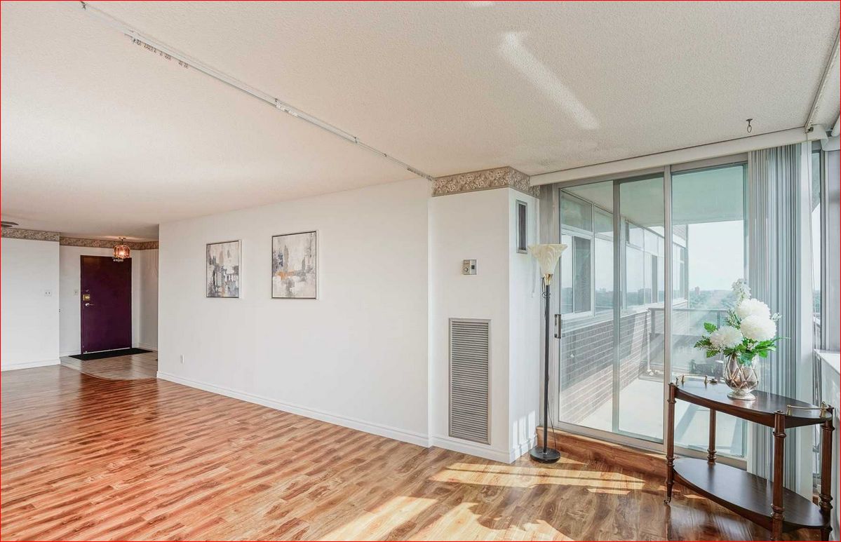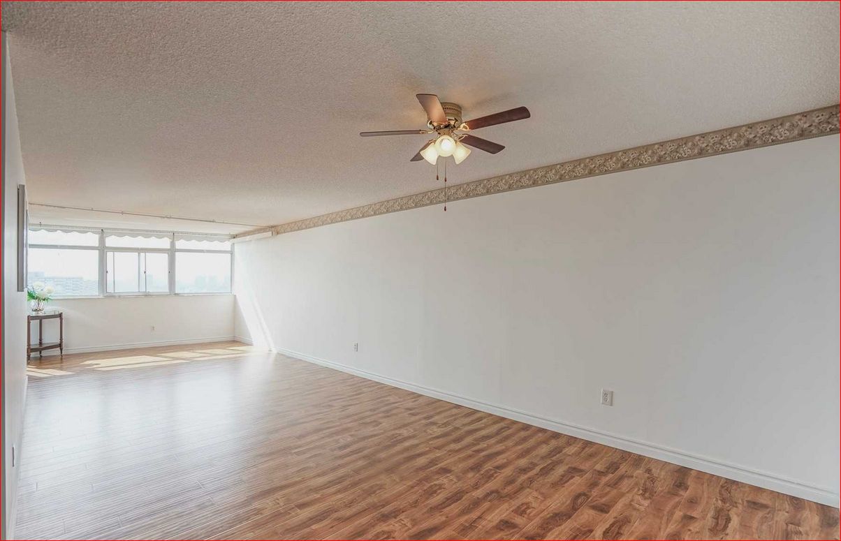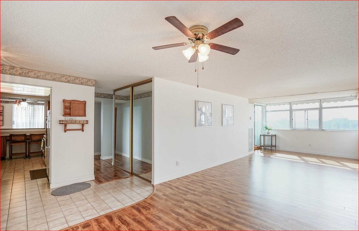 Tridel Built, One Of The Largest Corner Unit, 2 Bedrooms + Den, 2 Washrooms, 1450 sqft. South And West Exposure, Super Bright, Clean And Spacious. Sensational Views From 2 Big Balconies. Large Open Concept Living Room. New Quartz Countertop (2021), New Laminate Floor (2019). Large Den Can Be Third Bedroom. 2 Incredible Exclusive Parking Spaces Included. Heat, Water, Hydro, Cable Tv, Cac, Building Insurance, Parking And Common Elements All Included With Maintenance Fee! Glorious Sunsets, Fireplace. Easy Lifestyle With Ttc Steps Away And Shopping Mall Just Across The Road. Minutes to Hwy 401, Dvp, Or 407. Plenty of Storage, Fantastic Amenities And Location, Must See!Stove, Fridge, Dishwasher, Washer, Dryer, Hood Fan, Fans, All Electric Lighting Fixtures And All The Window Coverings Are Included.