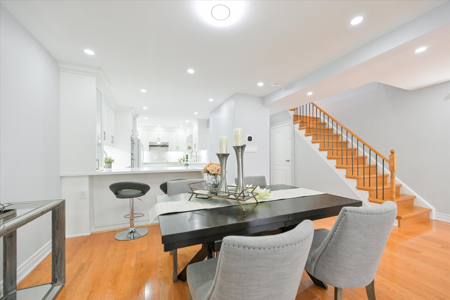 保养良好,大量翻新,位于Scarborough便利地段的免地税单元联排别墅,靠近大部分便利设施。明亮实用的布局。宽敞的起居室/家庭活动室配有落地窗、壁炉和可通往后院的步出式门。独立的用餐室。硬木地板。开放式概念厨房,配有花岗岩台面和早餐吧。较新的电器。二楼有4间卧室。巨大的主卧室配有三件套浴室。独立的入口地下室装修完毕,有2间卧室、一间厨房和一间三件套浴室。新车库门。几分钟即可到达公共交通、商店、餐馆、公园、学校等。非常适合首次购房者。所有现有电器灯具及窗帘,冰箱,炉灶,嵌入式烤箱,微波炉和洗碗机,地下室炉灶,2台洗衣机,1台烘干机,中央空调,中央吸尘器,燃气炉,车库门开启器及遥控器。