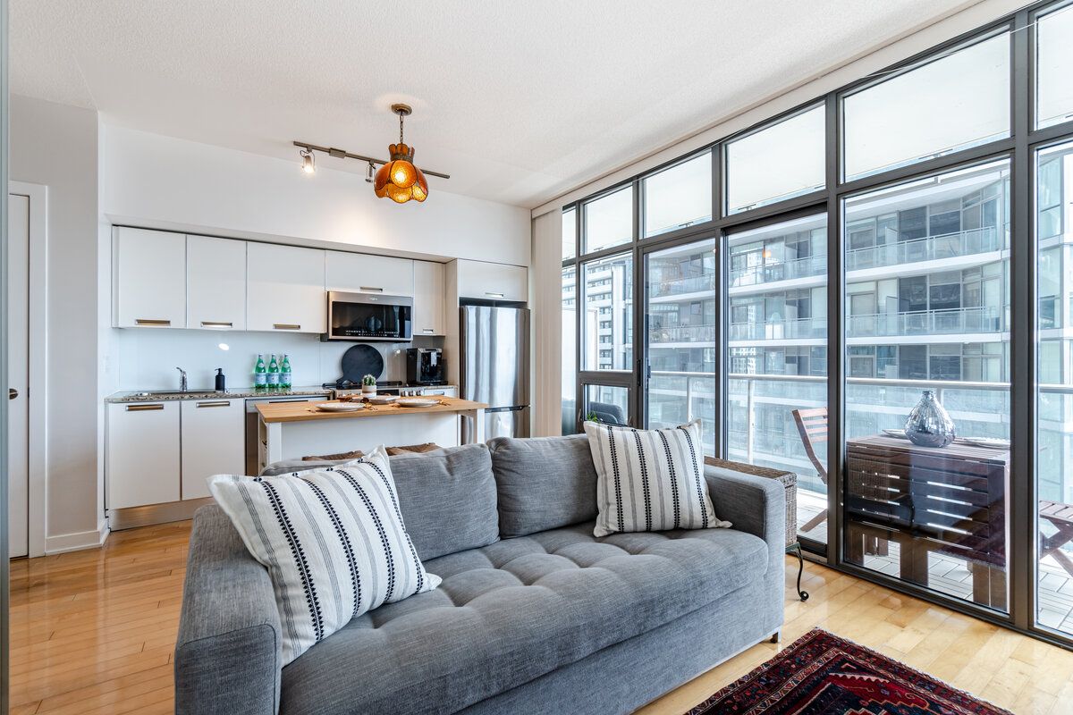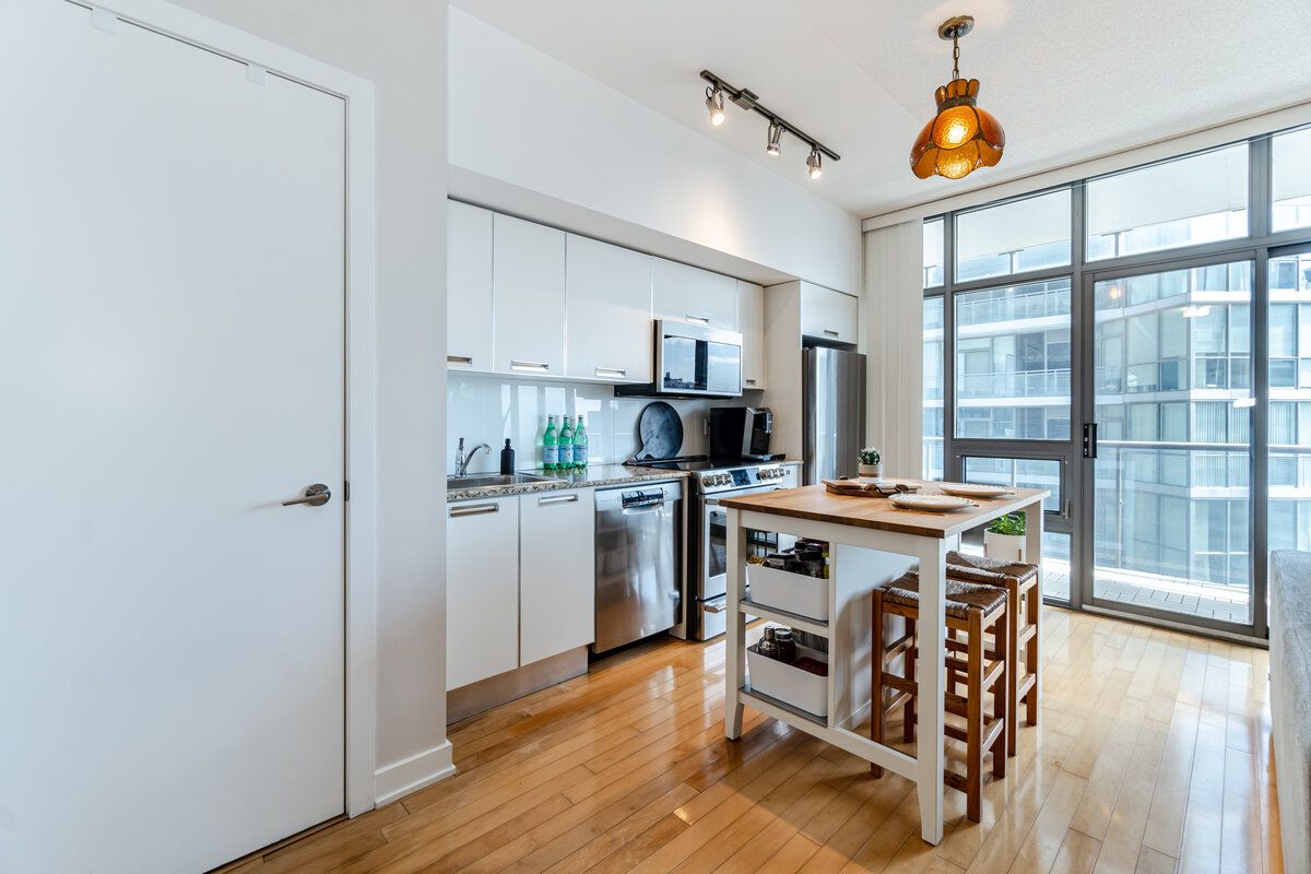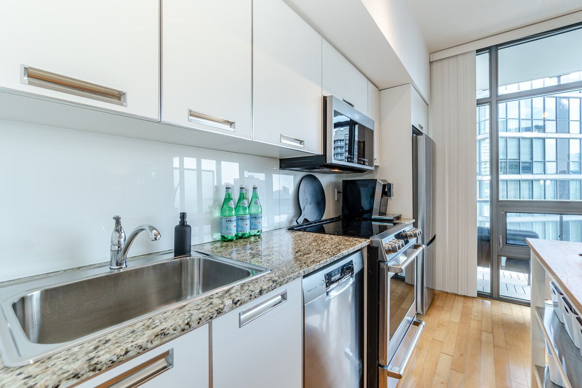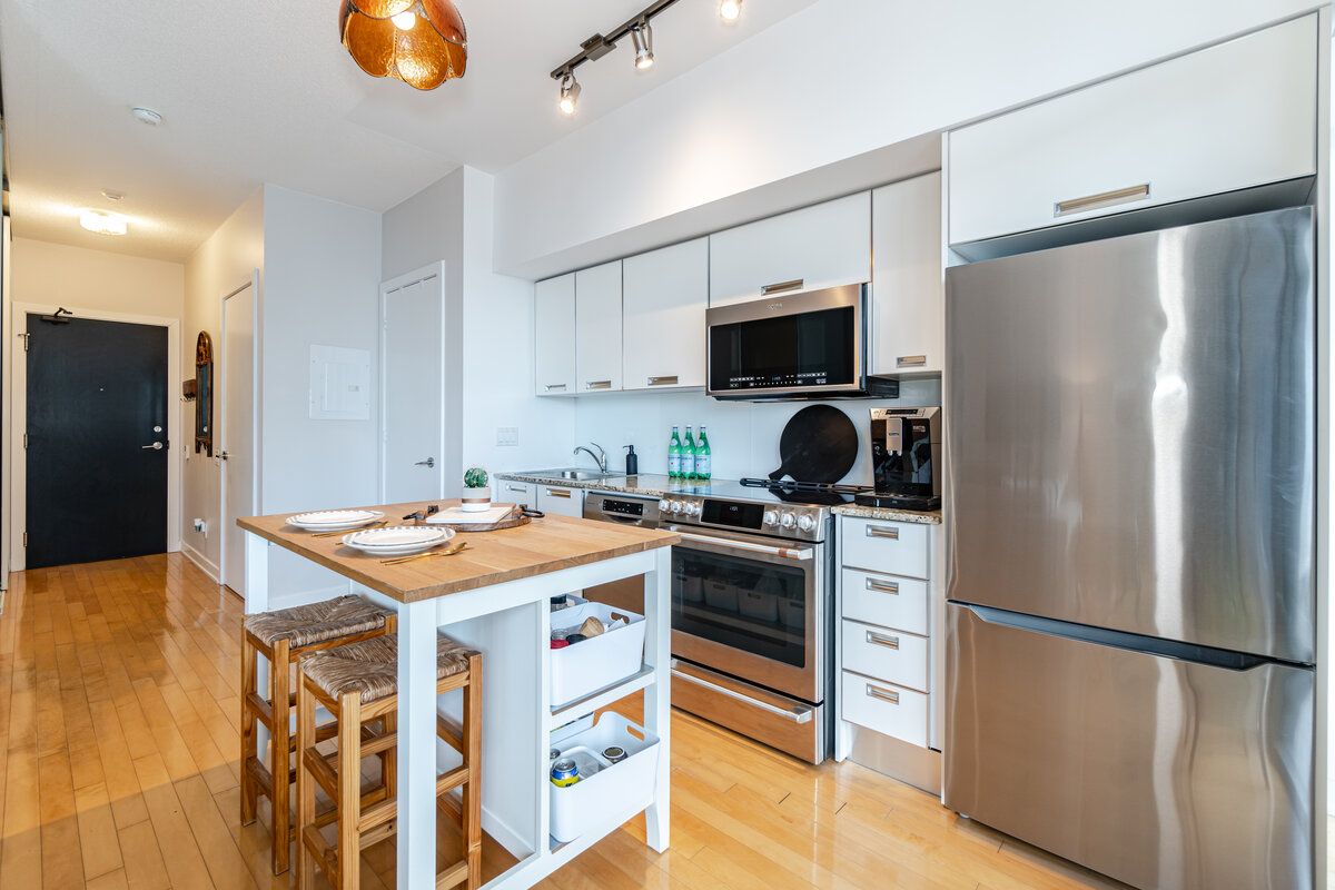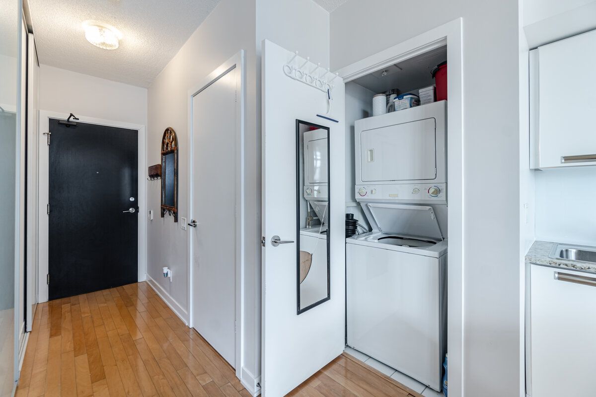 Welcome To 33 Charles St. E. #1602. This Tranquil Condo, Gives A Feel Of An Extraordinarily Spacious Condo. Huge Floor To Ceiling Windows Allow Ample Natural Light To Flow Throughout The Day. Spend Time Cooking In This Modern Kitchen And Overlook The Living/Dining Area And Glimpse At The Large Balcony To The Side. Hardwood Floors Throughout The Main Floor Excluding The Primary That Has Broadloom. Cleverly Designed To Practically Integrate Living, Working, Dining And Sleeping Areas. Very Large Sliding Closet In The Primary With Organized Shelving. This Chic Suite Is Perfect For Entertaining 10 Guests Or Simply Relaxing Alone. Equipped With A Modern White Kitchen,W/Granite Counters,Stainless Steel Appliances, The Efficient Kitchen Has Plentiful Cabinetry And A Very Generous Dining Space. Hardwood Flooring, Tons Of Storage, Floor To Ceiling Window Wall And A Large Balcony With Wood Tile. All Of This + A 99 Walk-Score + Outstanding Amenities + Low Maintenance Fees = An Impeccable New Home.Inclusions: High End Stainless Steel (Fridge W/Freezer, B/I Stove, B/I Dishwasher, B/I Microwave) Stackable Washer & Dryer; Electrical Light Fixtures Except Exclusions. Kitchen Island If Interested. All Custom Window Coverings.
