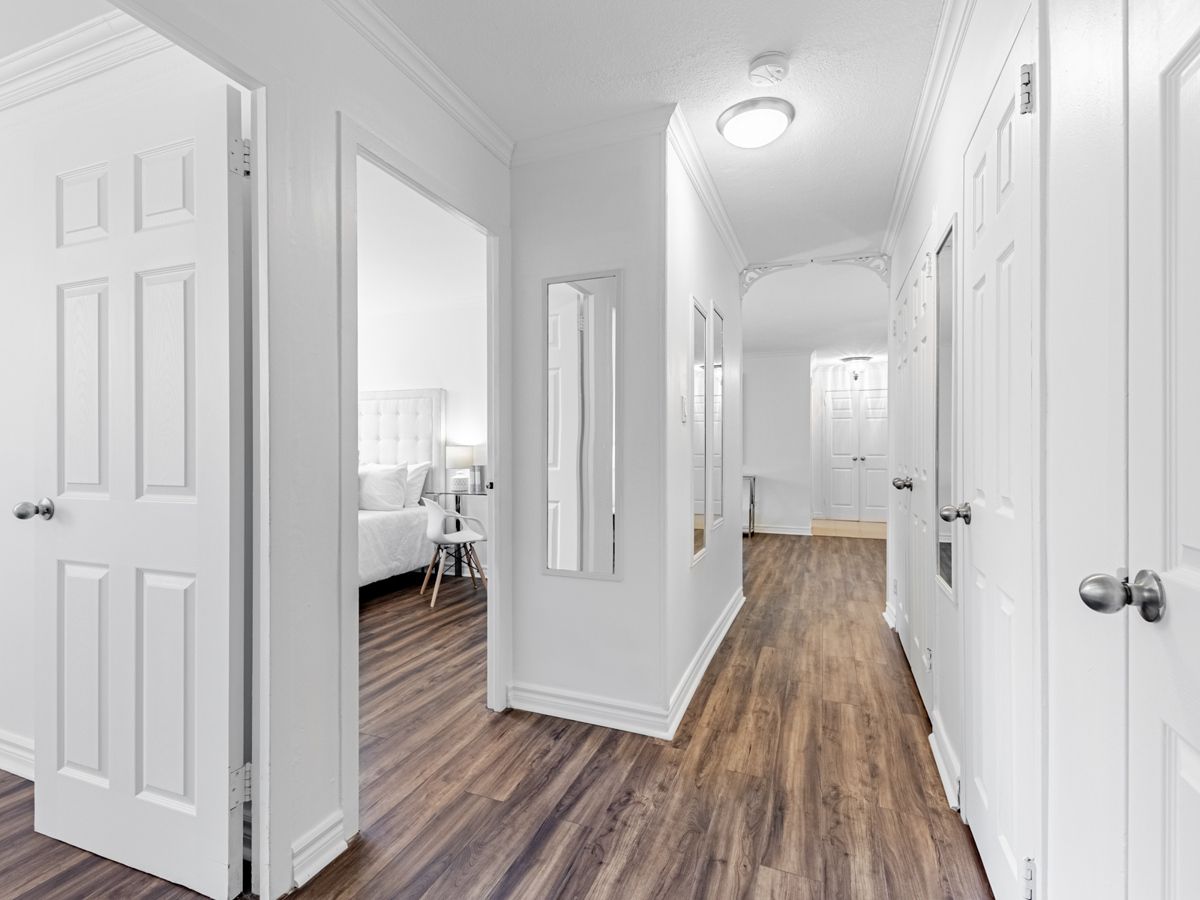 INCREDIBLE VALUE FOR THIS BRIGHT & SPACIOUS, FRESHLY PAINTED SCARBOROUGH BLUFFS FAMILY NEIGHBOURHOOD CONDO. A STONES THROW FROM THE BEAUTIFUL DOROTHY MCCARTHY WATERFRONT TRAIL. TTC AT YOUR DOOR, SHOPPING & SCHOOLS IN CLOSE PROXIMITY. THIS IS A WELL MAINTAINED AND MANAGED BUILDING WITH LOVELY OUTDOOR POOL, GYM AND SAUNA TO ENJOY. THE CONDO IS VERY WELL LAID OUT AND LENDS ITSELF TO ENTERTAINING. 2 GENEROUS BEDROOMS WITH GOOD SIZE CLOSETS AND EXTRA CLOSETS IN THE HALLWAY. THE BATHROOM HAS A WALK IN BATHTUB. ENJOY SUMMER EVENINGS ON LARGE SOUTH FACING BALCONY. LAUNDRY FACILITY ON MAIN FLOOR OF BUILDING. VISIT THE VIRTUAL TOUR: https://www.houssmax.ca/vtournb/h6935445PLEASE NOTE THE CONDO FEES INCLUDE HEAT, HYDRO, CABLE. FRIDGE & STOVE AND PORTABLE AIR CONDITIONER ARE IN AS IS CONDITION, ALL ELF'S.