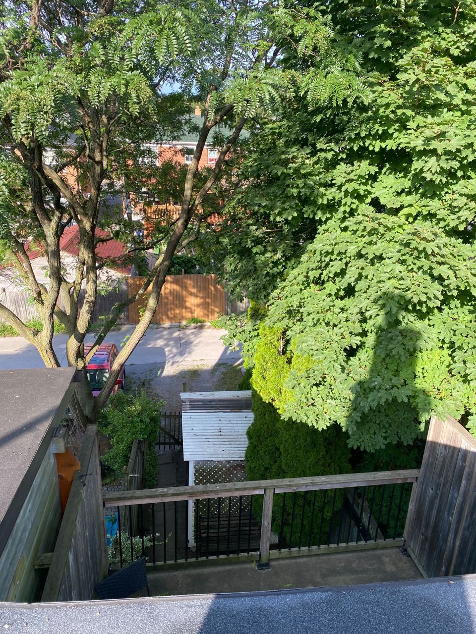 Small but packing a lot of punch. This property qualifies for additional laneway house build, conservatively adding about 250K in value! Numerous other development possibilities for this unique back-split semi; renovate, build up, build new or BUILD TWO! Through the front door is the main floor living room and large main bedroom with walk-out to upper deck. Lower level kitchen has a walk out to the laneway private 2 car parking and storage shed. Bright skylit loft with potential for walk-out deck. Existing home requires some upgrades, but works great as a condo alternative PLUS build laneway house - No Variance required and the city waives the development costs!See attached report indicating that this property qualifies for a Laneway House build, under Toronto's brand new Changing Lanes guidelines.