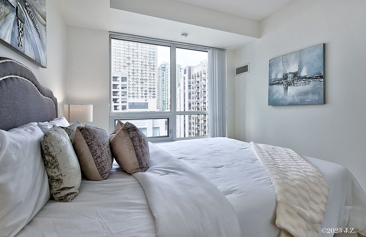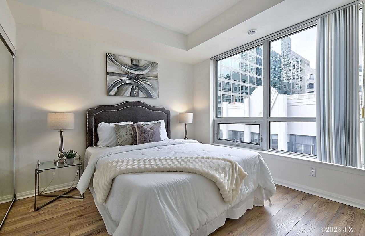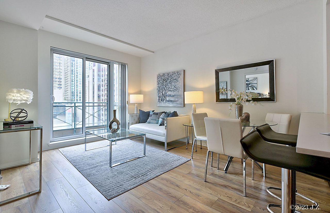 Discover luxury living in the heart of the vibrant Yonge/Bloor area with this exquisite 1-bedroom, 1-bathroom 535 sq ft + balcony condominium. Rare clearer view above opposing building & not looking at wall of windows. Boasting 9ft smooth ceilings and an abundance of natural light through floor-to-ceiling windows, this unit features wood flooring throughout, creating an elegant and inviting atmosphere. The open-concept living space seamlessly connects the kitchen, dining, and living areas, also the convenience of a 24-hour concierge, ensuring your security and peace of mind. Amenities including guest suites, visitor parking, a well-equipped gym, and an indoor pool. The location is unbeatable, with quick access to subway, high-end shopping, and fine dining options in the upscale Yorkville area. Additionally, it's within walking distance of the U of T, and major hospitals. Locker included.All Existing: Fridge, Stove, B/I Microwave/Hood Fan, B/I Dishwasher, Stacked Washer & Dryer, All Elfs. One Locker. Traditional layout kitchen with Island & Breakfast bar overhang. No small wall kitchen here.