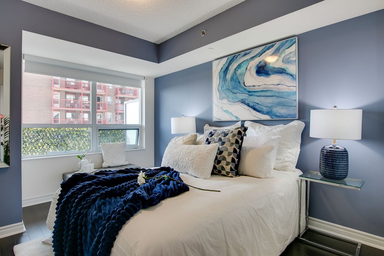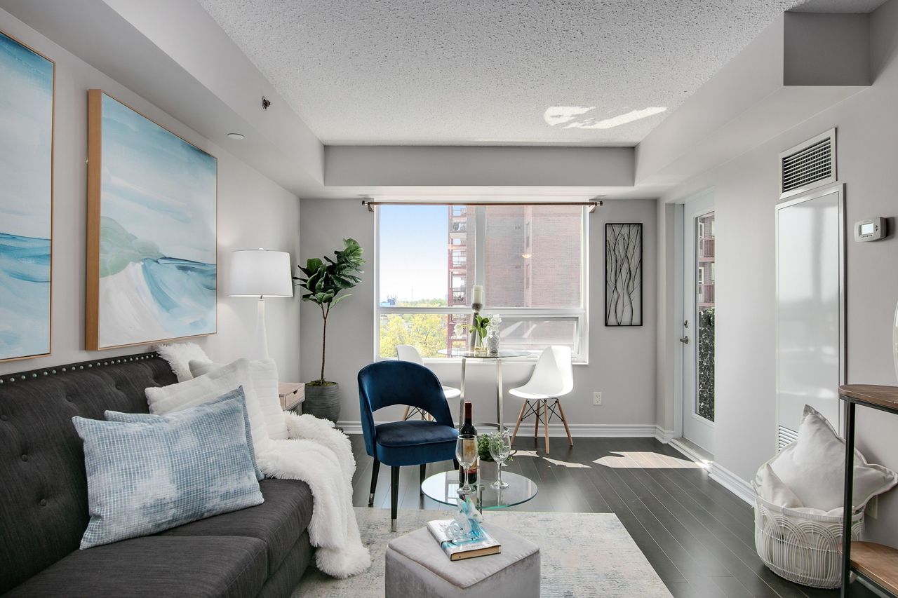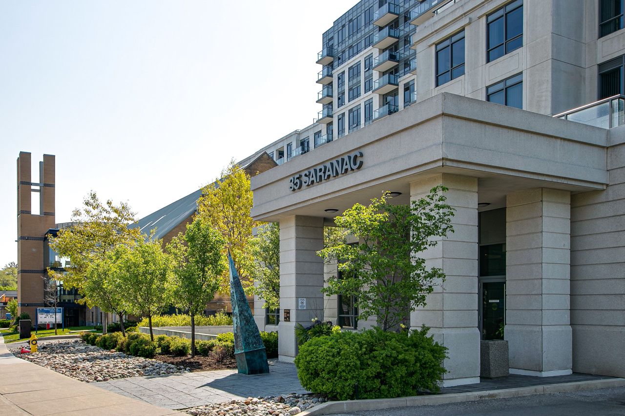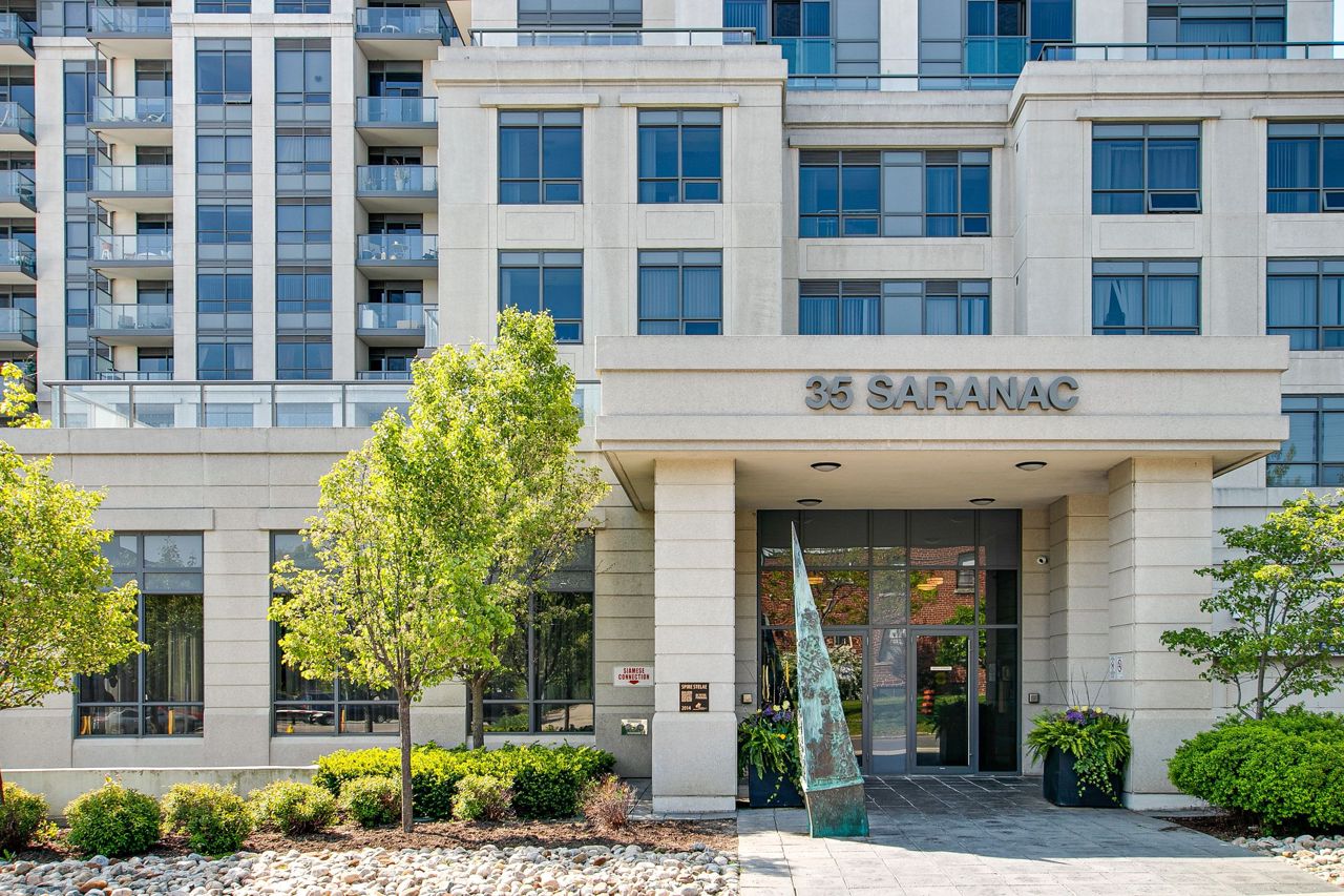 Welcome to Serenity on Saranac!! A very quiet and well maintained building in a fabulous neighbourhood. First time offered by it's original owner and trust me there are no disappointments with the pride of ownership. Well laid out with no wasted space. Lrg primary bdrm with full W/I closet. Separate open concept den perfect for a home office, child's room or reading nook. Laminate flooring through out with a cozy south facing balcony for morning coffee or dinner and evening cocktails. Everything within mins walking distance including TTC, 24 hr groceries, Shopper's, Winners, LCBO, the list goes on. Easy highway access or short trip downtown to a game or concert.Building offers great amenities including a gym, party room, visitor parking and a rooftop terrace with BBQ's!