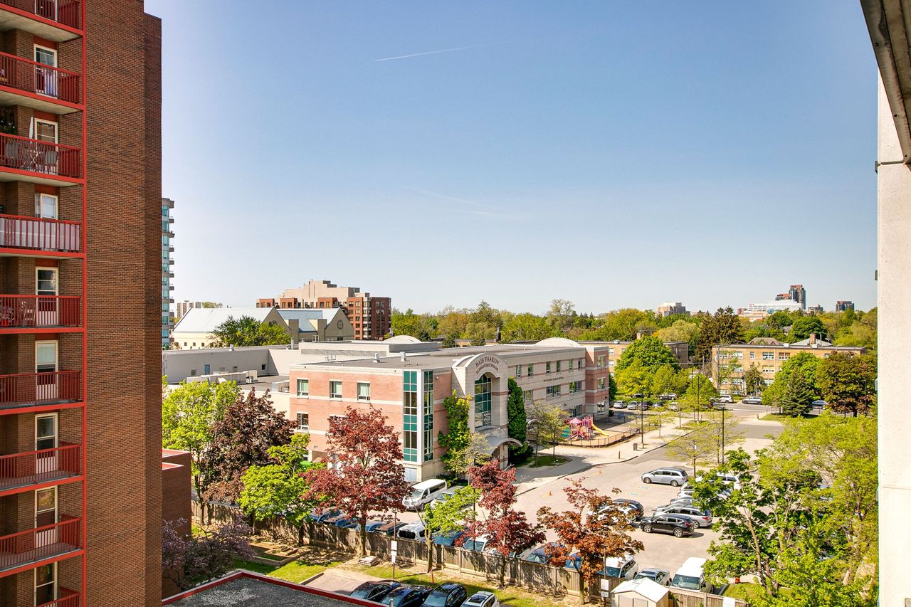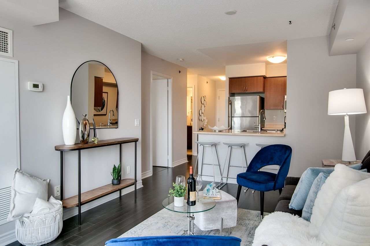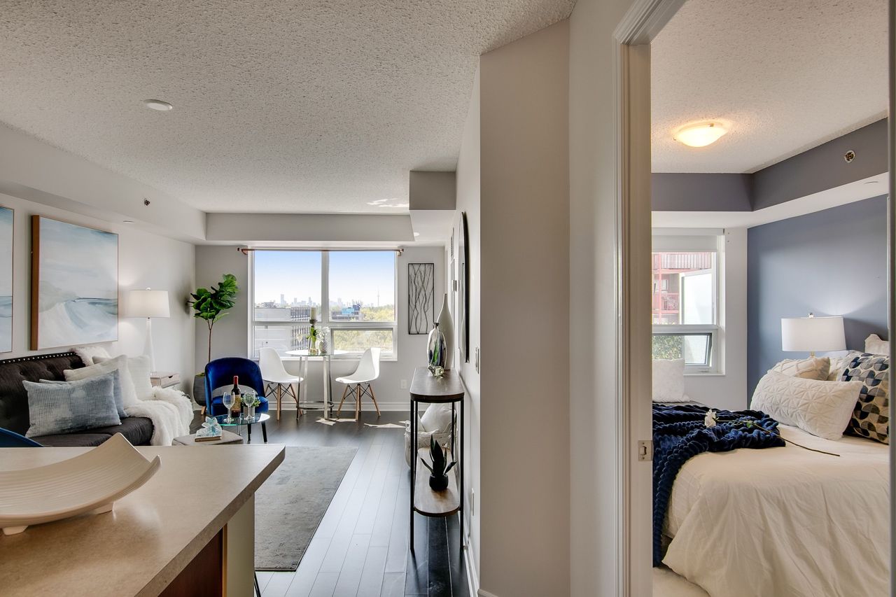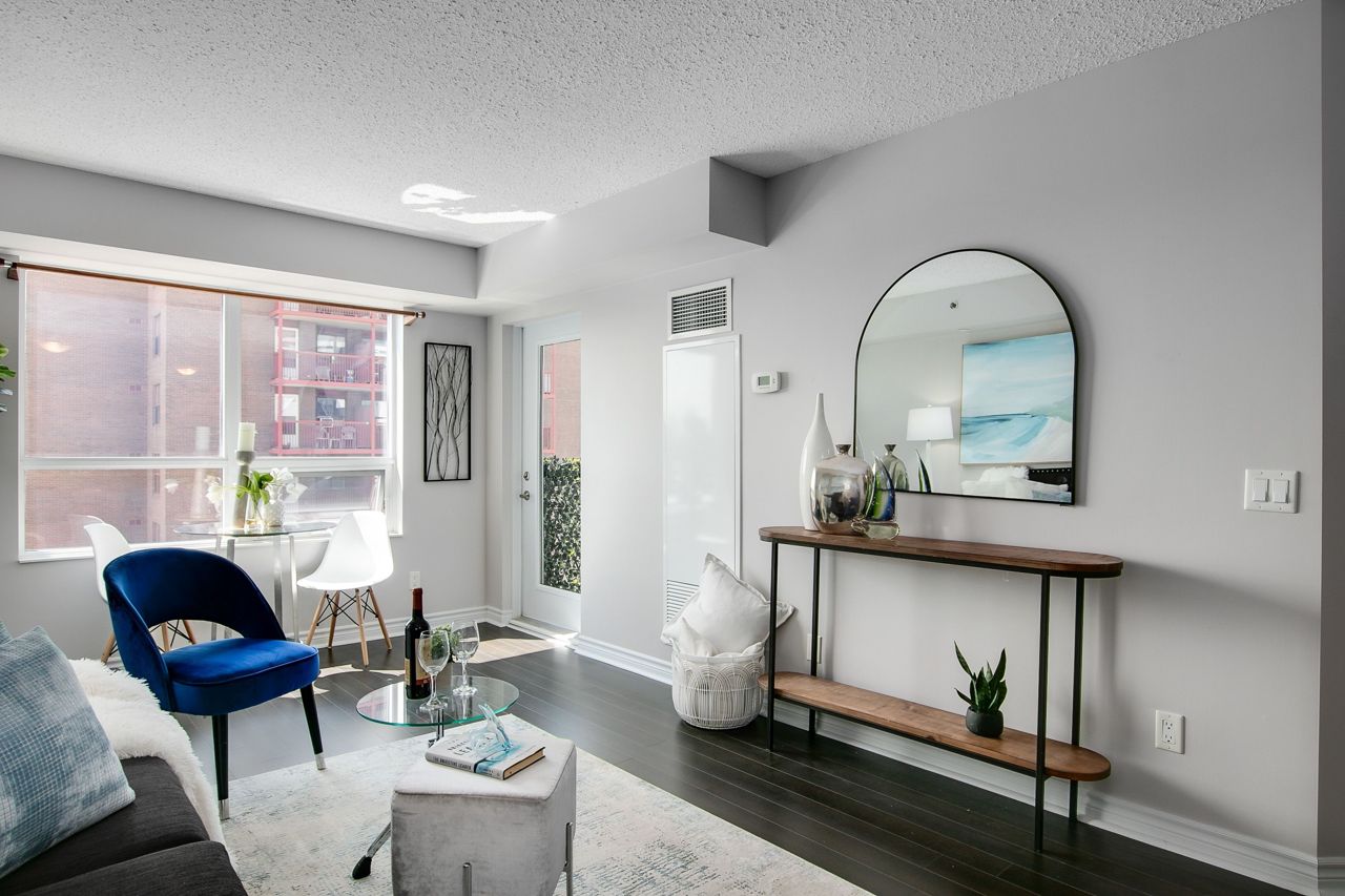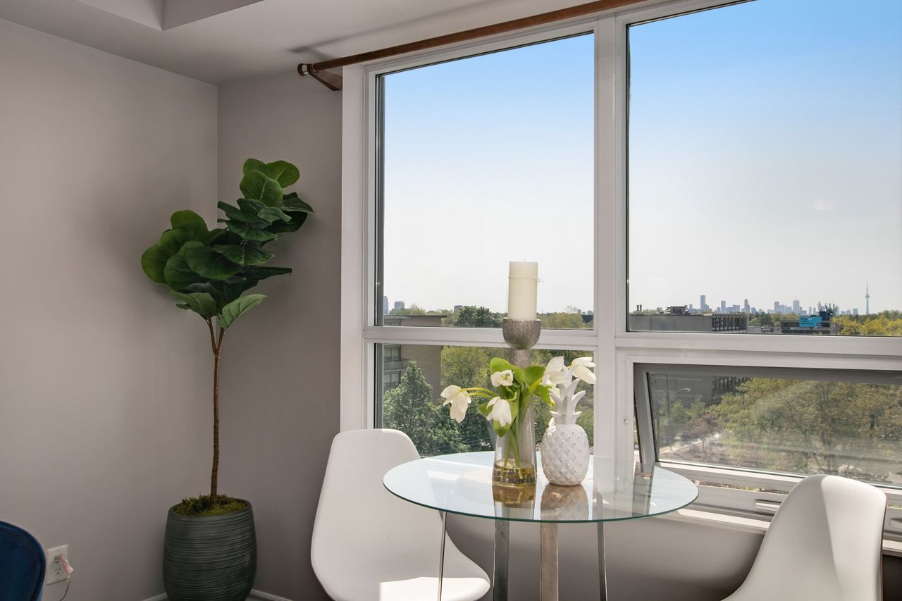 Welcome to Serenity on Saranac!! A very quiet and well maintained building in a fabulous neighbourhood. First time offered by it's original owner and trust me there are no disappointments with the pride of ownership. Well laid out with no wasted space. Lrg primary bdrm with full W/I closet. Separate open concept den perfect for a home office, child's room or reading nook. Laminate flooring through out with a cozy south facing balcony for morning coffee or dinner and evening cocktails. Everything within mins walking distance including TTC, 24 hr groceries, Shopper's, Winners, LCBO, the list goes on. Easy highway access or short trip downtown to a game or concert.Building offers great amenities including a gym, party room, visitor parking and a rooftop terrace with BBQ's!