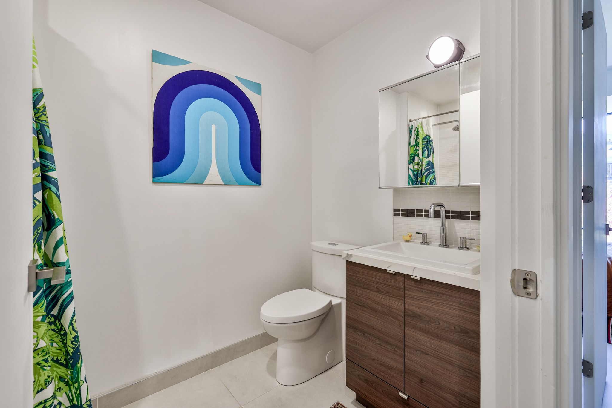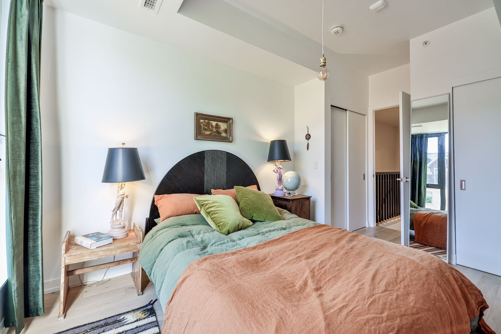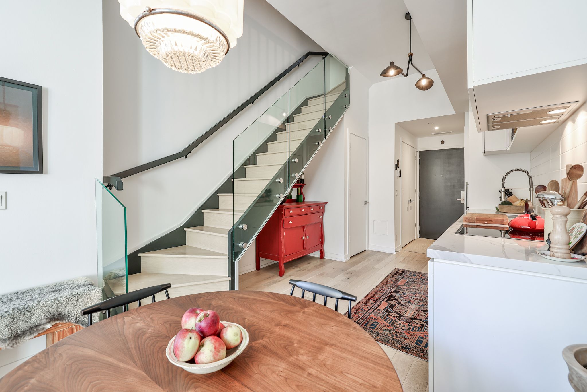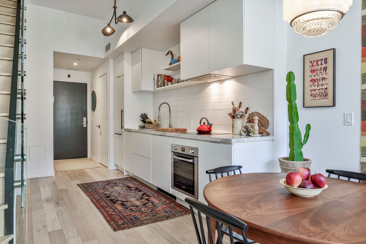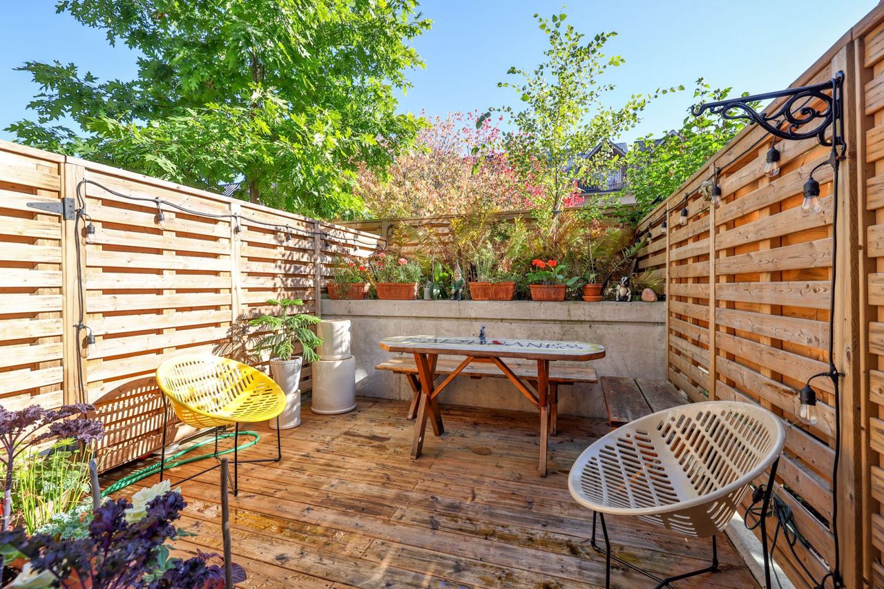 A modern, open concept, townhome style space with towering ceilings. Contemporary white oak & glass staircase. Main floor powder room. Gourmet inspired galley kitchen with classic white cabinetry, integrated appliances, quartz counters & stylish open shelves. Clever storage thru-out. Fabulous, 841 sqft + 172 sqft patio nestled within a tiered, lush garden. A secluded outdoor private oasis drenched in sunlight offers an urban retreat. East facing Principal bedroom overlooking the garden below is a restful retreat with white oak floors & two double closets. Spa inspired spacious 4pc washroom with soaker tub. Second floor den offers lots of versatility for home office, guest/second bedroom, or calm & quiet meditation space. Convenient second floor laundry. Garage parking included. This home has been meticulously maintained by the original owner & never used as a rental property.Steps to Sorauren Park & Fieldhouse, Farmers Market, Roncesvalles Restaurants & Local Shops. Quick Hwy Access. Easy TTC: 501, 504, 505, 506 Streetcars + Dundas W Subway (Line 2) & UP Express.