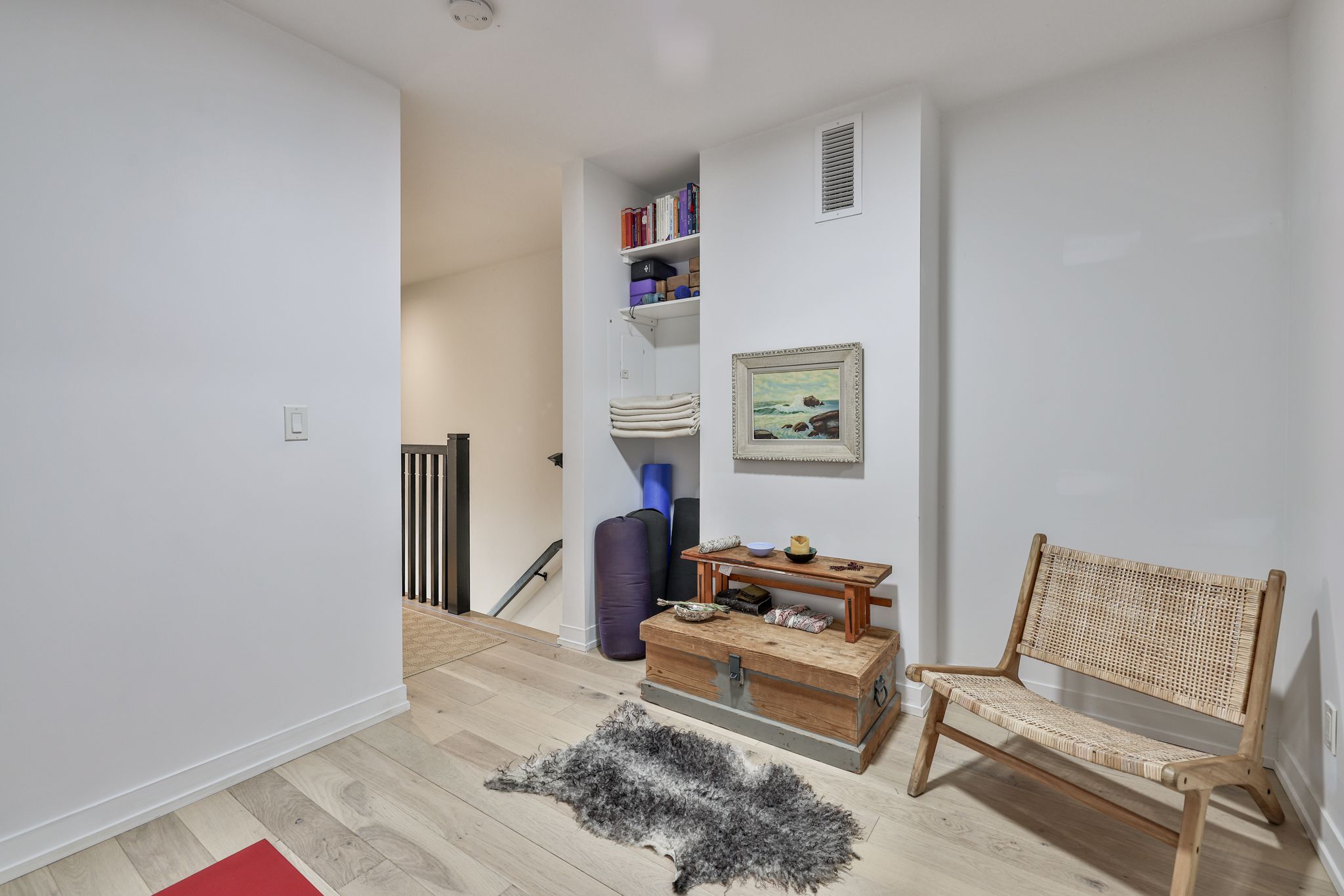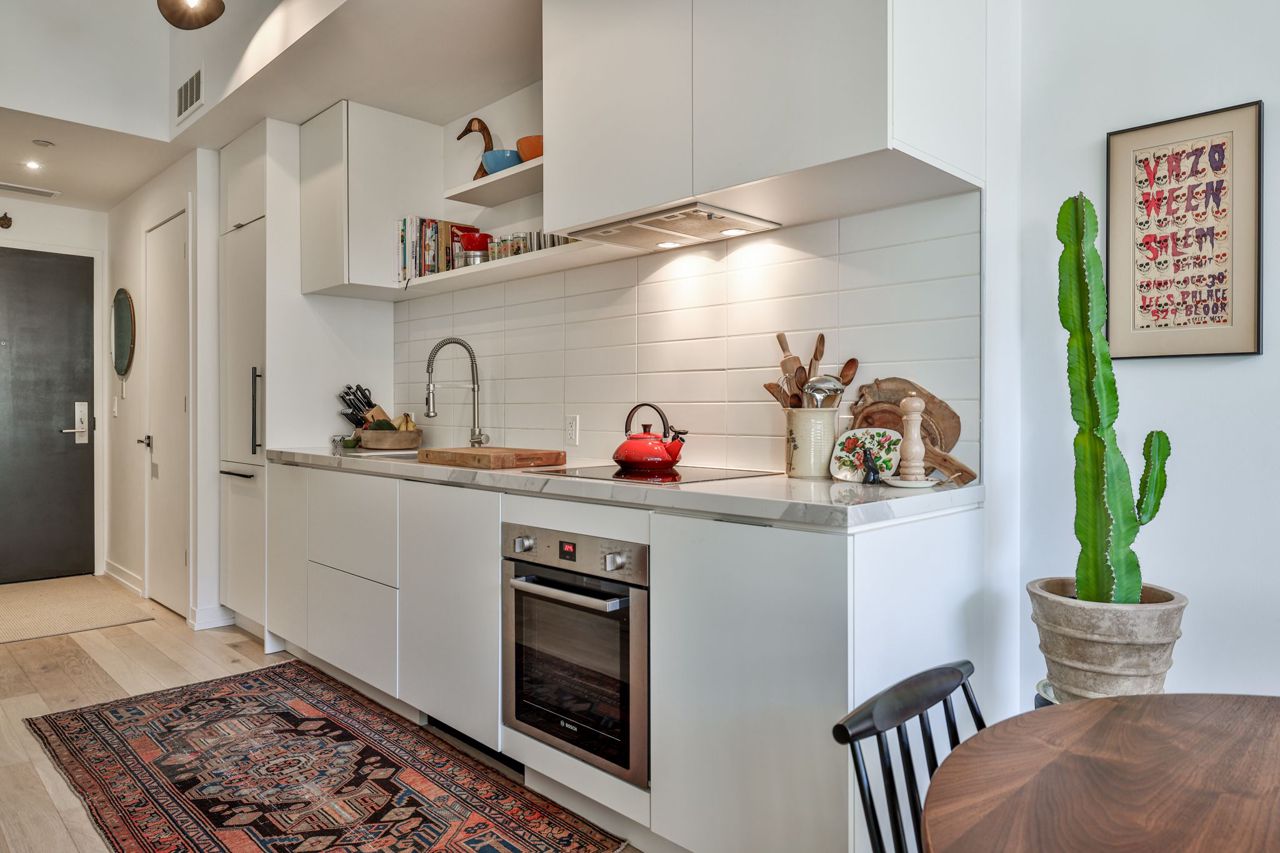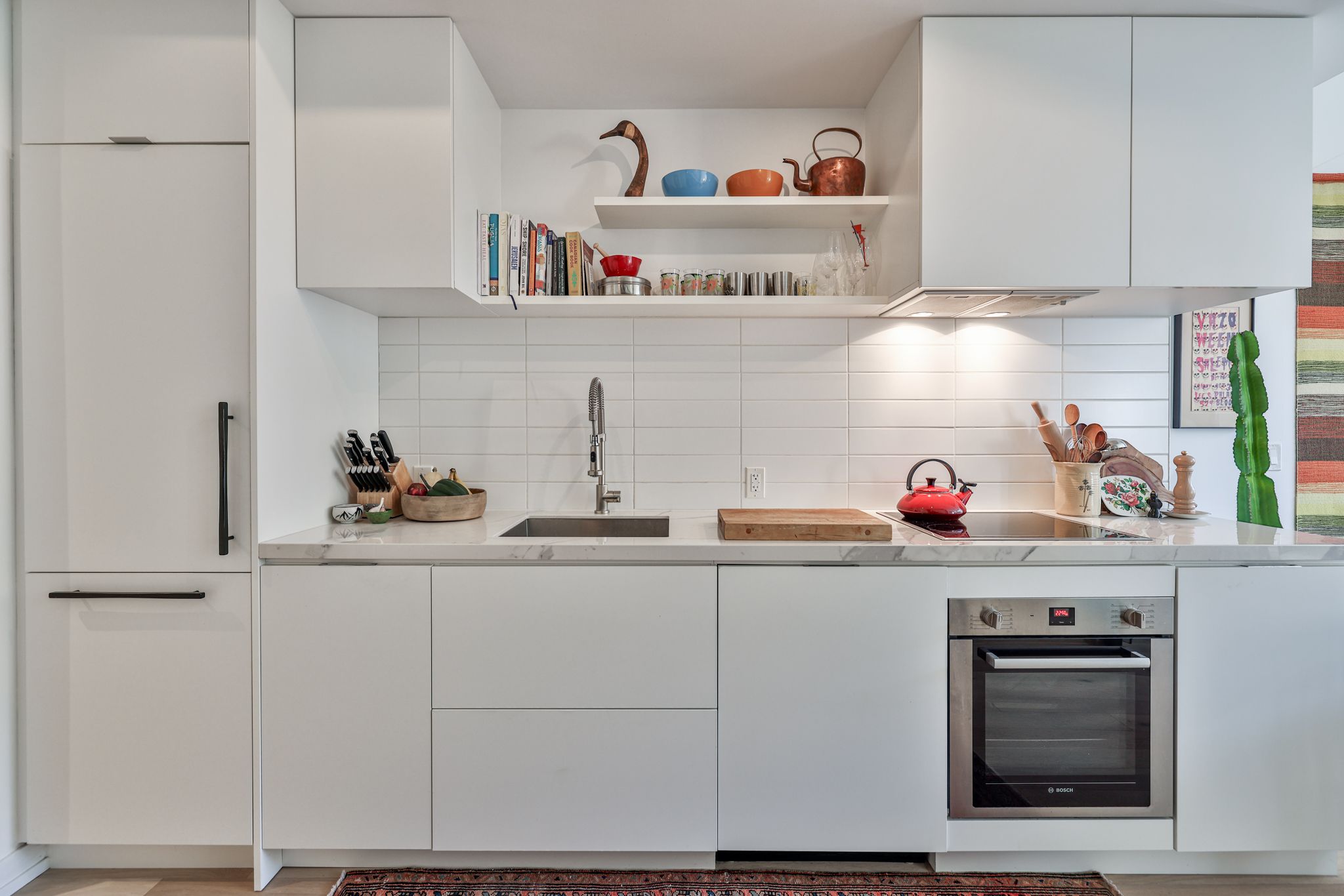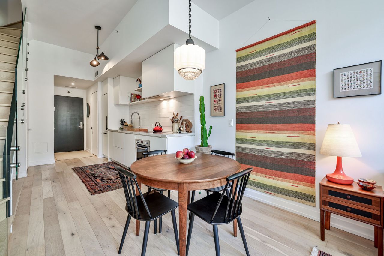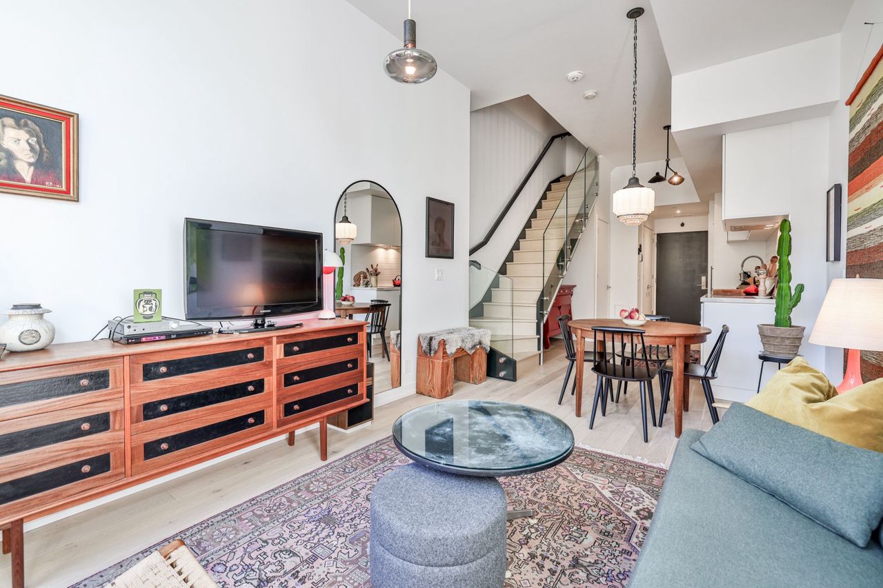 A modern, open concept, townhome style space with towering ceilings. Contemporary white oak & glass staircase. Main floor powder room. Gourmet inspired galley kitchen with classic white cabinetry, integrated appliances, quartz counters & stylish open shelves. Clever storage thru-out. Fabulous, 841 sqft + 172 sqft patio nestled within a tiered, lush garden. A secluded outdoor private oasis drenched in sunlight offers an urban retreat. East facing Principal bedroom overlooking the garden below is a restful retreat with white oak floors & two double closets. Spa inspired spacious 4pc washroom with soaker tub. Second floor den offers lots of versatility for home office, guest/second bedroom, or calm & quiet meditation space. Convenient second floor laundry. Garage parking included. This home has been meticulously maintained by the original owner & never used as a rental property.Steps to Sorauren Park & Fieldhouse, Farmers Market, Roncesvalles Restaurants & Local Shops. Quick Hwy Access. Easy TTC: 501, 504, 505, 506 Streetcars + Dundas W Subway (Line 2) & UP Express.