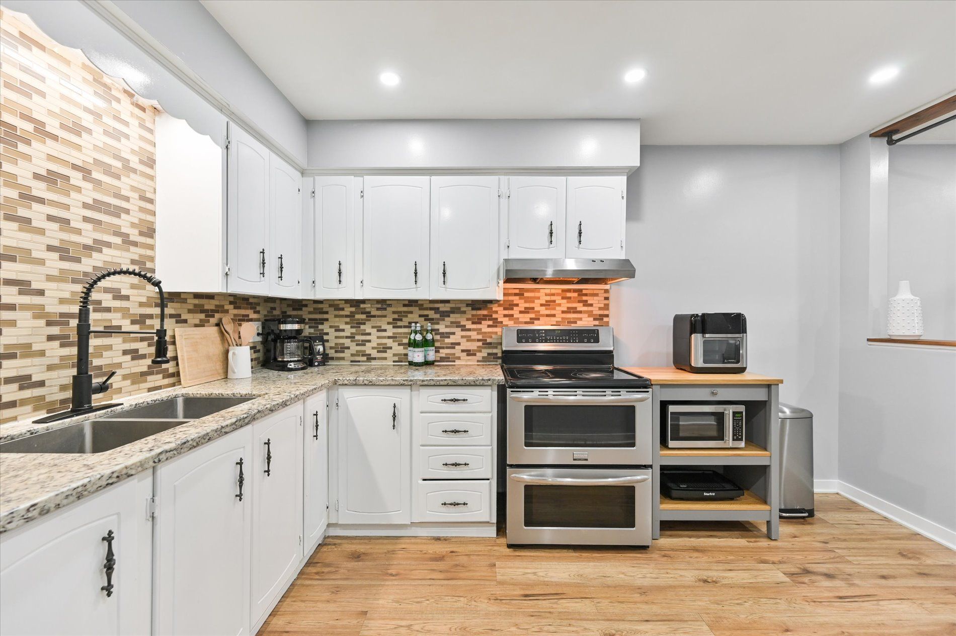 End Unit Townhome In The Beautiful Seven Oaks Community! Move-In Ready For First Time Home Buyers & Investors. Preferred One Level Living/Dining/Kitchen Layout With South Facing Windows. Large Family Kitchen With Granite Counters, Double Sink And Tiled Backsplash. Bright Open Concept Living & Dining With Walkout To Spacious, Quiet Backyard. Updated Powder Room, Laminate Flooring On Main & 2nd floors. 3 Spacious Bedrooms With Great Size Closets. Versatile Finished Basement With Large Rec Room and Possible 4th Bedroom is In-Law Suite Potential. Many Pot Lights, Updated Washrooms, Very Well Maintained Complex Conveniently Close To All Amenities, Transit, 401, Bike Trails & Park, Hospital, Shopping Centre, University of Toronto.Water, Cable, Internet, Lawn Mowing, Snow Removal Is Included In The Maintenance Fee, Visitor Parkings.